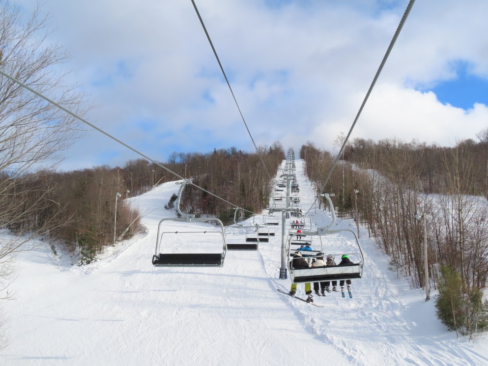Doppelmayr replaced an older triple with this fixed quad in 2023.The new lift services most of the mountain and features a loading conveyor from Chairkit.Alpenstar drive terminal.Lower station and tower 1.View up the lift line.Middle section of the line.View back down.Nearing the summit.Unloading area.Red bullwheel.View down the line at tower 11.Tower 8.Steeper middle part of the line.Lower lift line.Tower 3.Loading area.Tower 6 with a combination assembly on one side and compression on the other.Arriving at the top station.View from the summit of the Sommet.Another view of the top terminal.