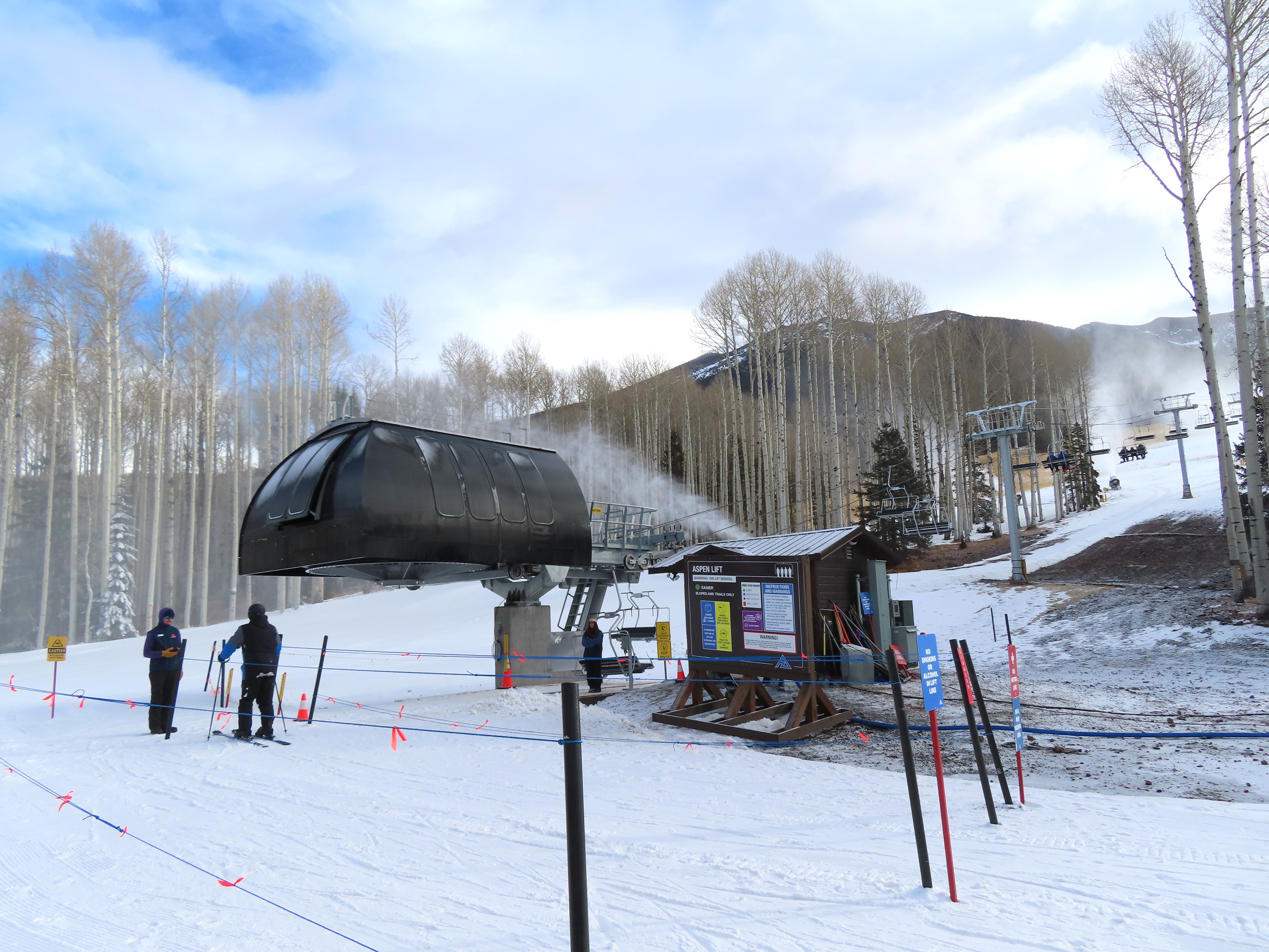 Riding up the lift line through Aspen trees.