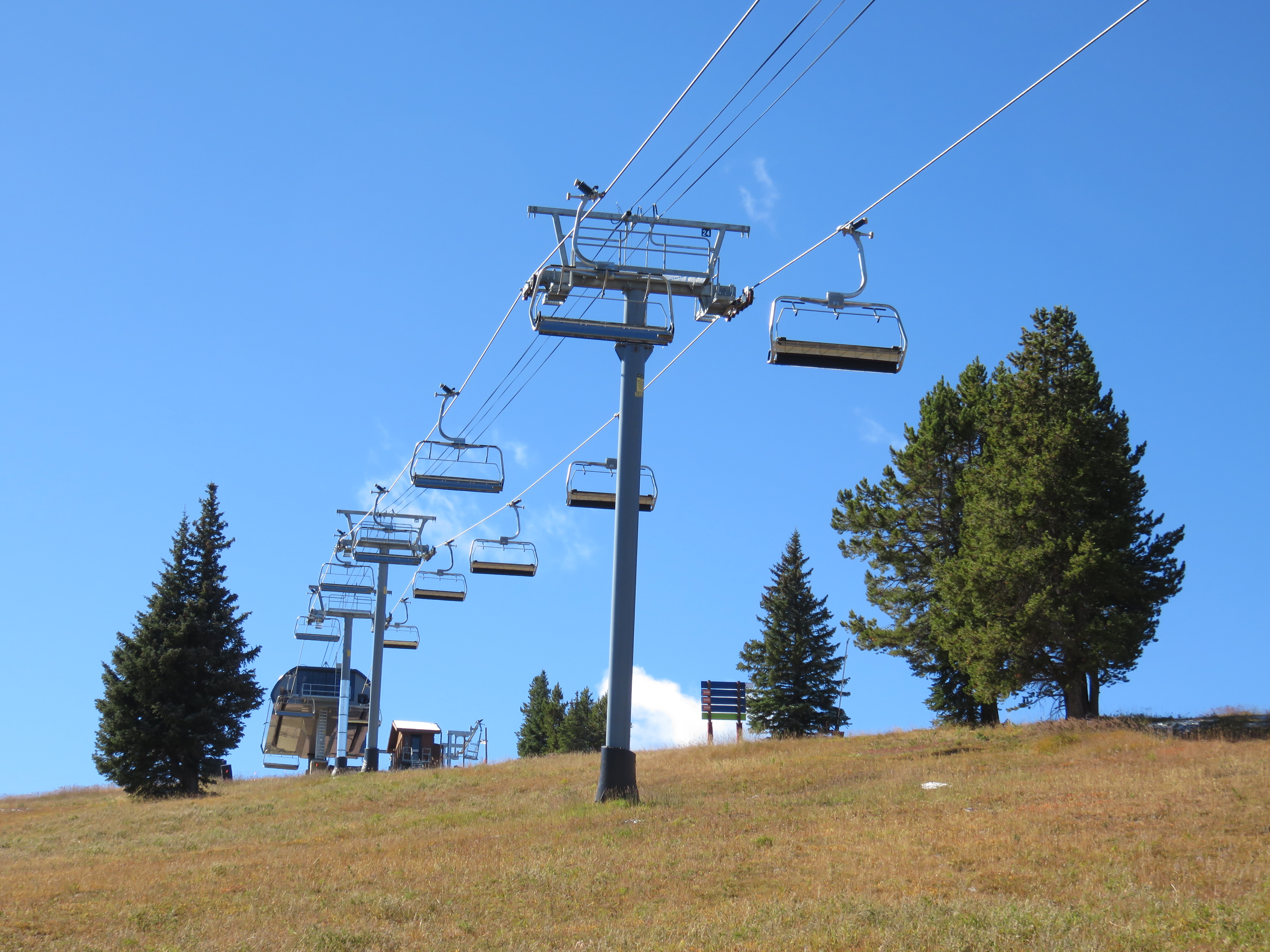 • Thanks to the double hold-down, the towers are numbered differently from what they were on the quad. The towers that used to be towers 2 through 7 were renumbered one higher than they were originally. The rest of the lift’s towers from tower 7A to the top were renumbered two higher than they initially were.