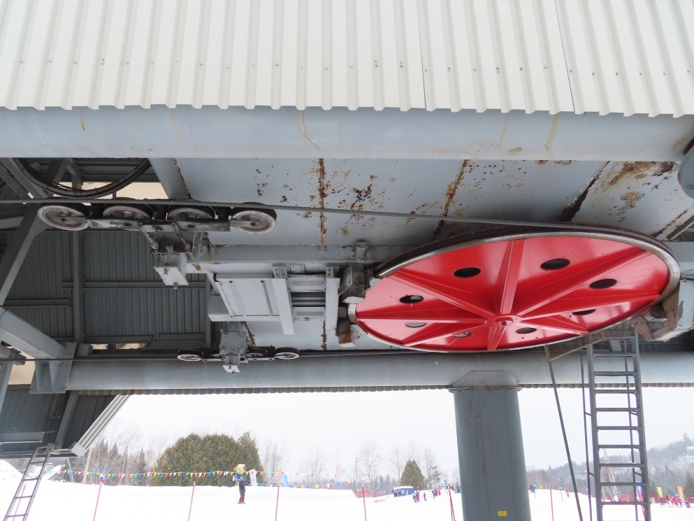 This Doppelmayr quad services the entire Avila side of the mountain.Lower part of the lift line.View up the relatively short line.Bottom terminal with unique enclosure.Drive terminal.Drive bullwheel and hydraulic tensioning.Another view of the bottom terminal.Bottom bullwheel narrower than line gauge.Chain-driven terminal.The top return station.Side view of the top station.View down from the summit.Arriving up top.