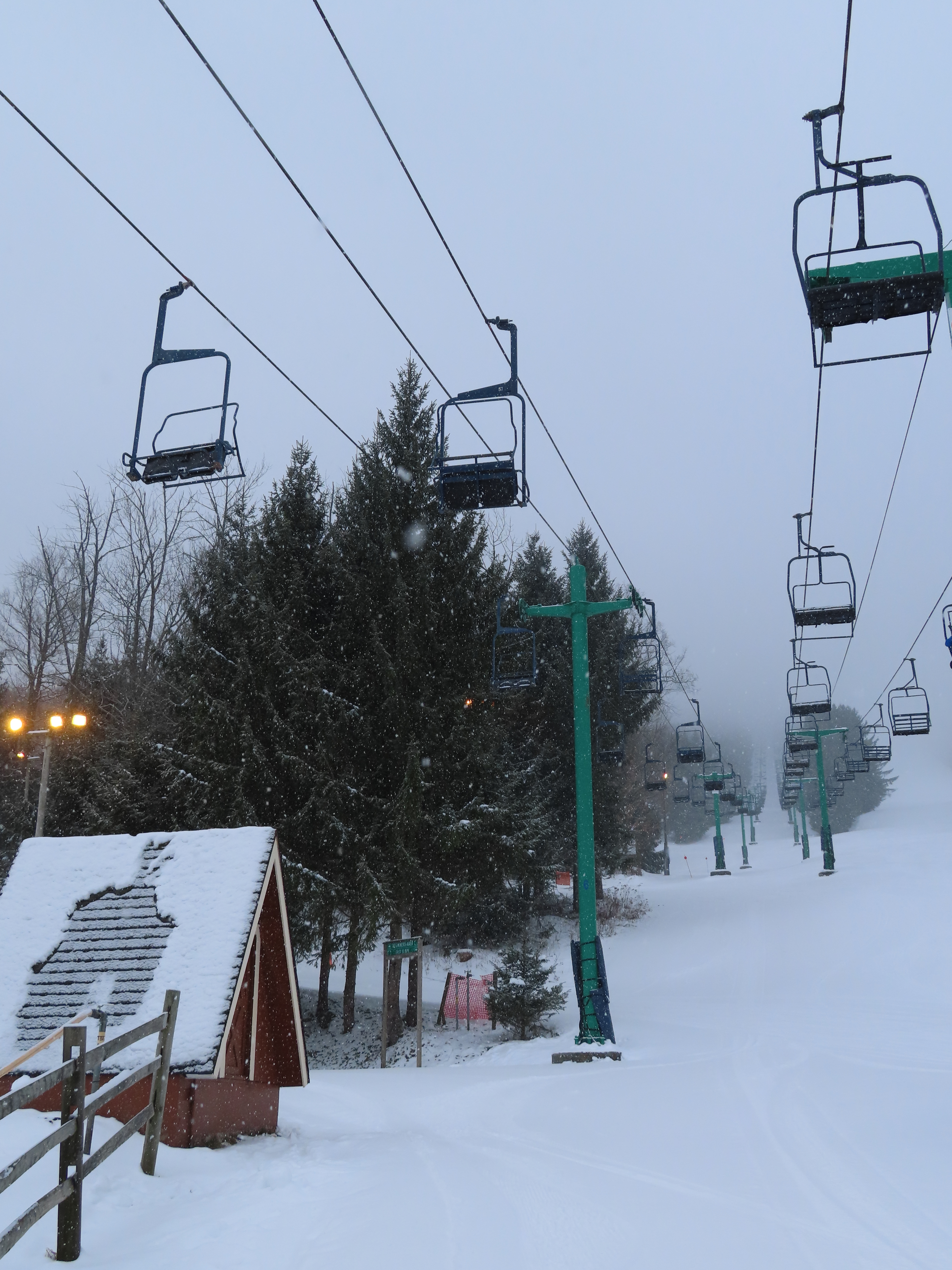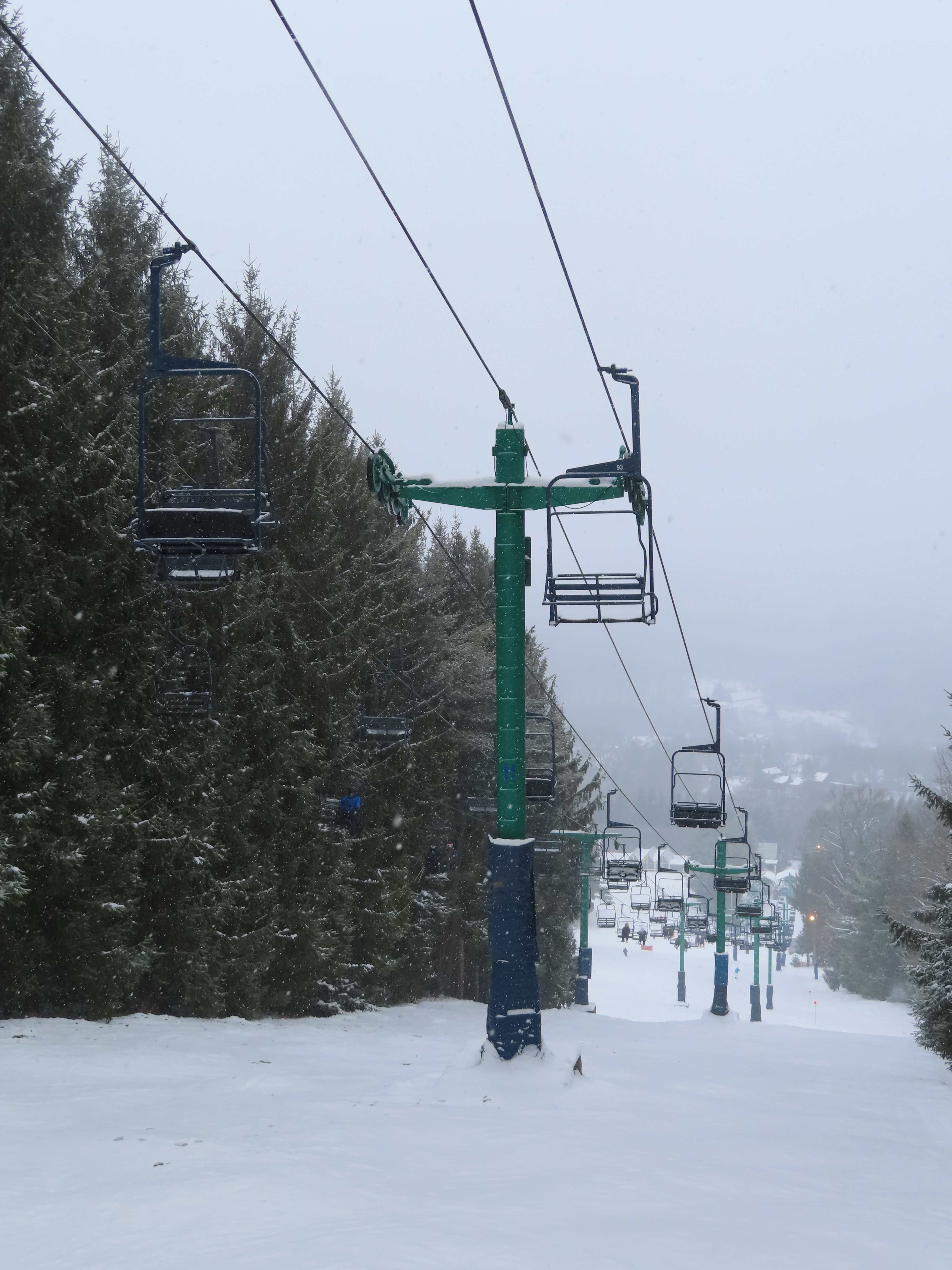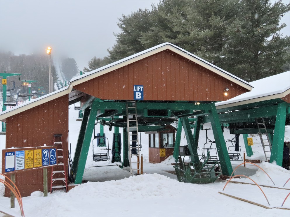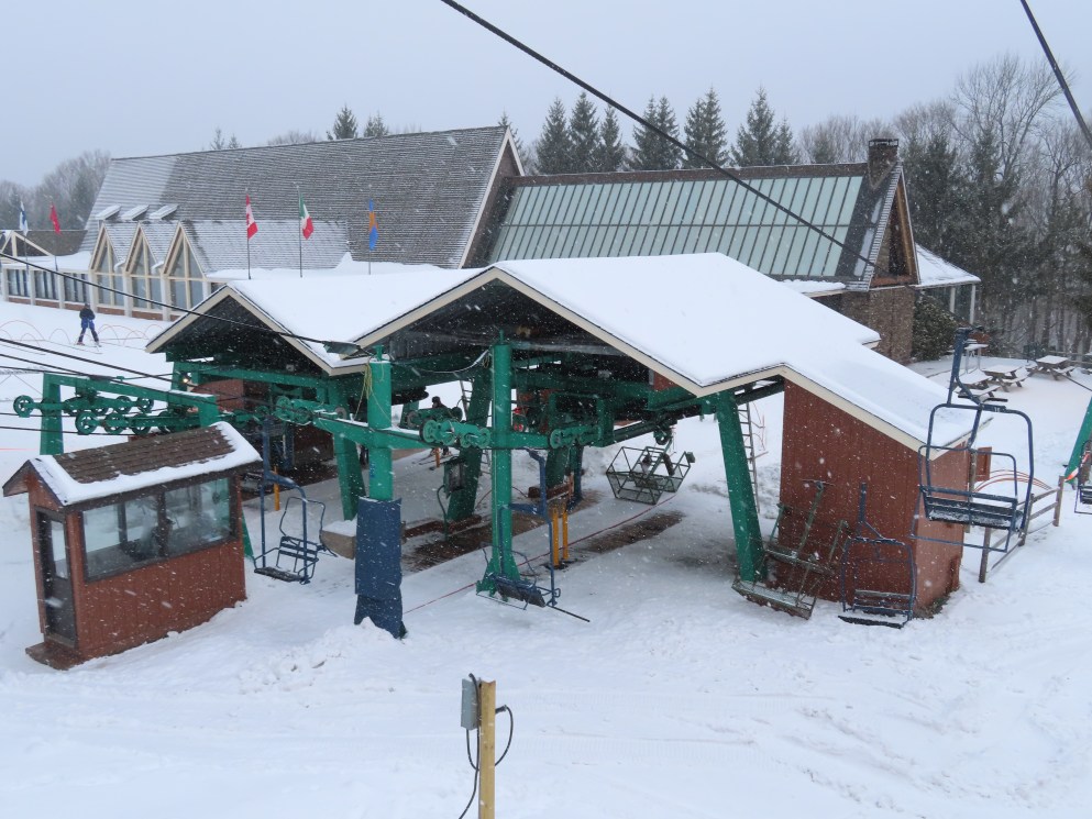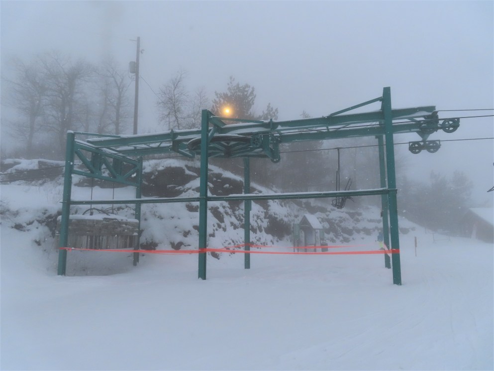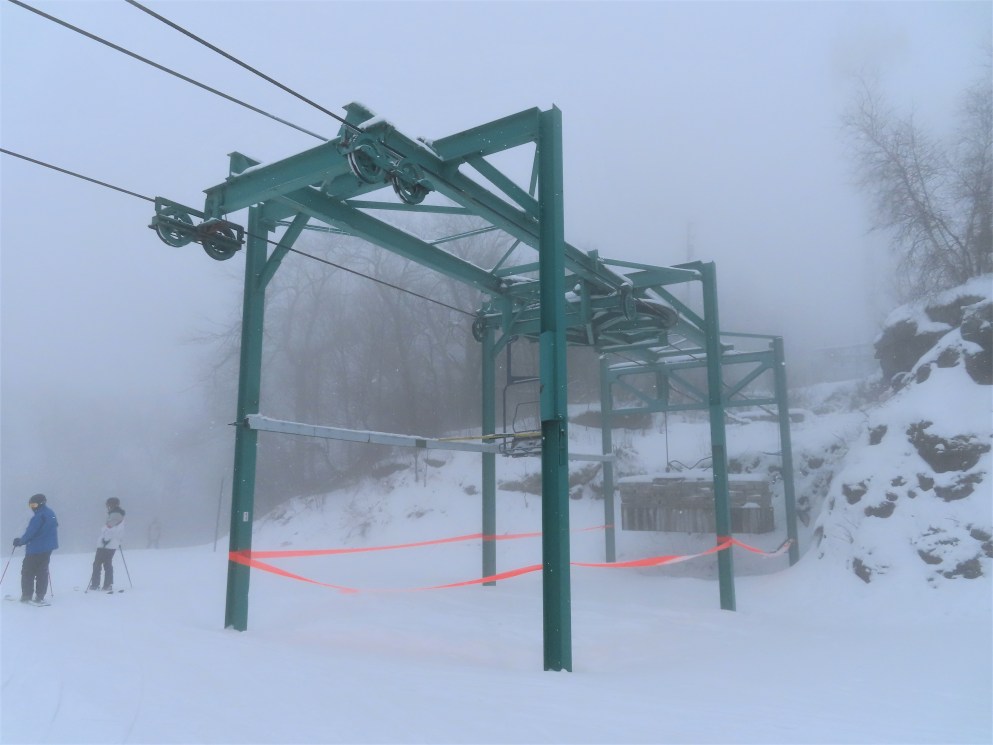 This was the first chairlift at Elk. It originally had the Hall “Cathedral” style carriers, these were later replaced. The only other lift I know of with these chairs was Chair 1 at Big Tupper, NY