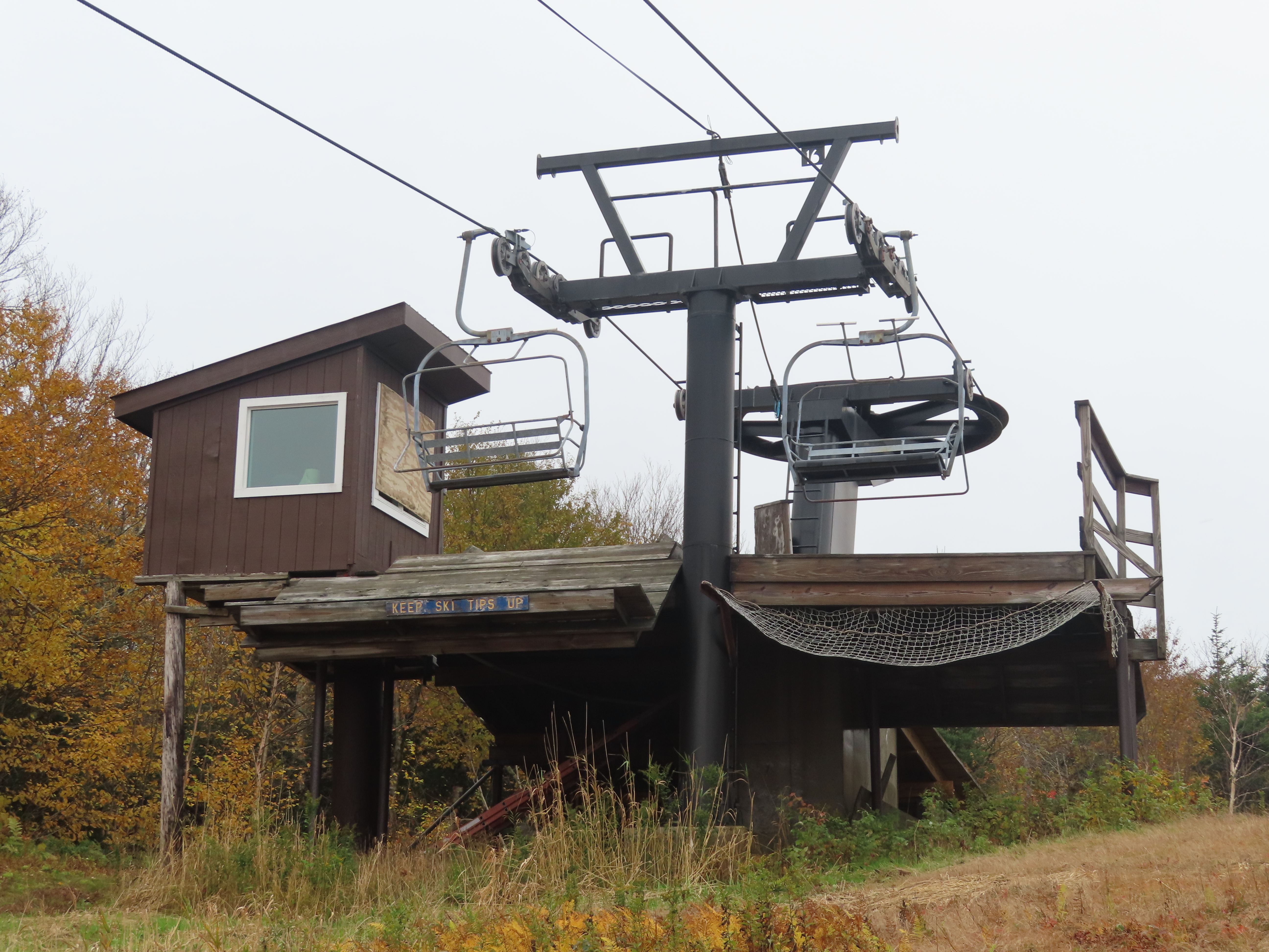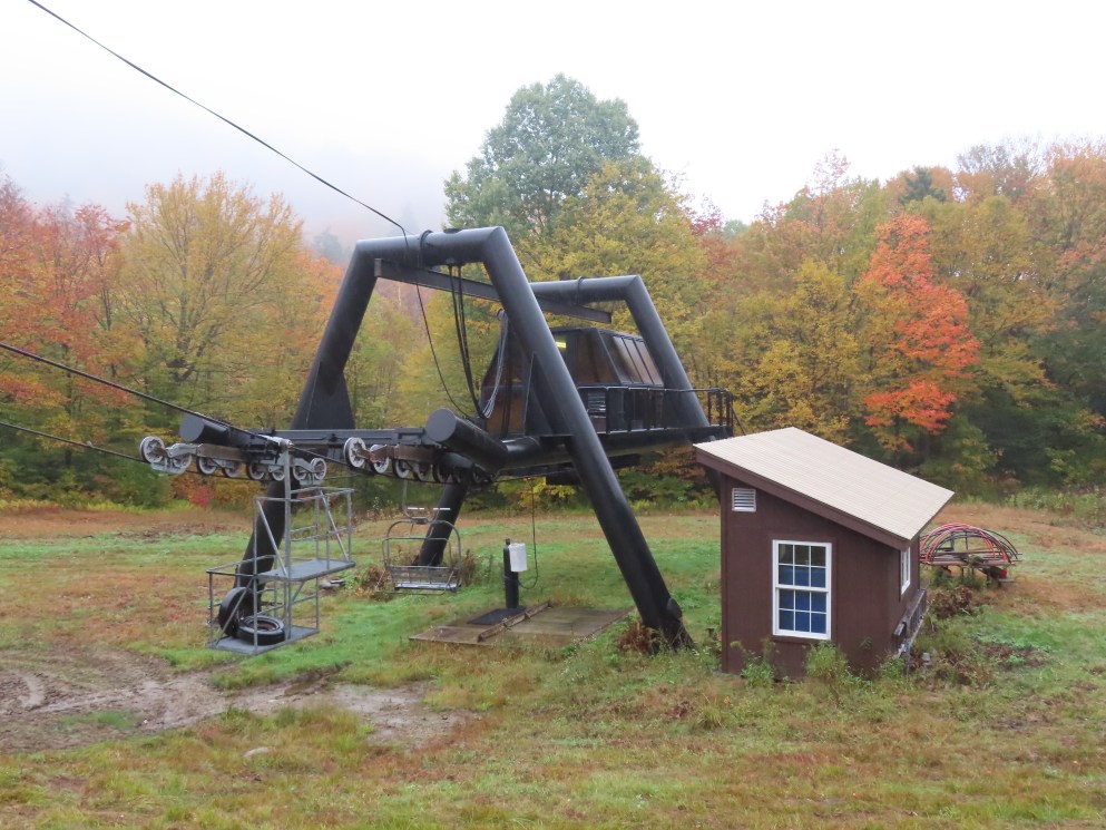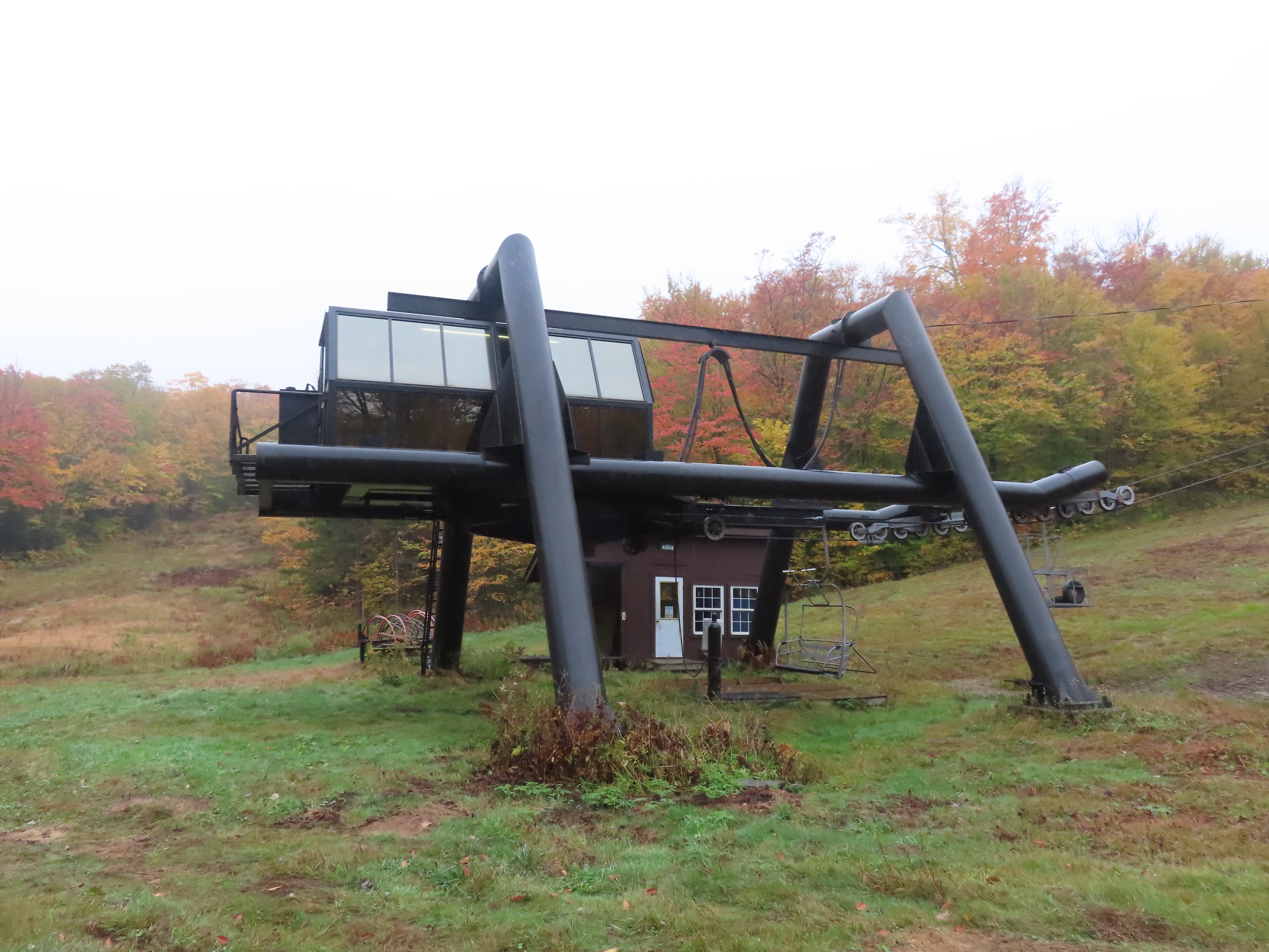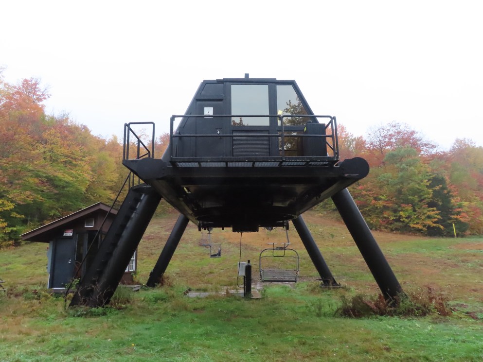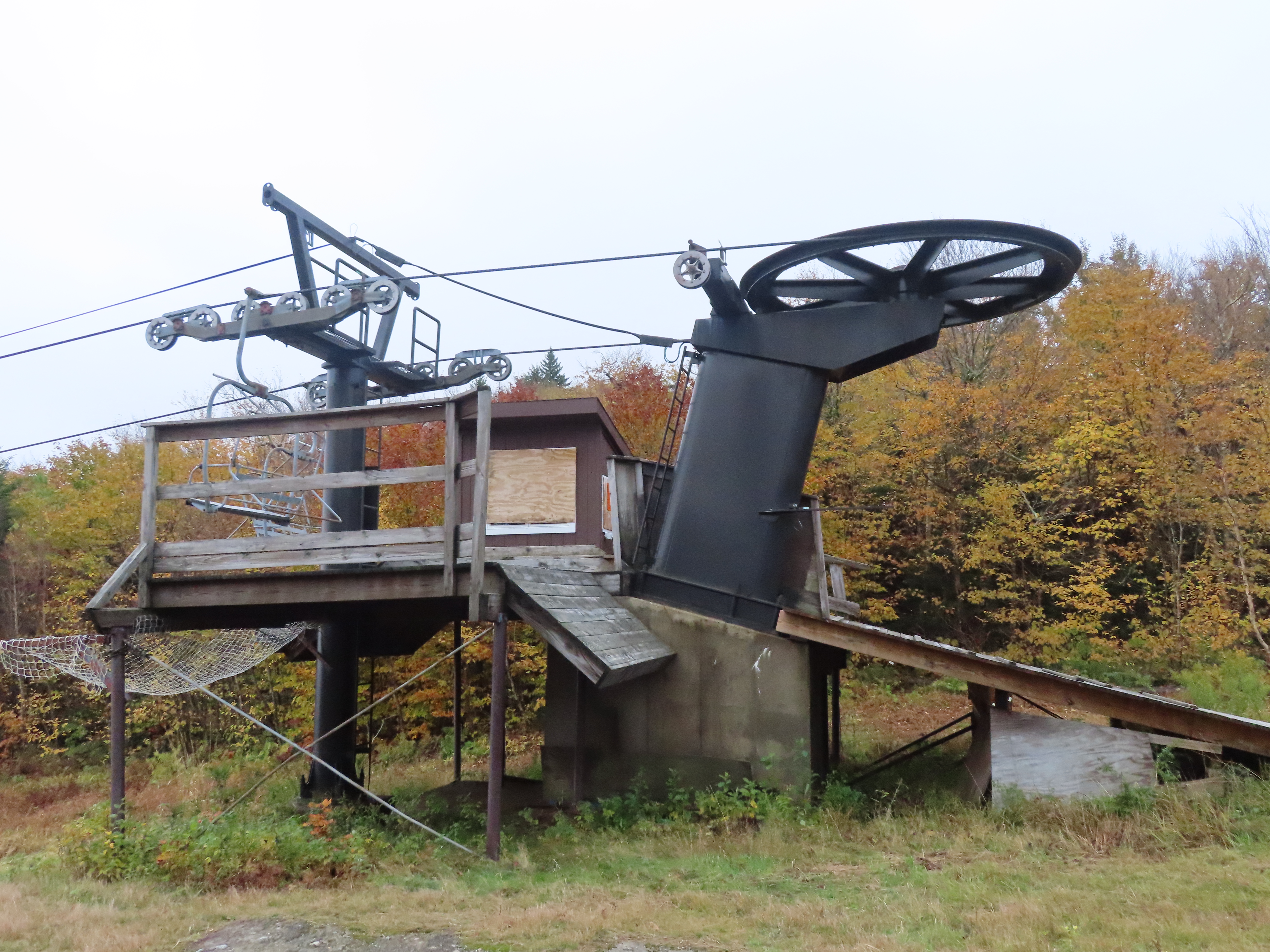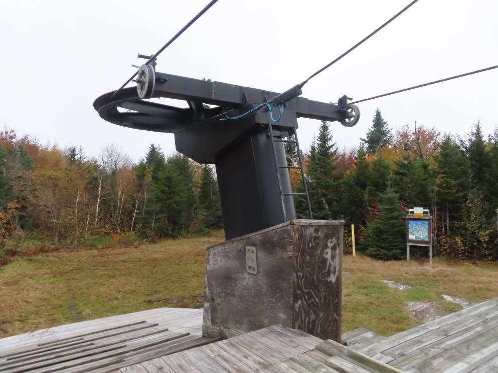 Even though it doesn’t start at the main base, this is the longest lift at the Snow Bowl.CTEC Enterprise drive-tension station.View of the motor room and operator house with the work chair on the line.Looking up at tower 3.The Orion model top terminal.View down from the summit.Looking at the top bullwheel from the unload point.Upper station and ramp.View down at tower 14.T16.