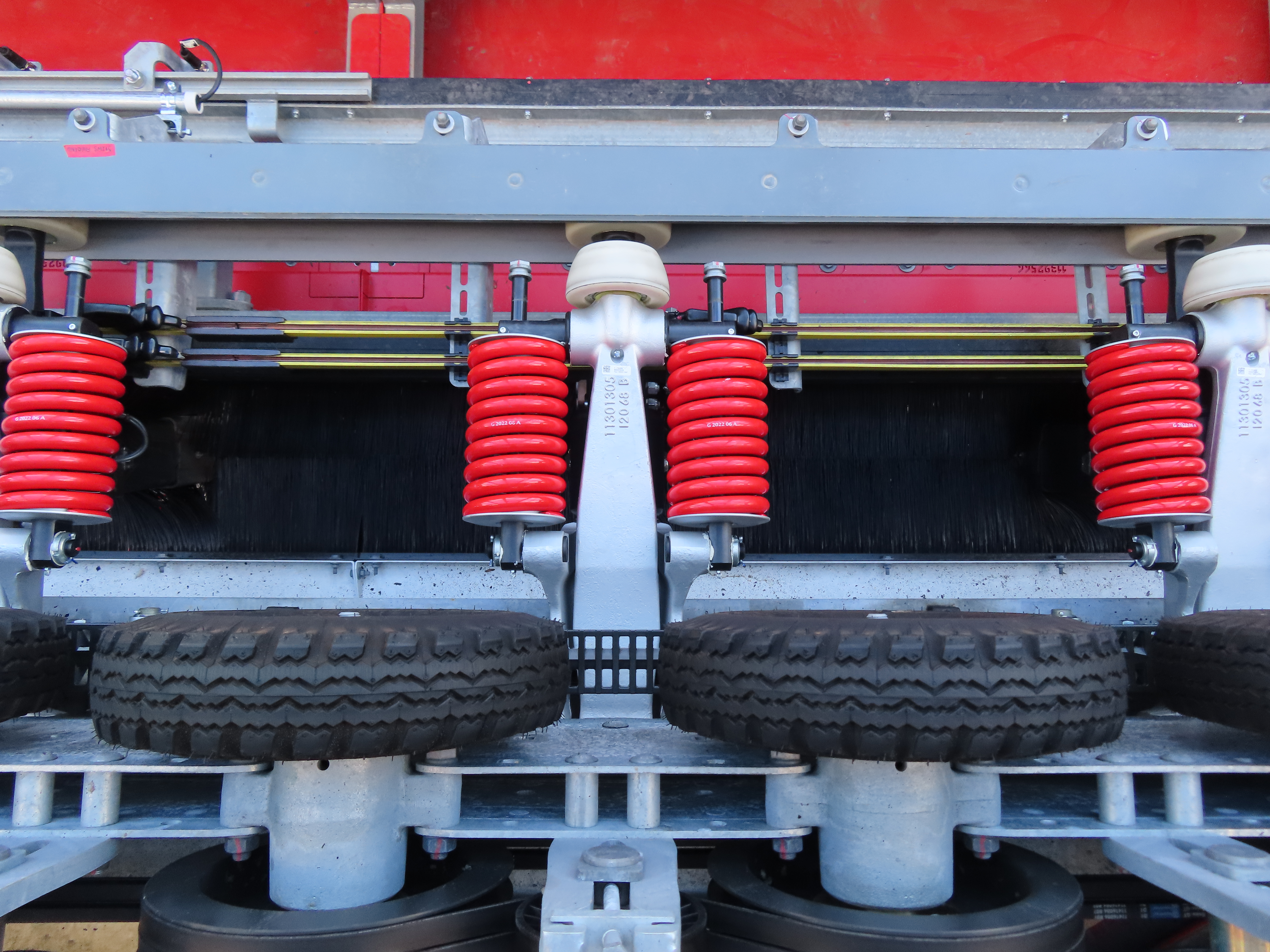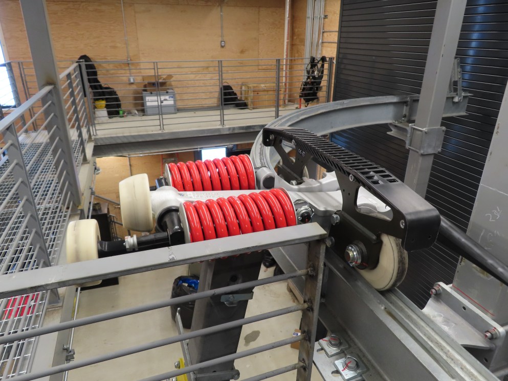 How does the parking system work on this? It looks like the tires are connected with belts like a standard detachable setup, but there’s not a clear picture of the full tire banks. Are there clutches on each tire so they can stop turning once there’s a chair parked under each individual tire?