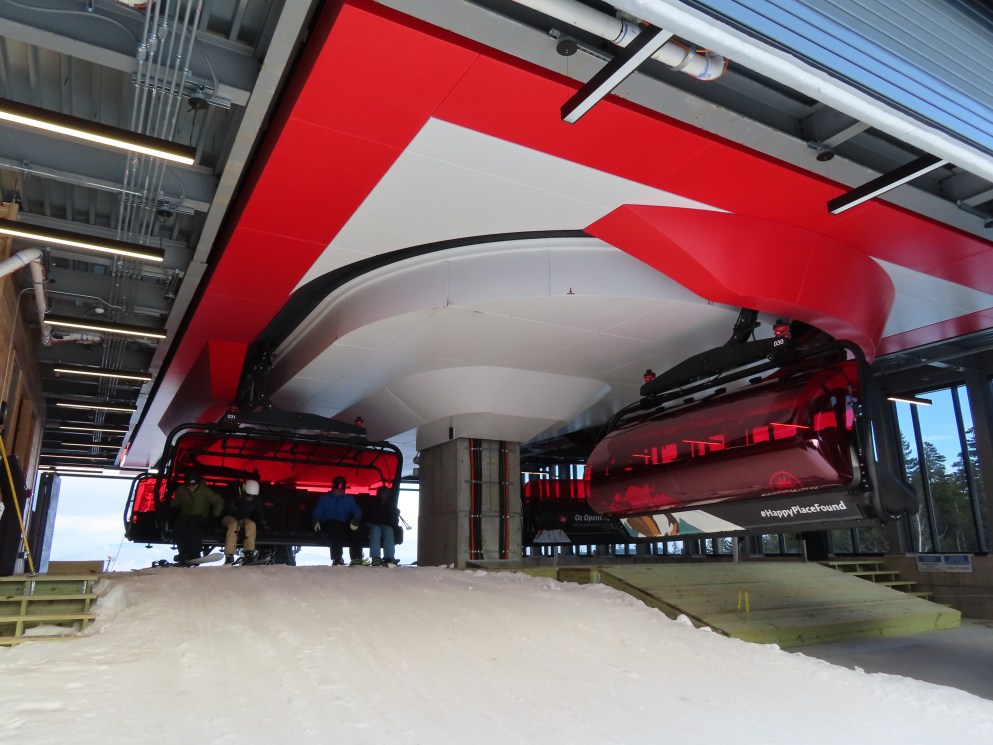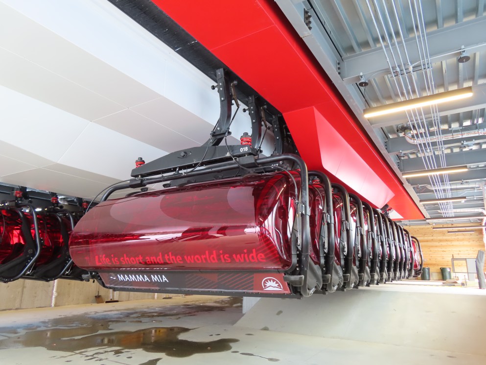 Me and my dad’s first automated locking bar six-person chairlift. It’s such a gorgeous lift: the bubbles and terminals. Great views off this lift and our fastest six-person lift ever! Does get packed very quickly so get here first thing in the morning!