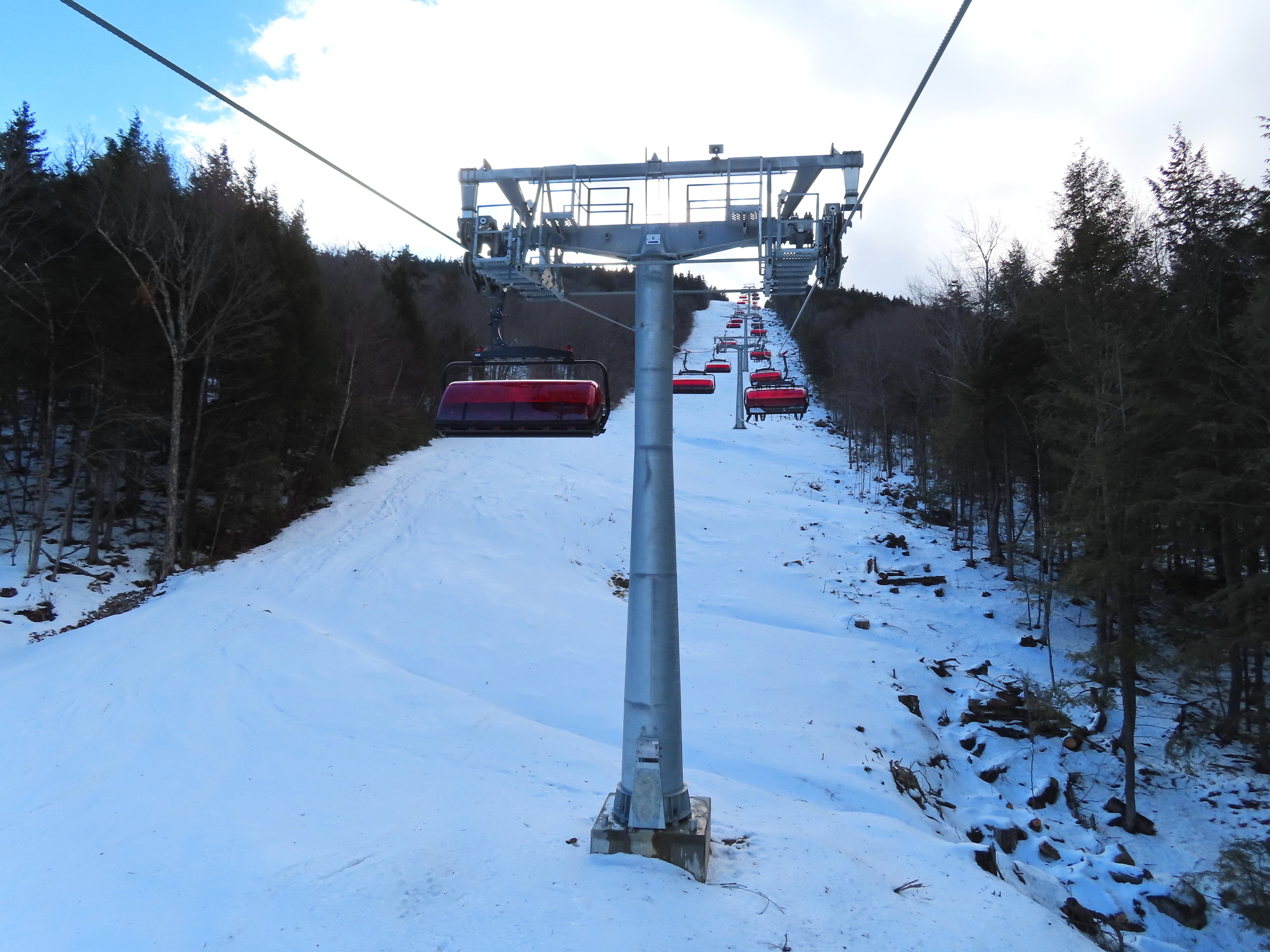 The original Barker Mountain might’ve been rated for 3,000 pph, but that assumes it was operating at 1,000 fpm with no stops for misloads/misunloads. Given that it was a lemon of a lift in its final years that had to run at a significantly reduced speed, its actual uphill capacity by the end was somewhere more around the 2,000-2,200 pph range or less. Barker 6 thus is a capacity upgrade because it’s not a lemon that has to run at reduced speed due to maintenance issues.