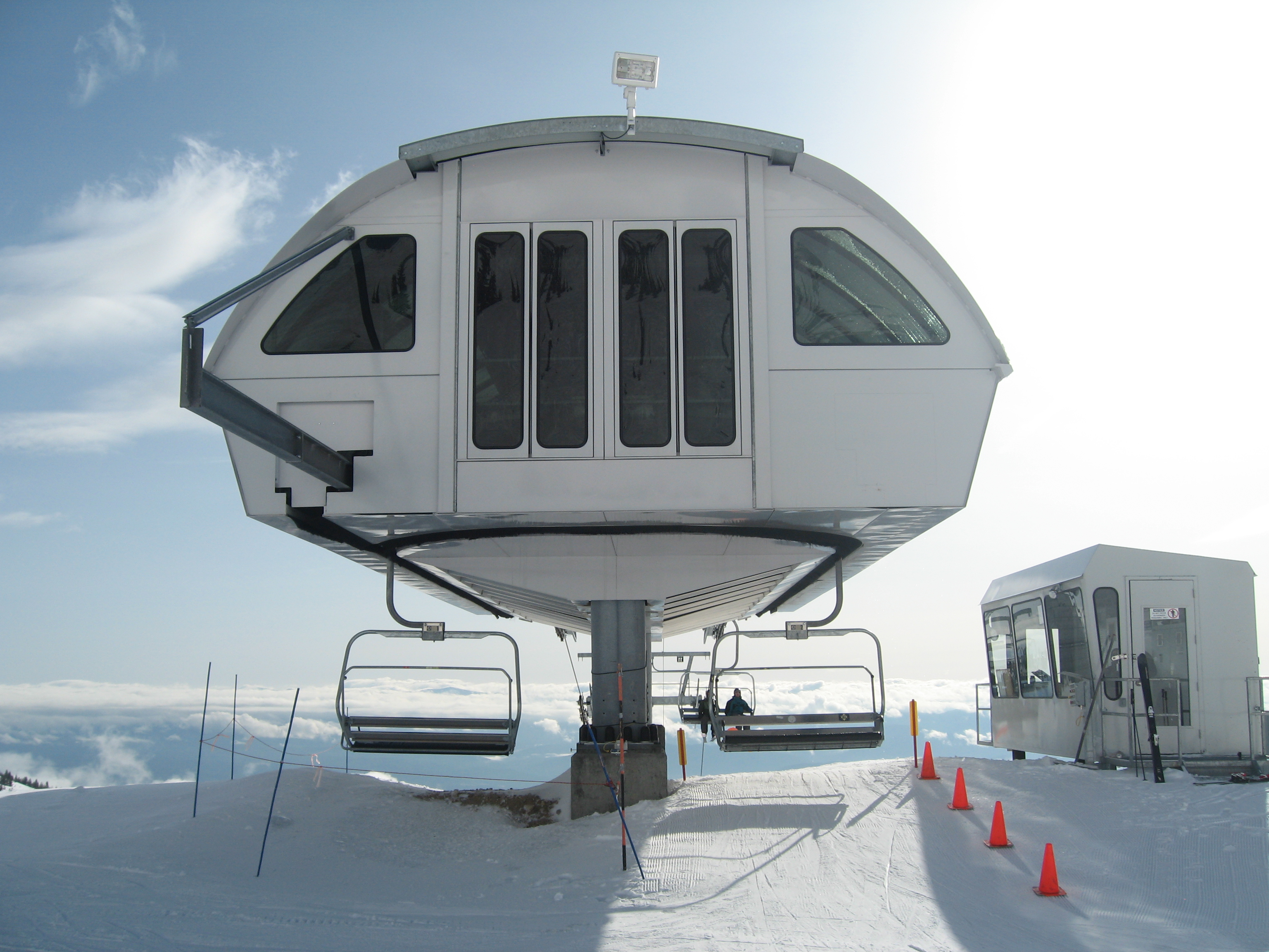 Unload area.Looking up the line.Uni-GS bottom terminal.Bottom station.Top station.Top towers and terminal.Looking down the lift line.Bottom station and lift line.Lift overview.Another view of the top station and sister lift Lakeview.
