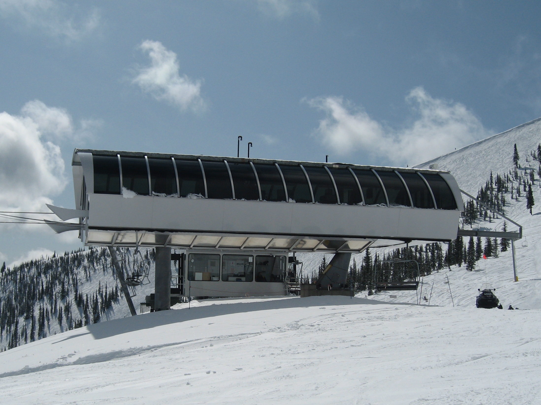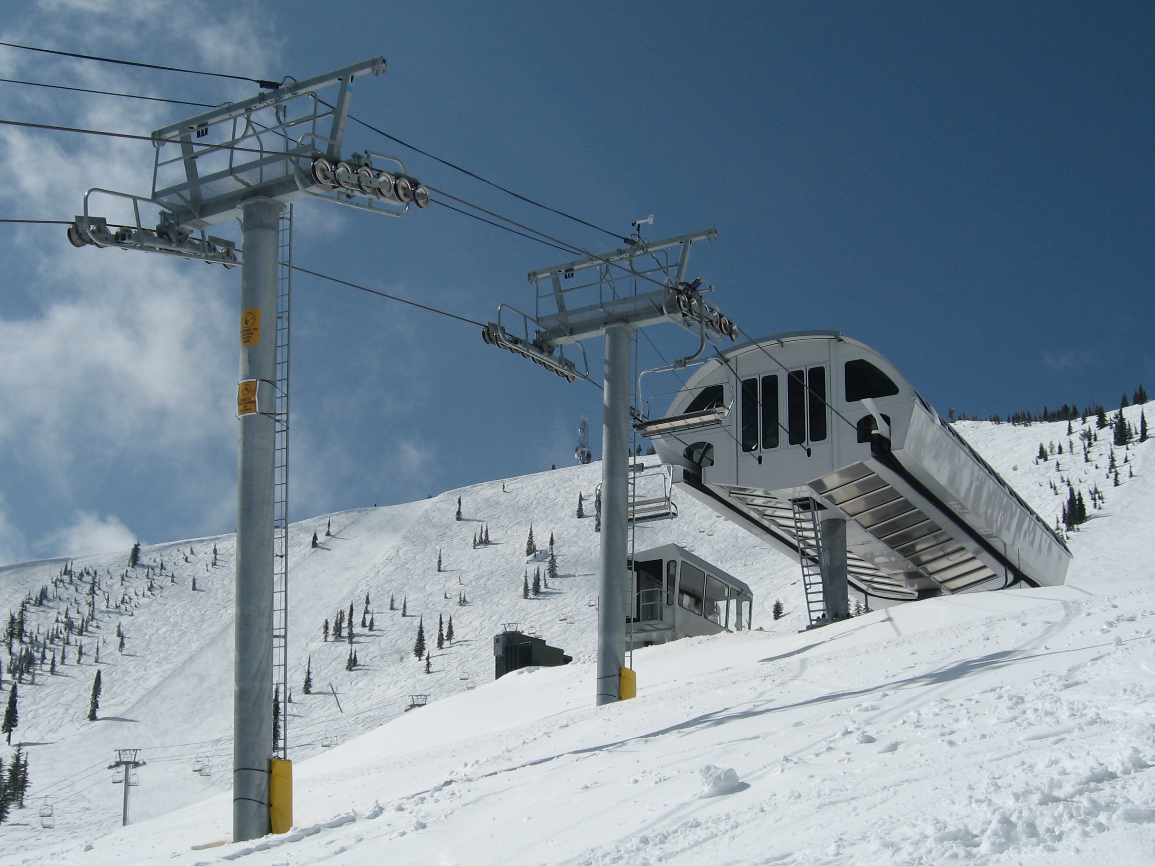 The original Riblet double that this lift and Lakeview replaced had a midunload station where the Basin Express ends, followed immediately by a mid-load station.