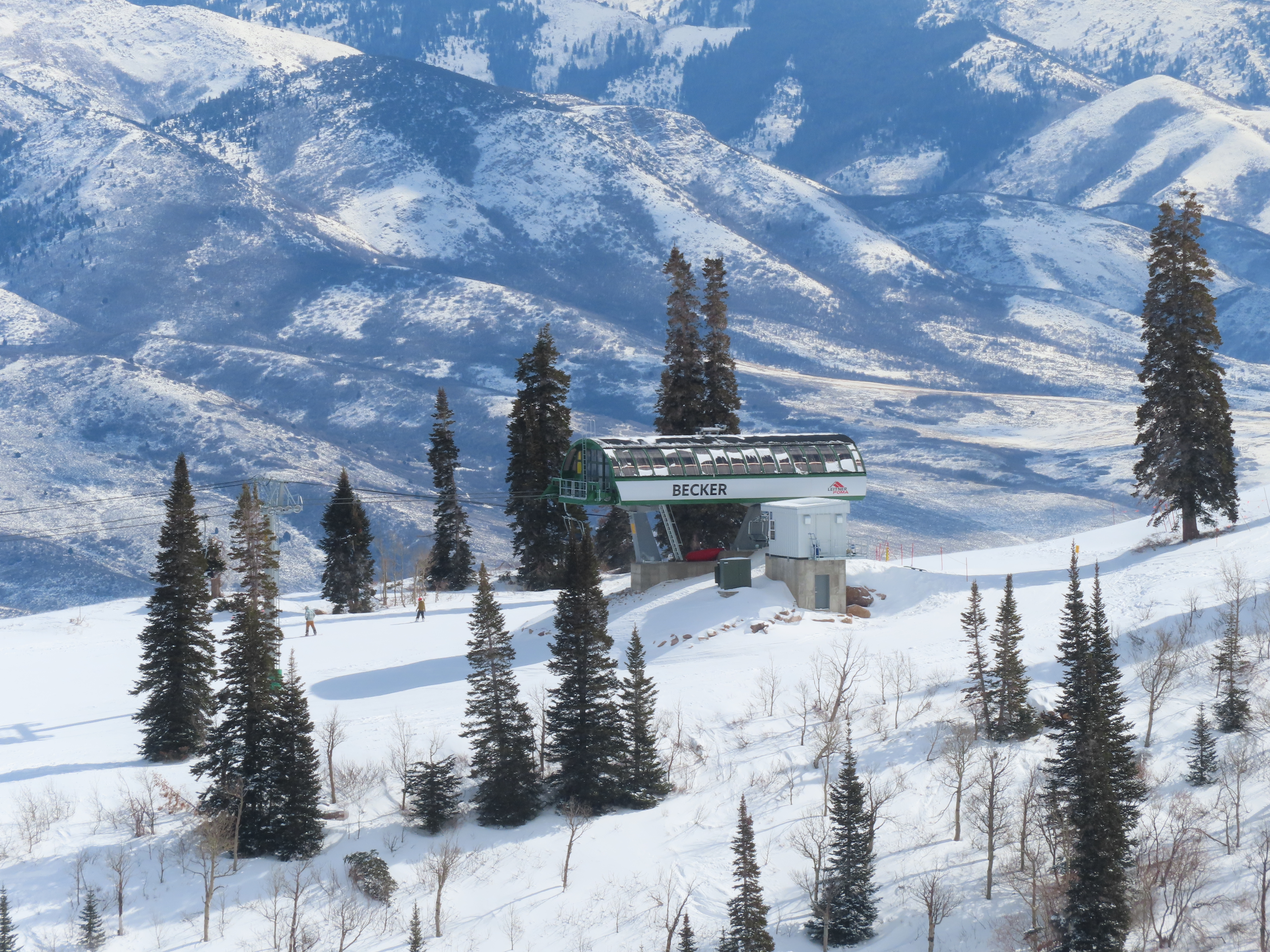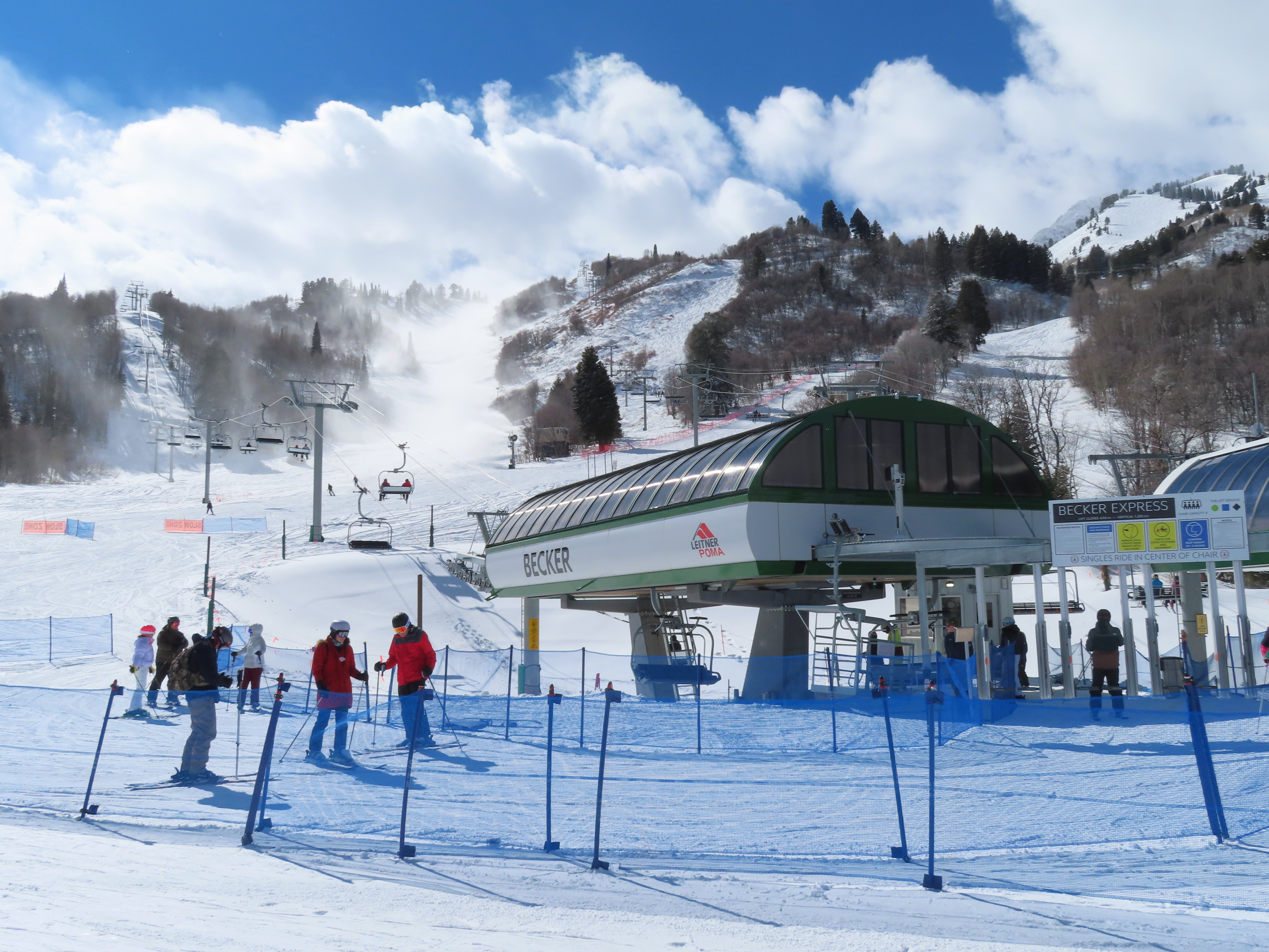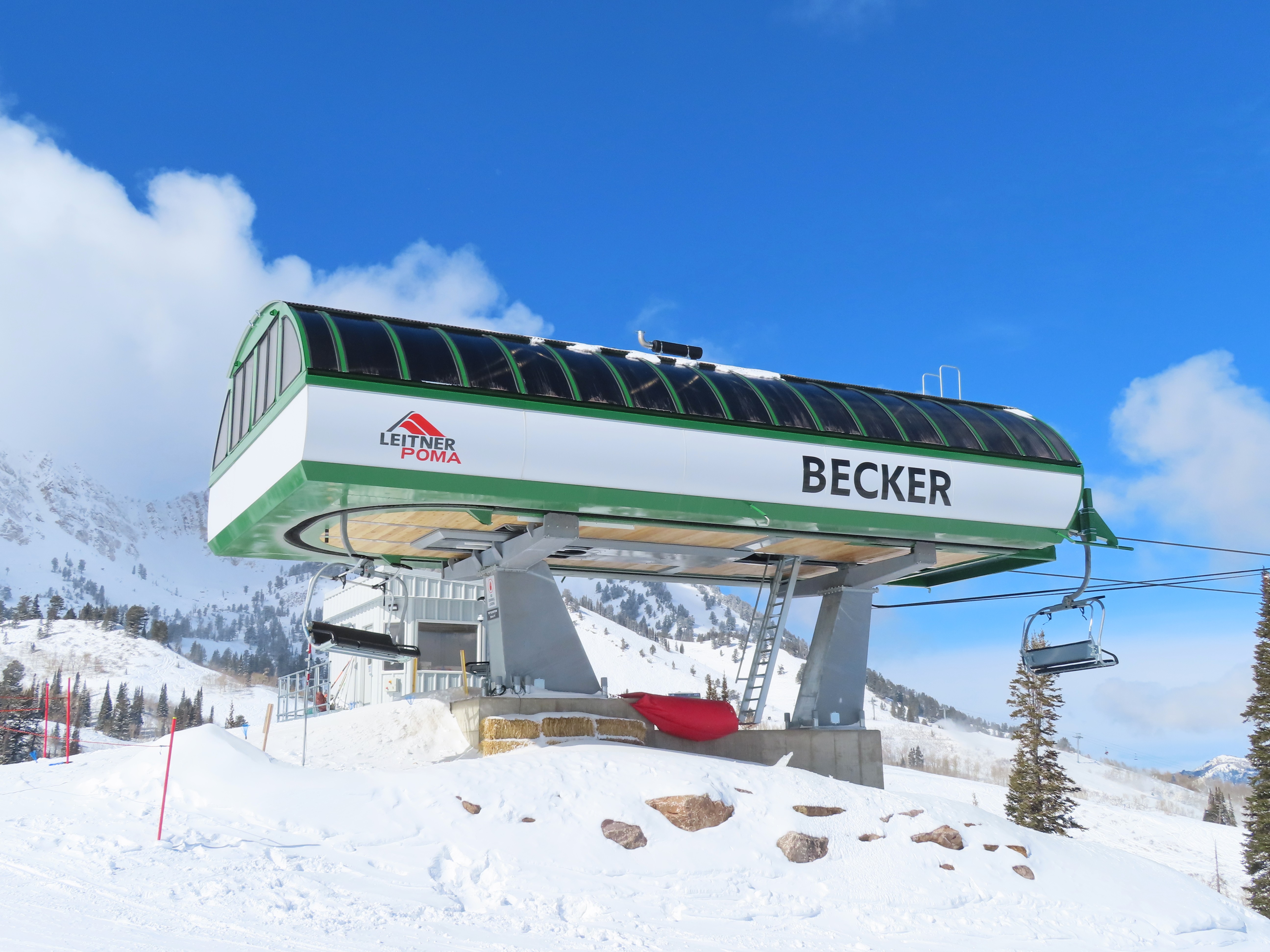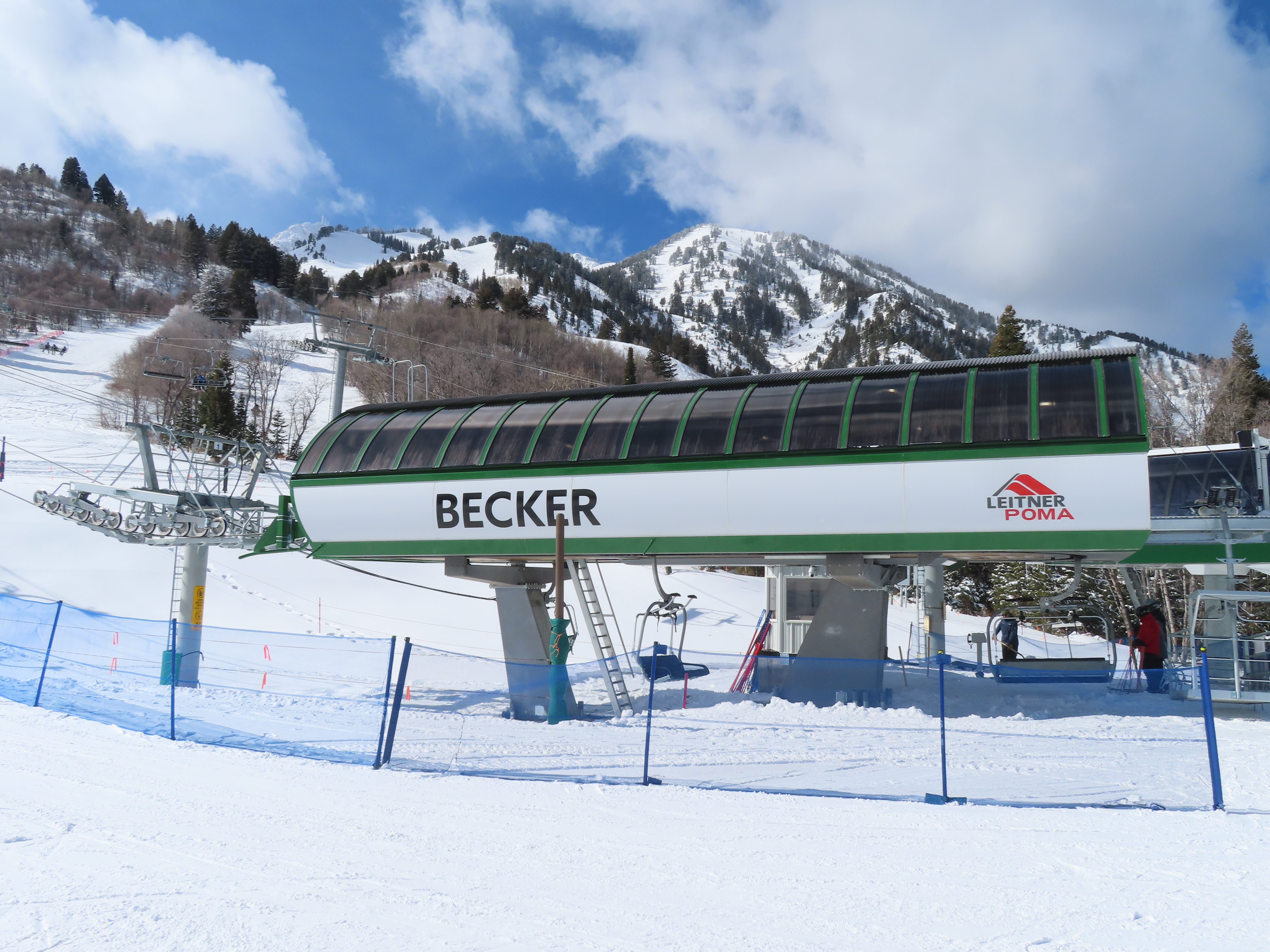 The new Becker starts next to Wildcat and follows a different alignment from the old Becker.Lift line rising out of the base area.Side view of the return terminal.Both lifts share a common maze area.View back down at tower 7.The long lift line could be described as a roller coaster with many undulations.Crossing over one of several gullies.Looking back at tower 16.Upper lift line.Tower 20.Upper station overview.Unloading area with a view.LPA drive station.View from the summit.The final two towers.View down at T21.Towers among deciduous trees.View down the middle part of the line.Tall tower 15.Another view down the line.Doppelmayr and Leitner-Poma stations squeezed together.New lower terminal location near Wildcat and Little Cat.Austrian-made chair.Tower 10.Arriving at the drive.Maze area.Side view of the bottom terminal from Becker.Side view of the top terminal seen from Wildcat.Upper station in a similar location to the old Becker top.Side view of a tower with combo assemblies.Close up of Becker return.Lower part of the line and one of several hold down towers.