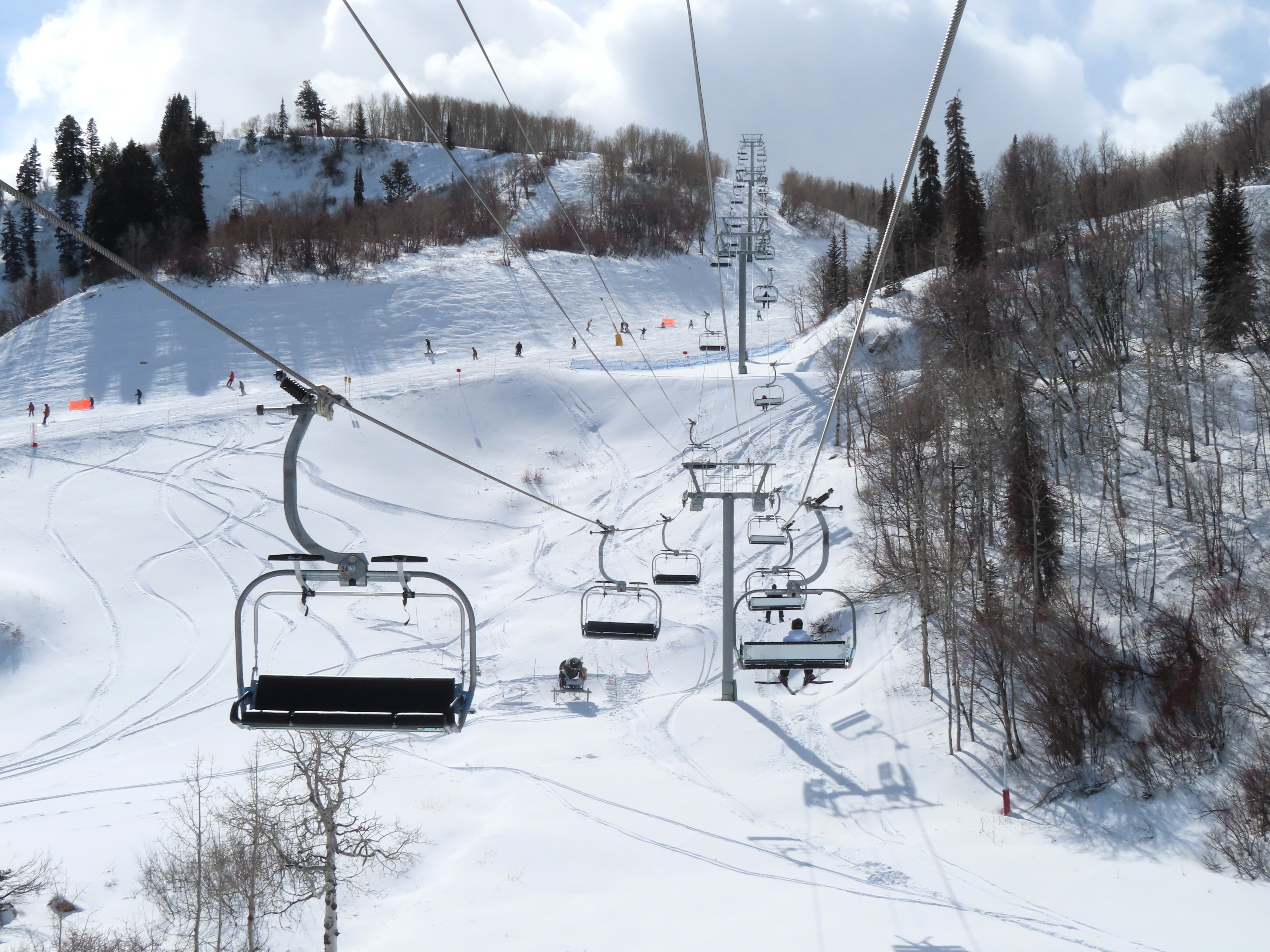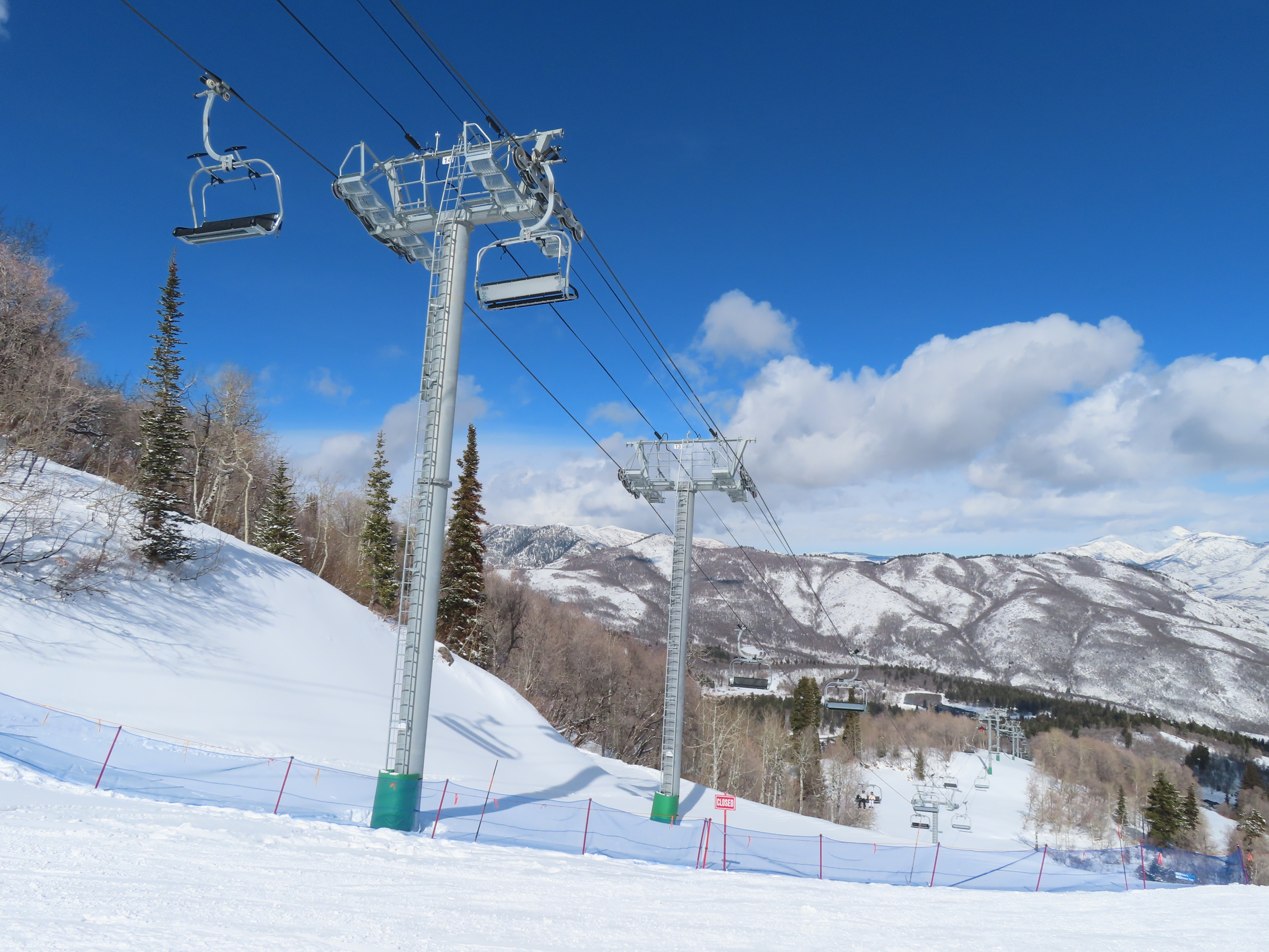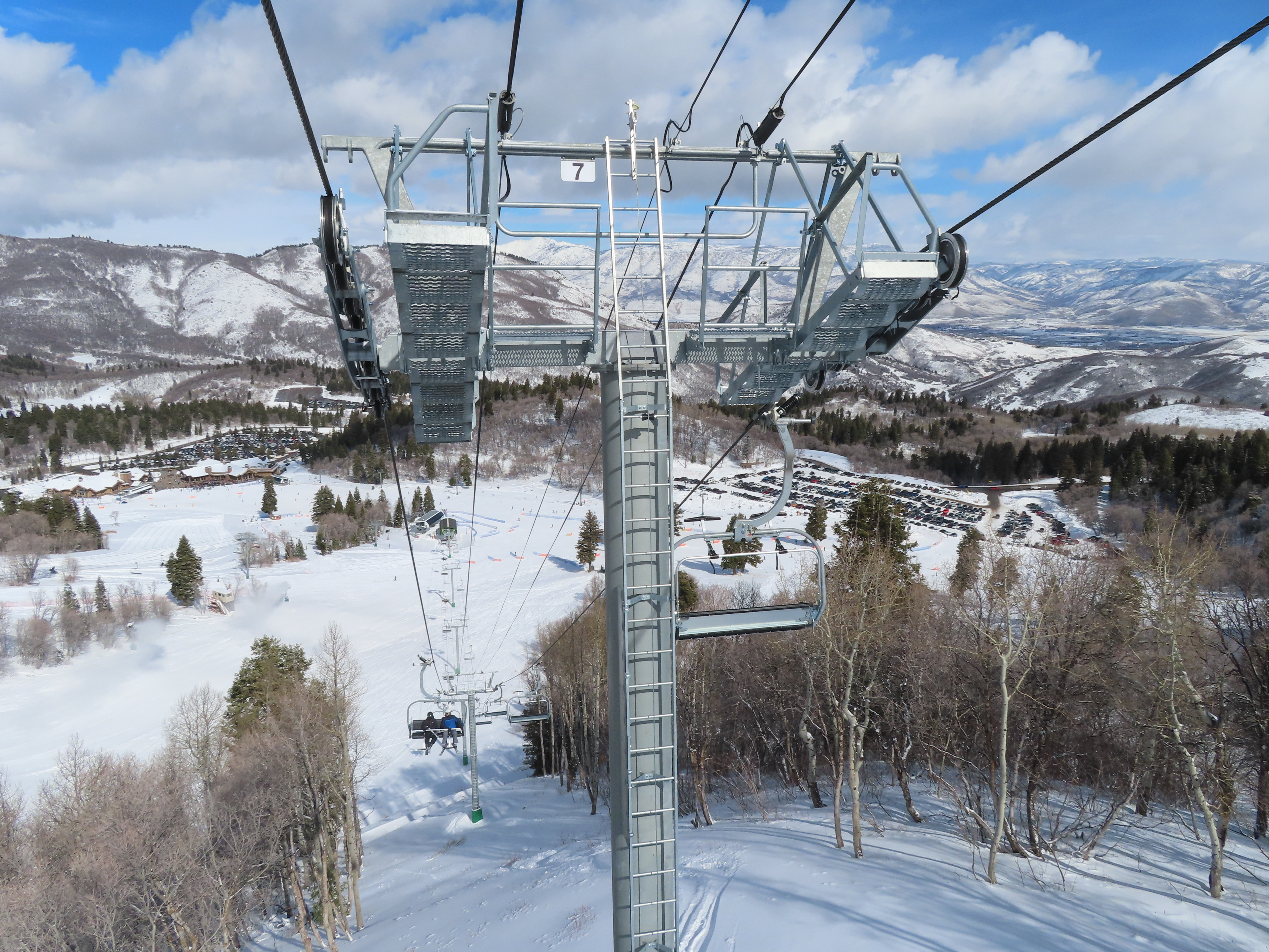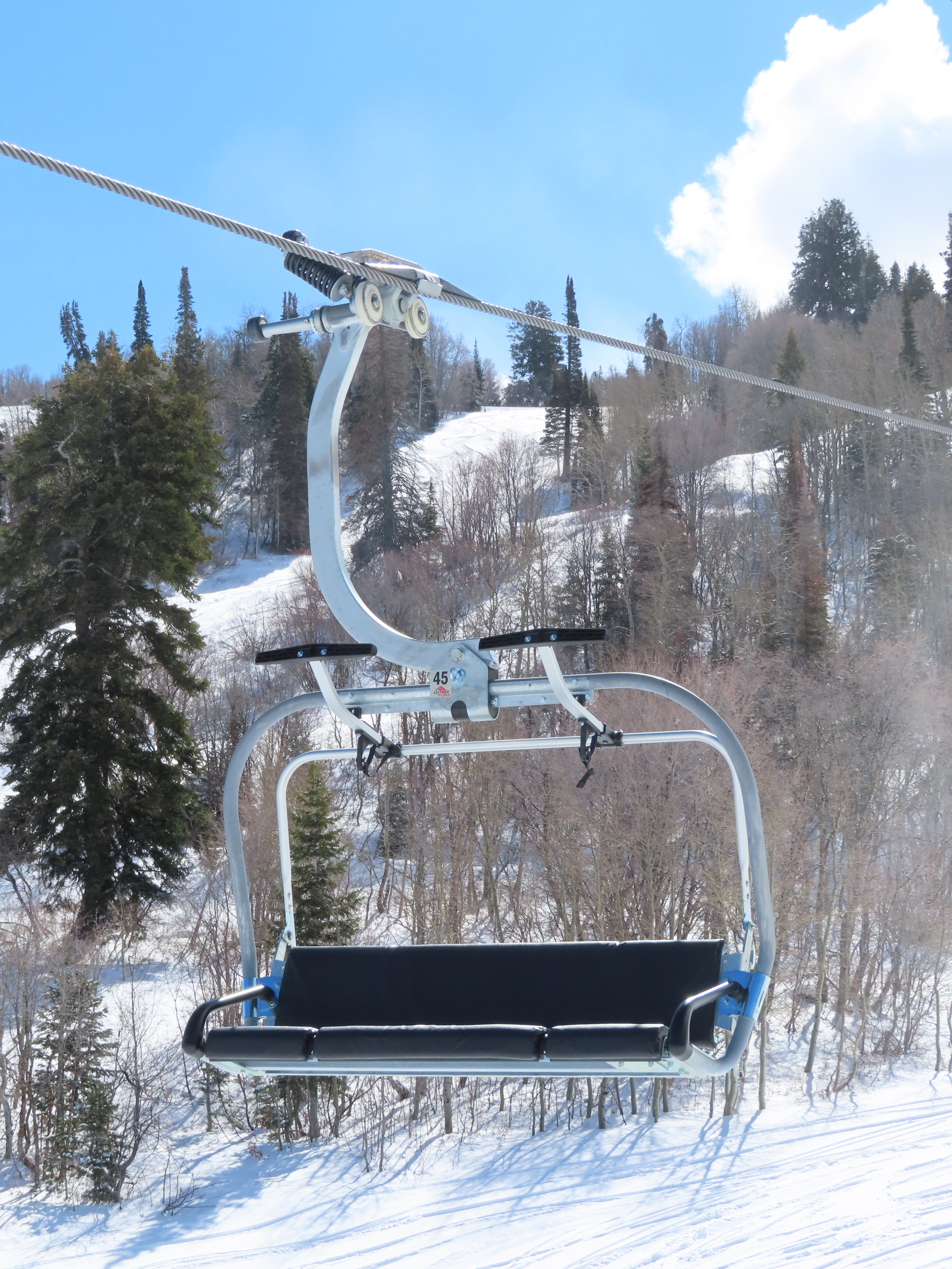 The new Becker starts next to Wildcat and follows a different alignment from the old Becker.Lift line rising out of the base area.Side view of the return terminal.Both lifts share a common maze area.View back down at tower 7.The long lift line could be described as a roller coaster with many undulations.Crossing over one of several gullies.Looking back at tower 16.Upper lift line.Tower 20.Upper station overview.Unloading area with a view.LPA drive station.View from the summit.The final two towers.View down at T21.Towers among deciduous trees.View down the middle part of the line.Tall tower 15.Another view down the line.Doppelmayr and Leitner-Poma stations squeezed together.New lower terminal location near Wildcat and Little Cat.Austrian-made chair.Tower 10.Arriving at the drive.Maze area.Side view of the bottom terminal from Becker.Side view of the top terminal seen from Wildcat.Upper station in a similar location to the old Becker top.Side view of a tower with combo assemblies.Close up of Becker return.Lower part of the line and one of several hold down towers.