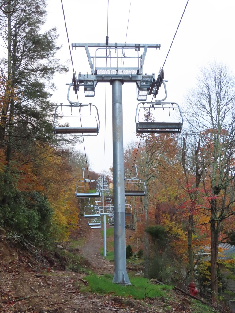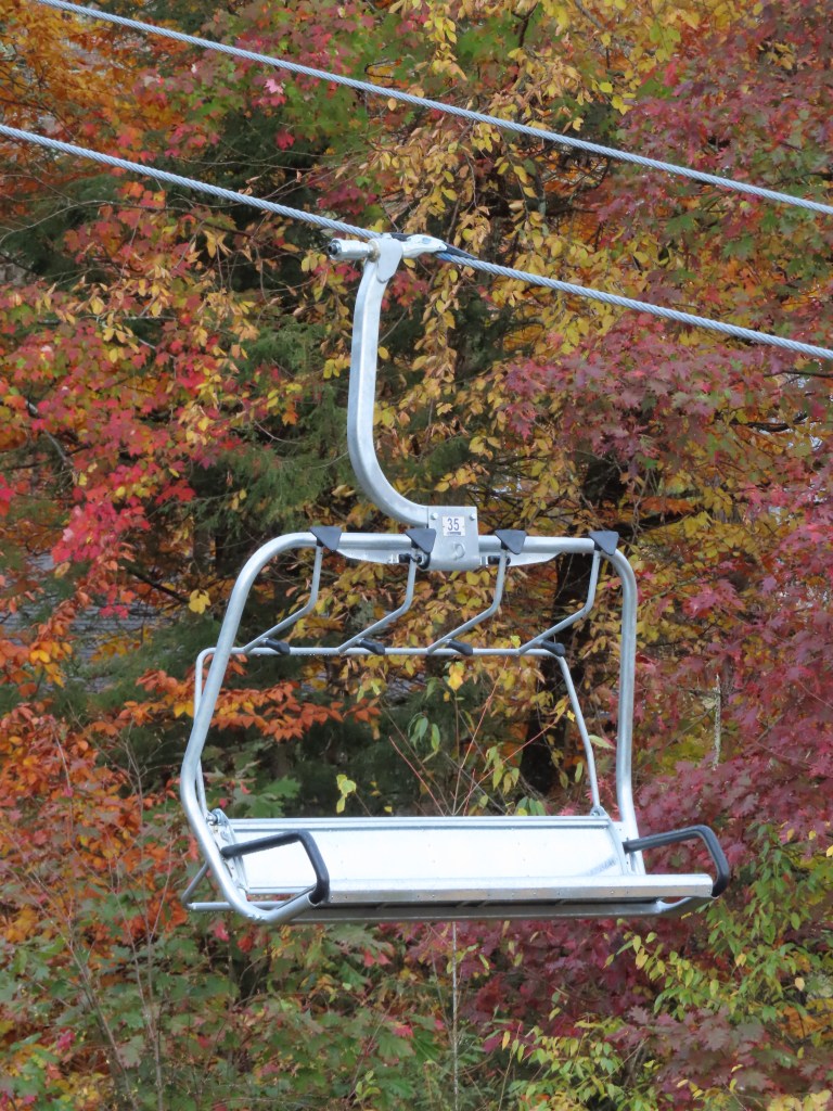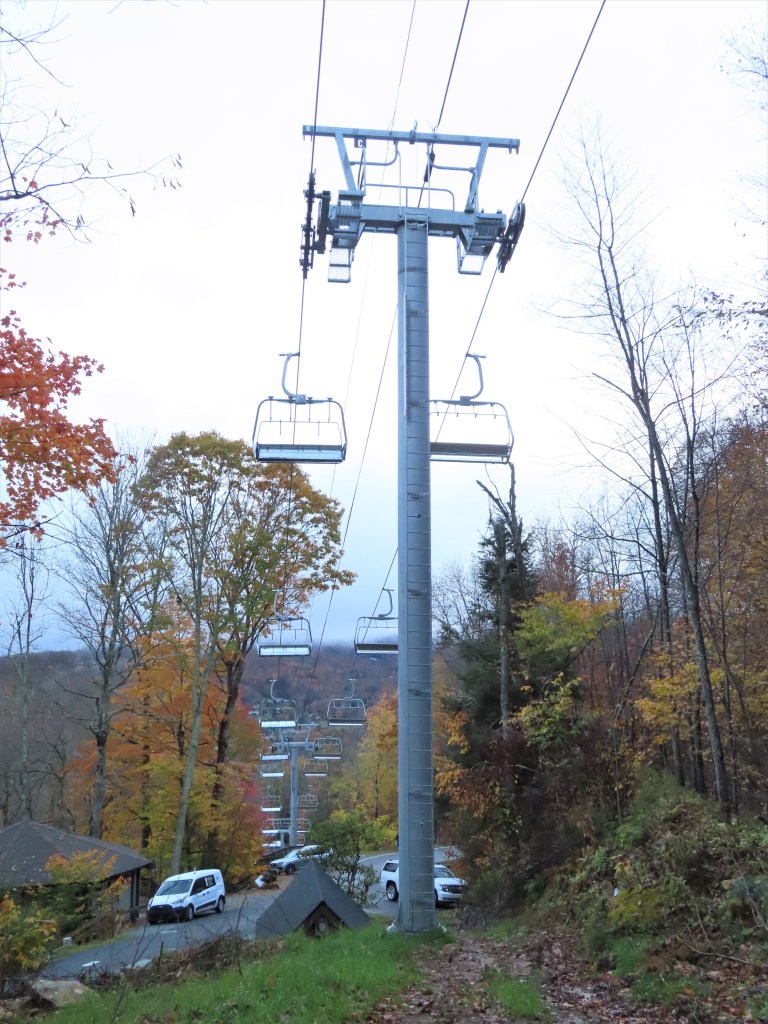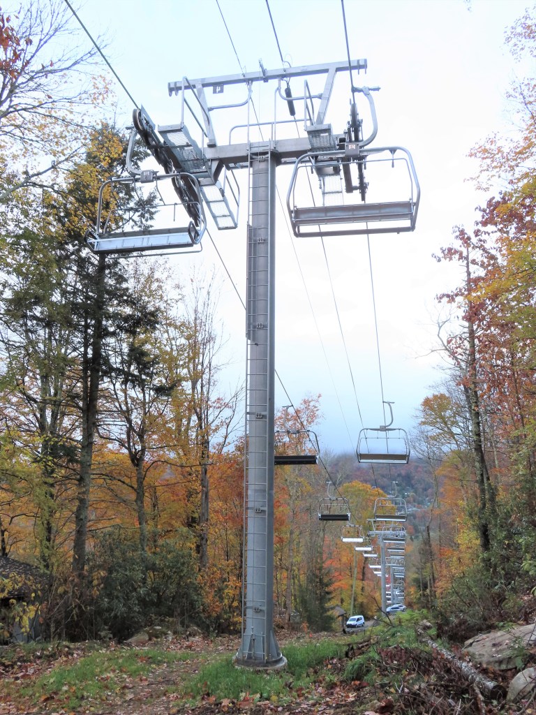 This Alpenstar quad services a beginner area known by the same name of Big Birch.Tower 3.Doppelmayr tower.The lift crosses over a road and some houses.View up at tower 5.Tower 6.The middle part of the lift line is almost flat.The steepest part of the line.Tower 8.View down the line.Top bullwheel.View from the summit.Doppelmayr Connect outside controls.Upper station overview.Lower part of the lift line.Loading area with lift shack reused from the prior triple chair.View up from the base area.Sheave assemblies integrated into the bottom station.Motor room.Doppelmayr EJ chair.