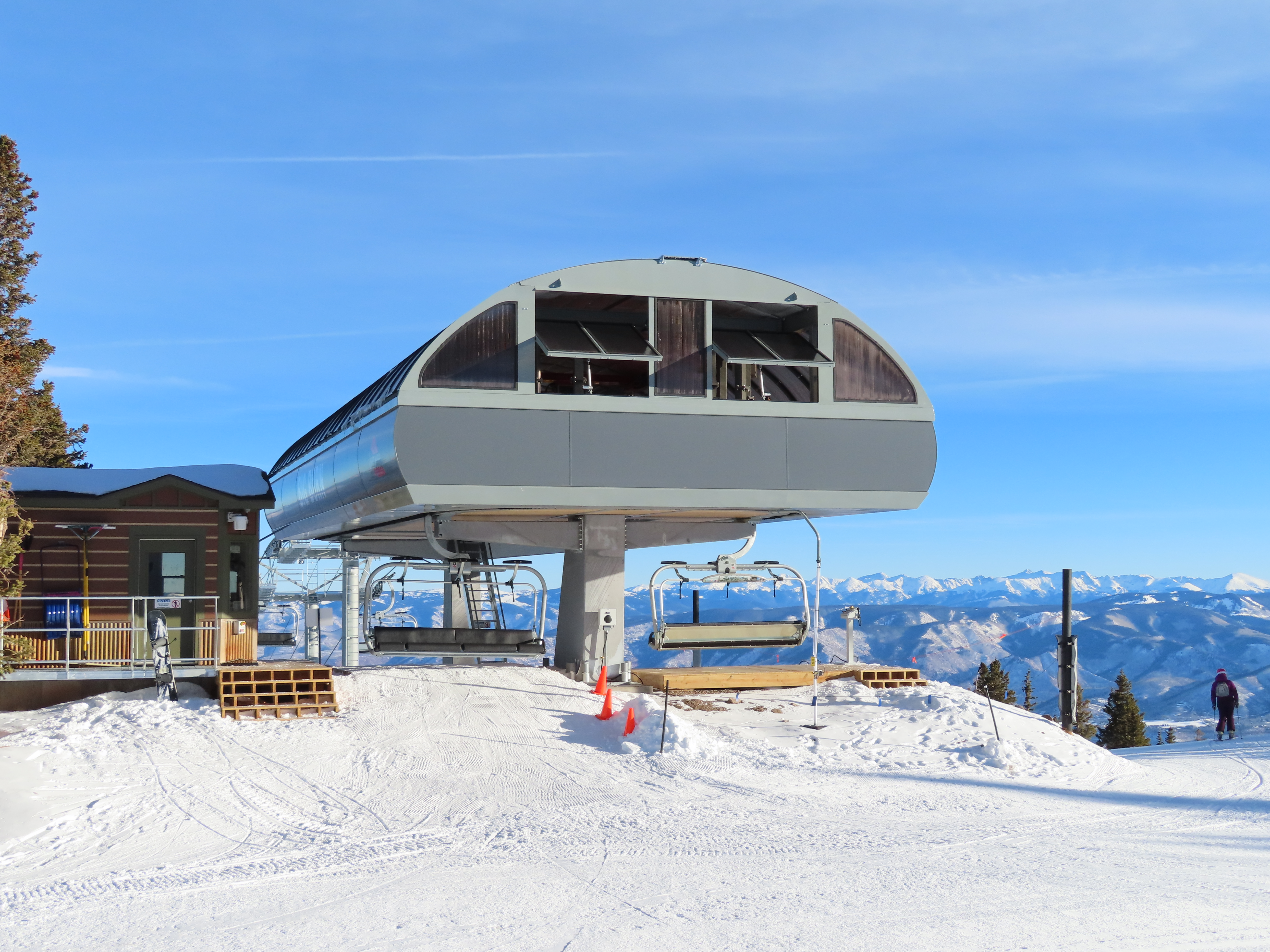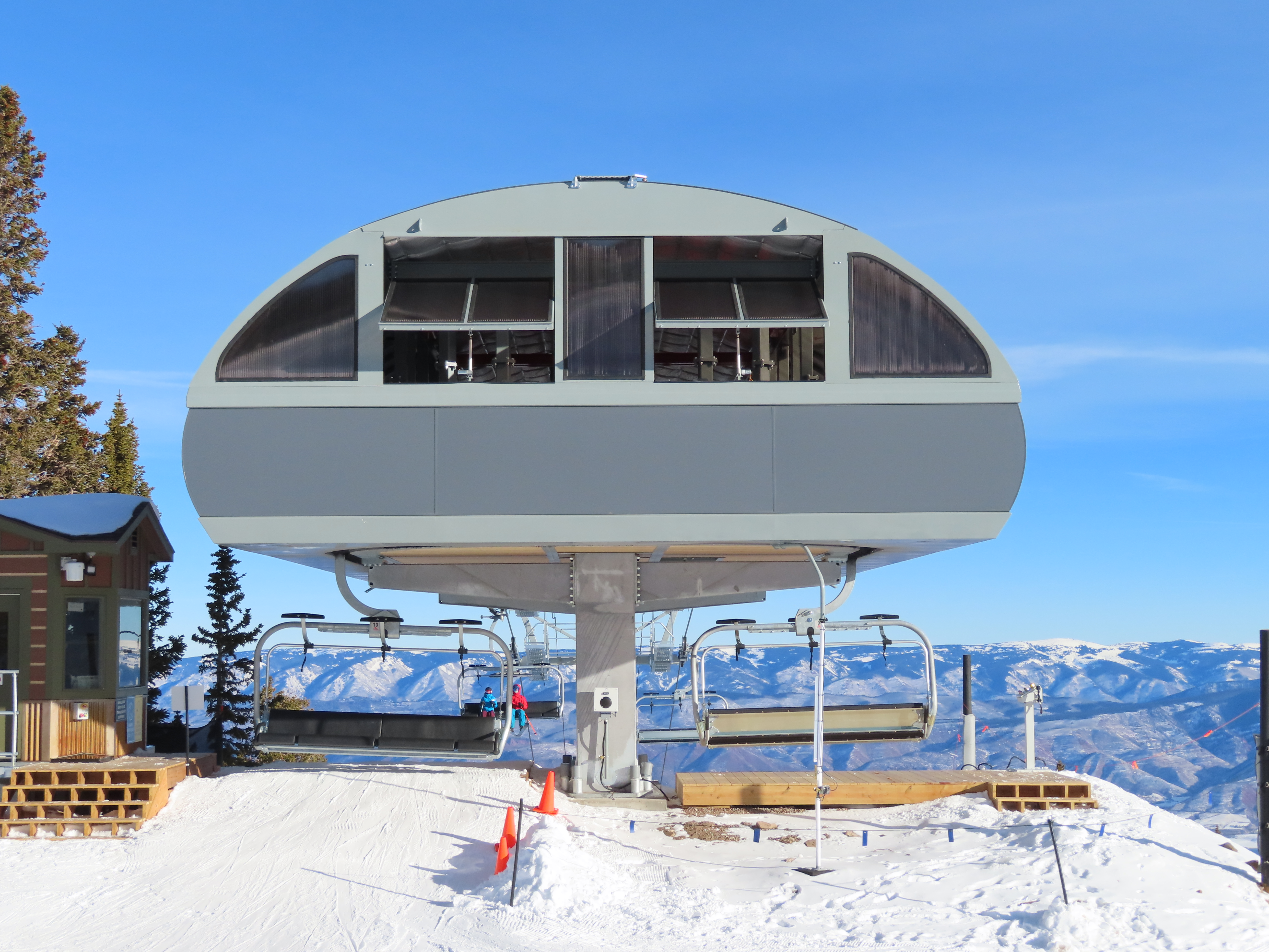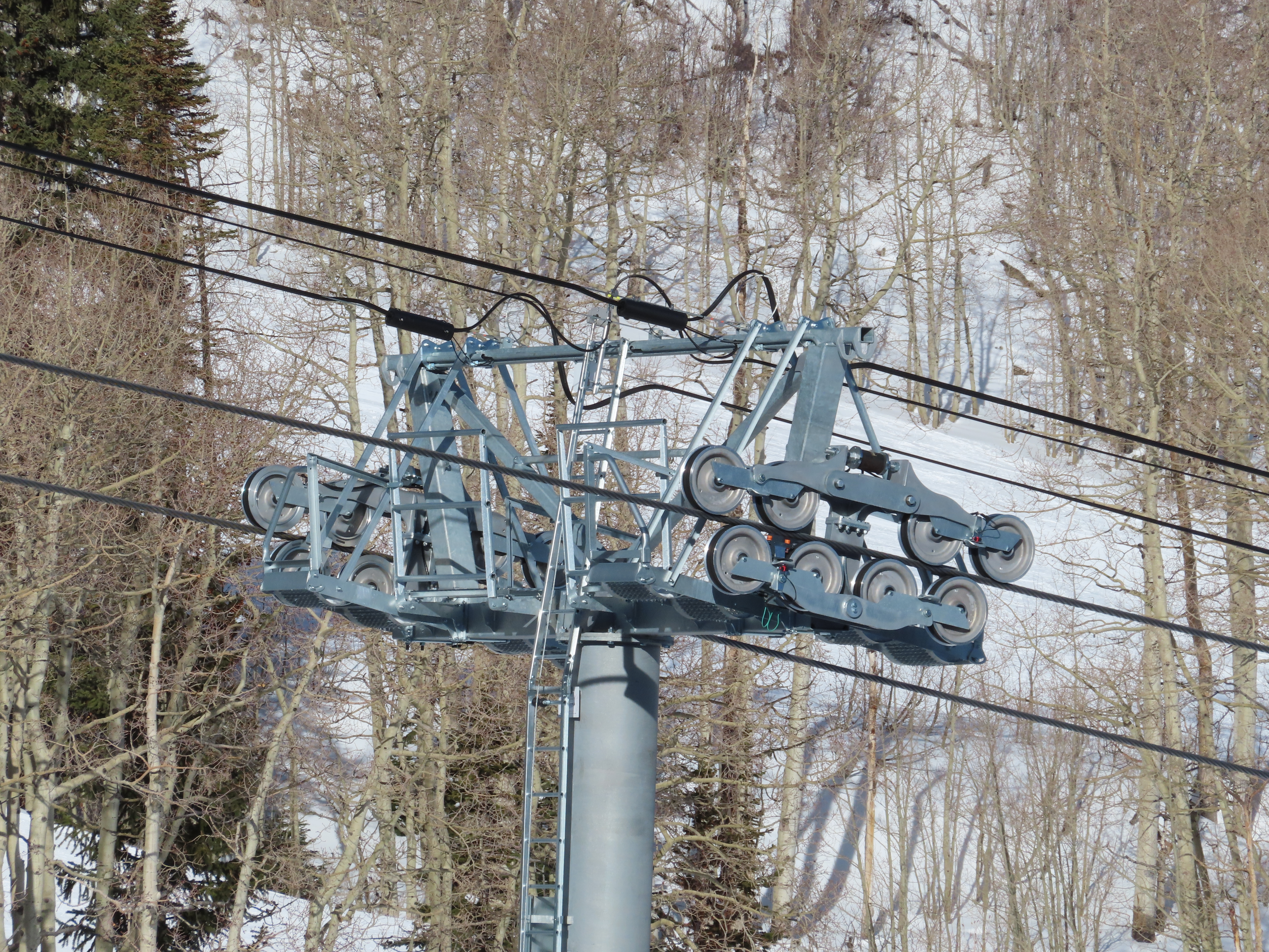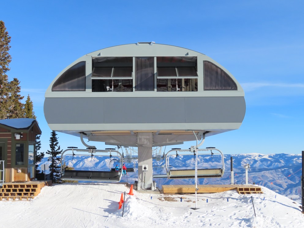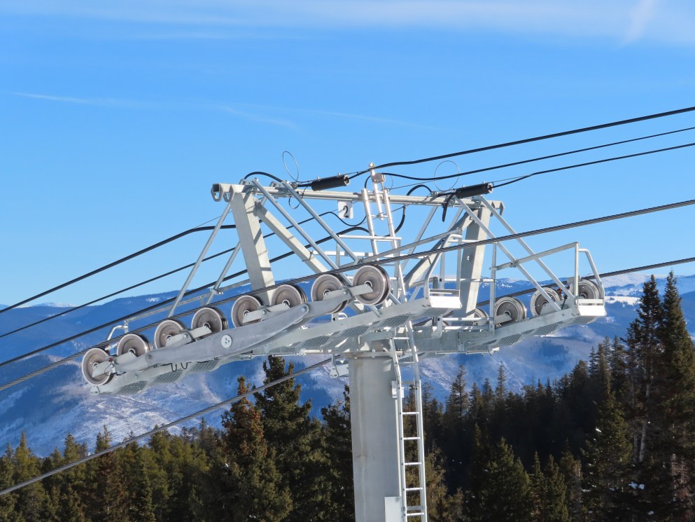 Was looking at some newer LPA lifts on this site today and noticed that this lift has a slightly different terminal mast set up than some other LPA six packs, say #11 Northwoods Express at Vail. This lift has what looks like fixed terminals with an internal tension carriage and “gondola-style” terminal masts, compared to movable terminals on rollers and regular LPA terminal masts on other LPA six packs. Looks pretty similar to the American Flyer terminals. Maybe the different masts are a requirement for the bubble capability… or to accommodate the longer length needed for 1,100 fpm line speed. Possibly both, I’m not sure.