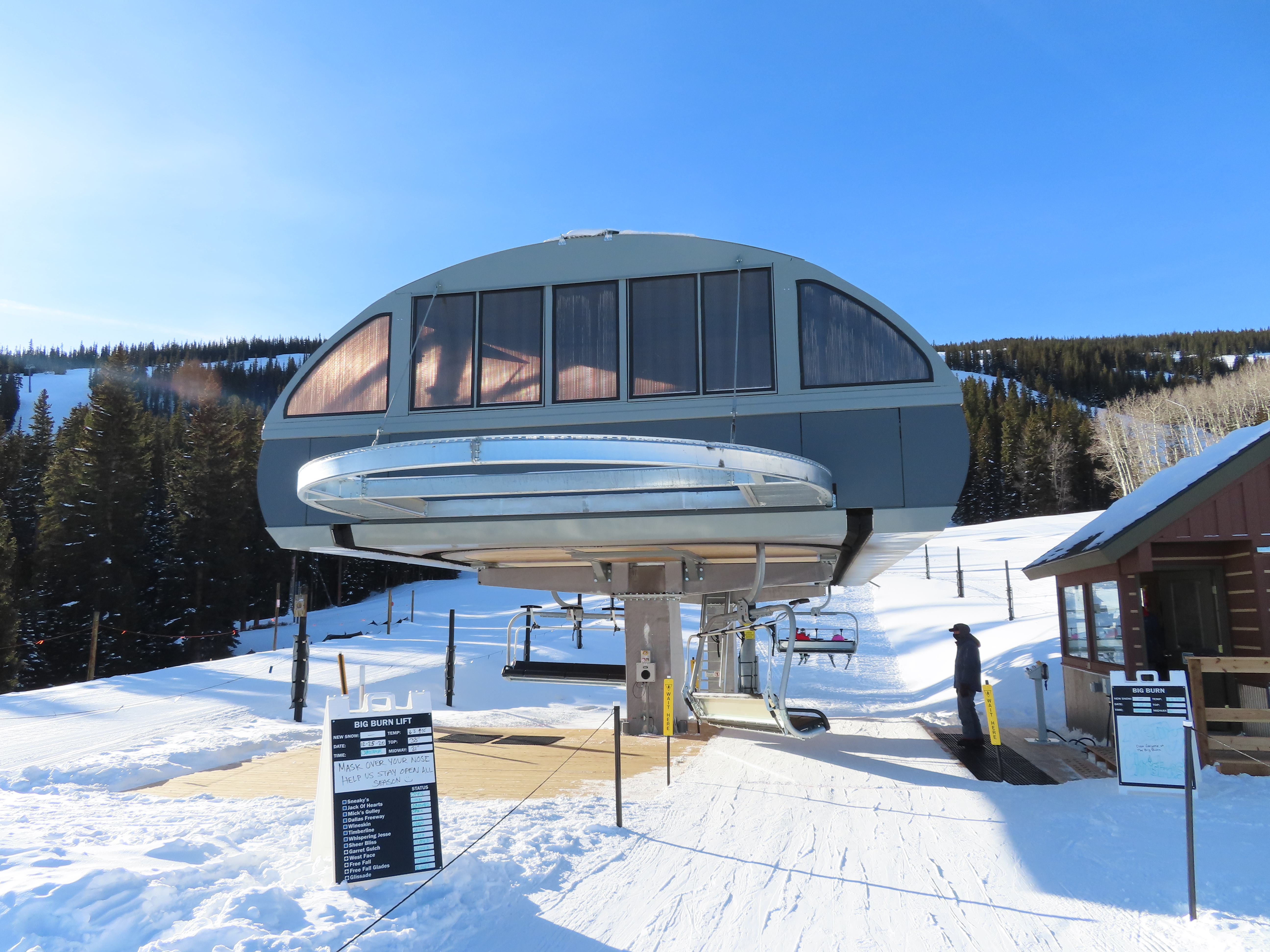 Although there’s an irony in that I think, right now, Sheer Bliss has more capacity on it than Big Burn, and its chair spacing seems to give it a capacity closer to 2,400 pph (vs. Big Burn’s 2,200 pph).