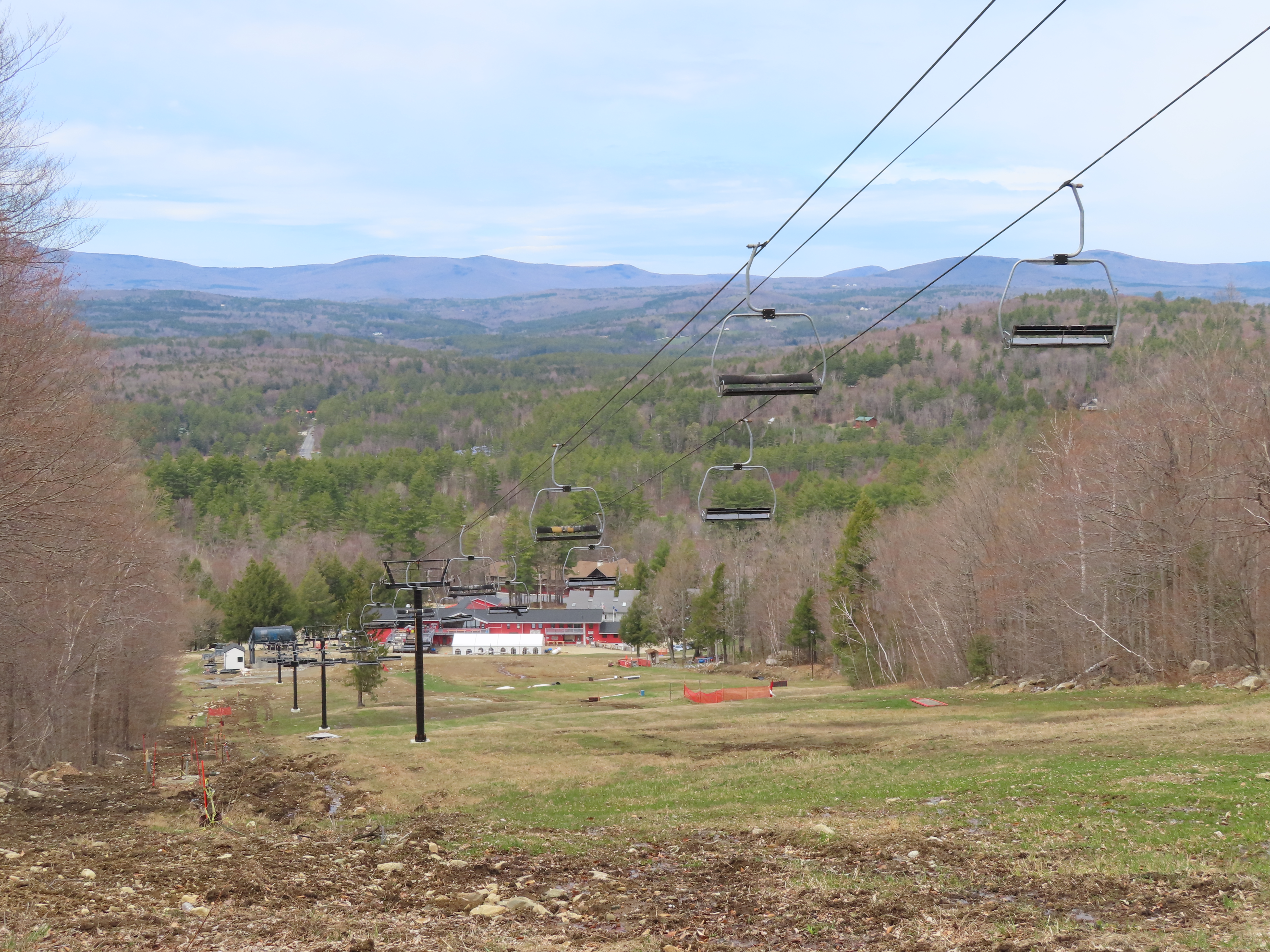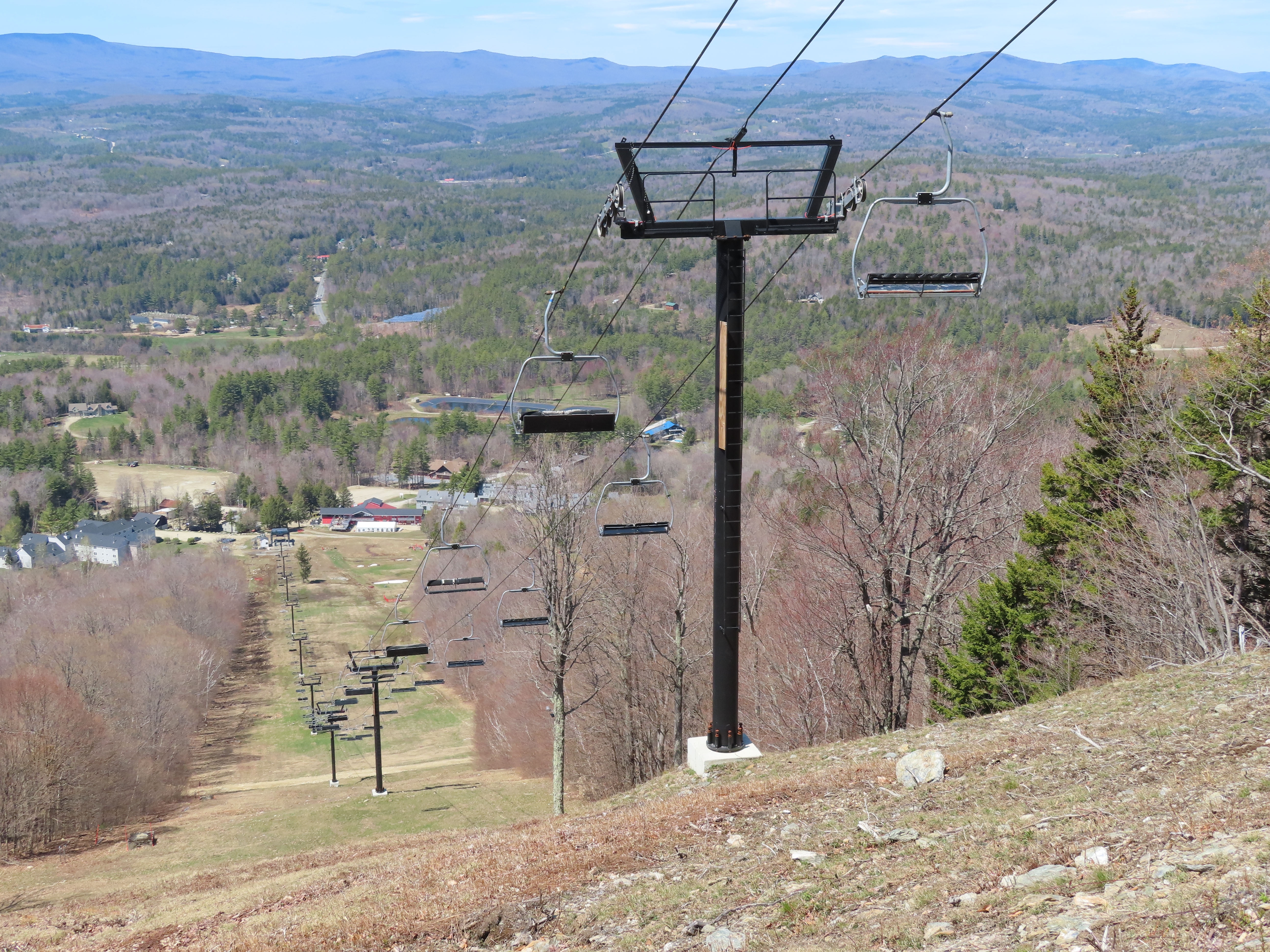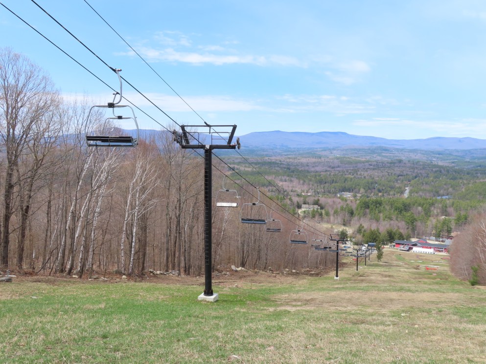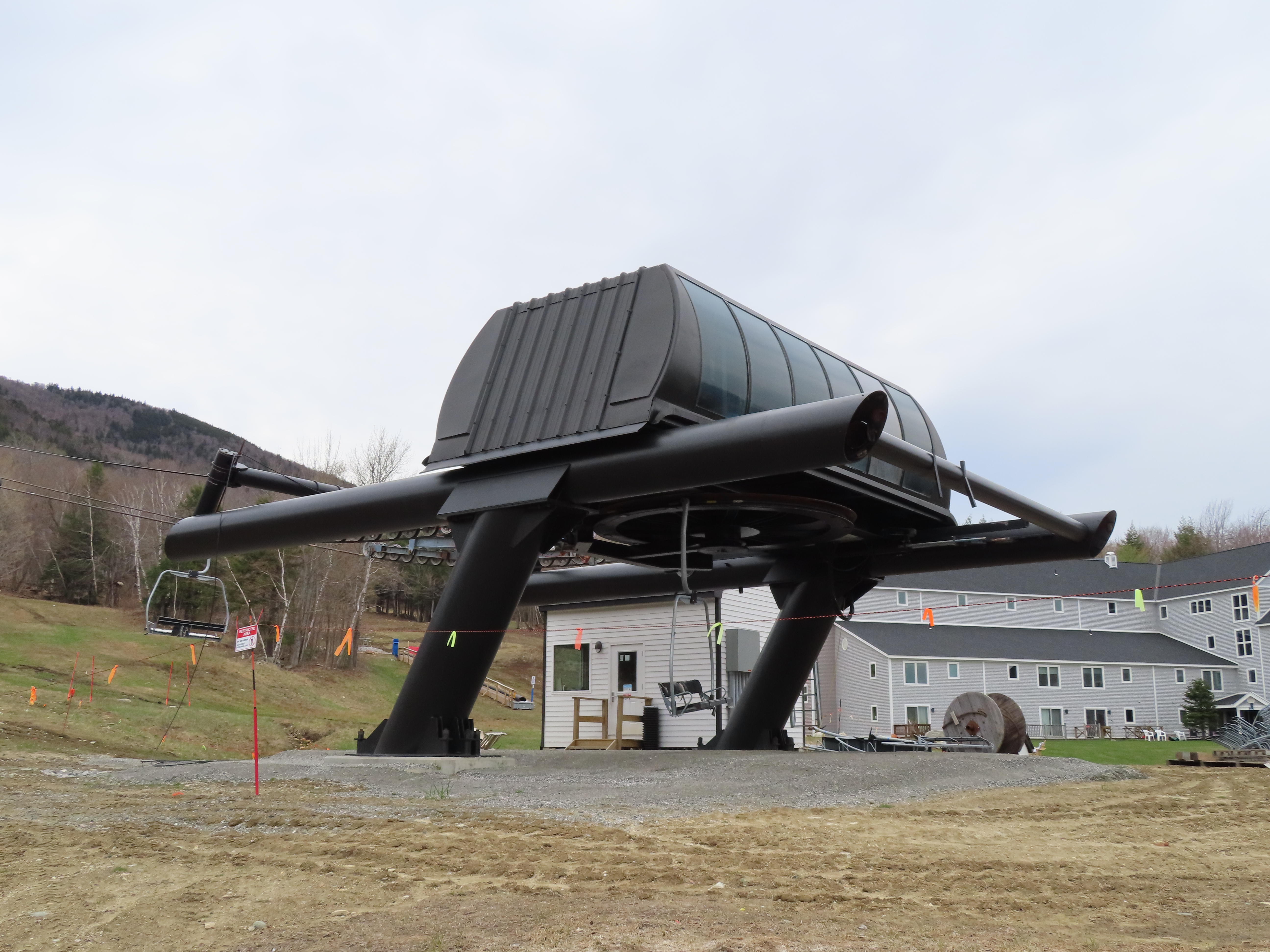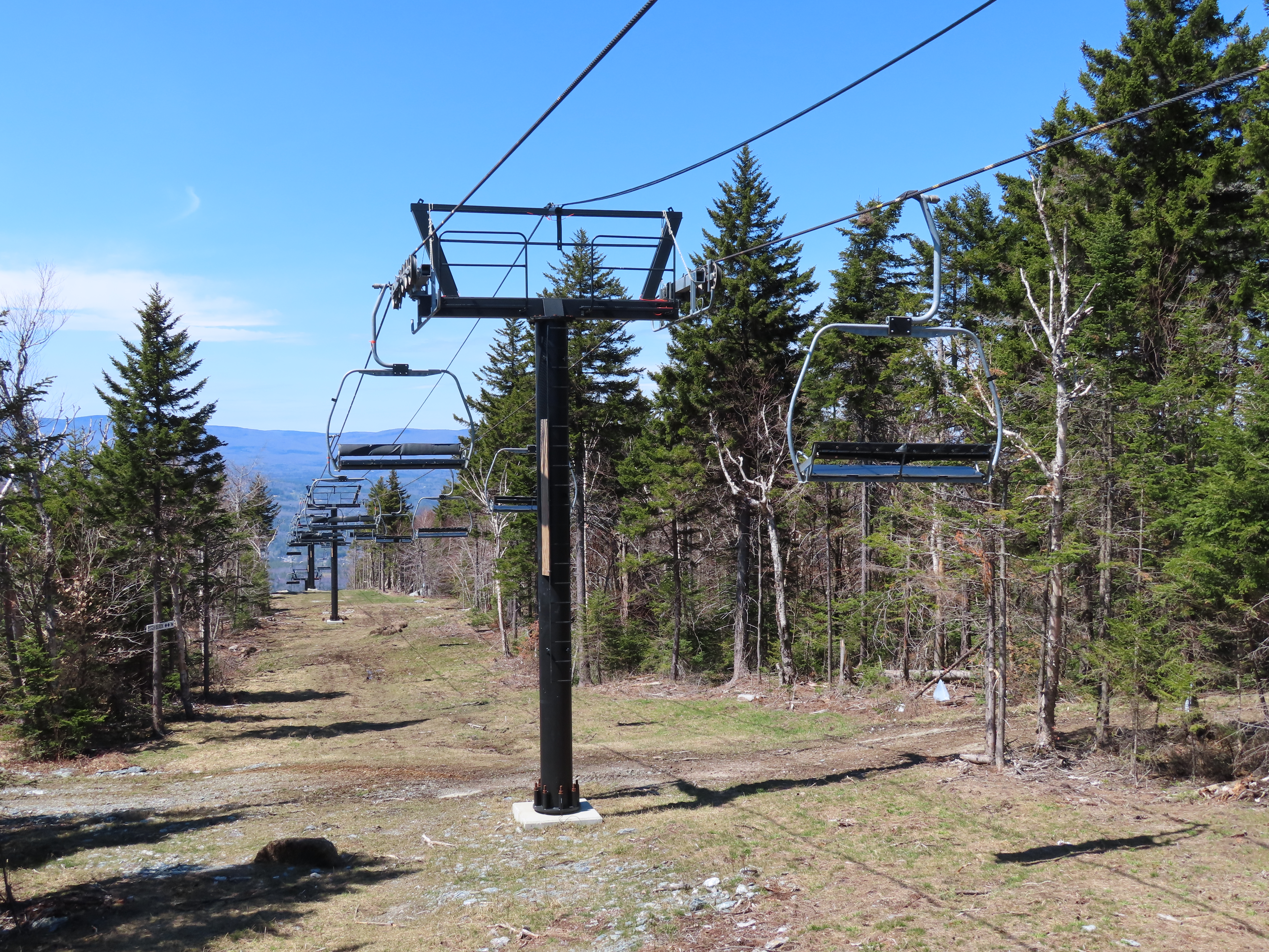 I’m not sure exactly, but the line here is definitely different. Snow Bowl’s liftline was mellower and was pretty consistent if I remember correctly. This lift starts with a runout on Hocus Pocus, gets progressively steeper along Black Line, gets much steeper than it had gotten at Stratton on Pitch Black and then mellows out to near-flat at the top. They wanted to iron out electrical issues, construct the top ramp and add safety bars in December and January for a mid-season opening (Whether or not this was possible in the first place is up for debate), but they discovered these issues around President’s Weekend and delayed the opening to next season.