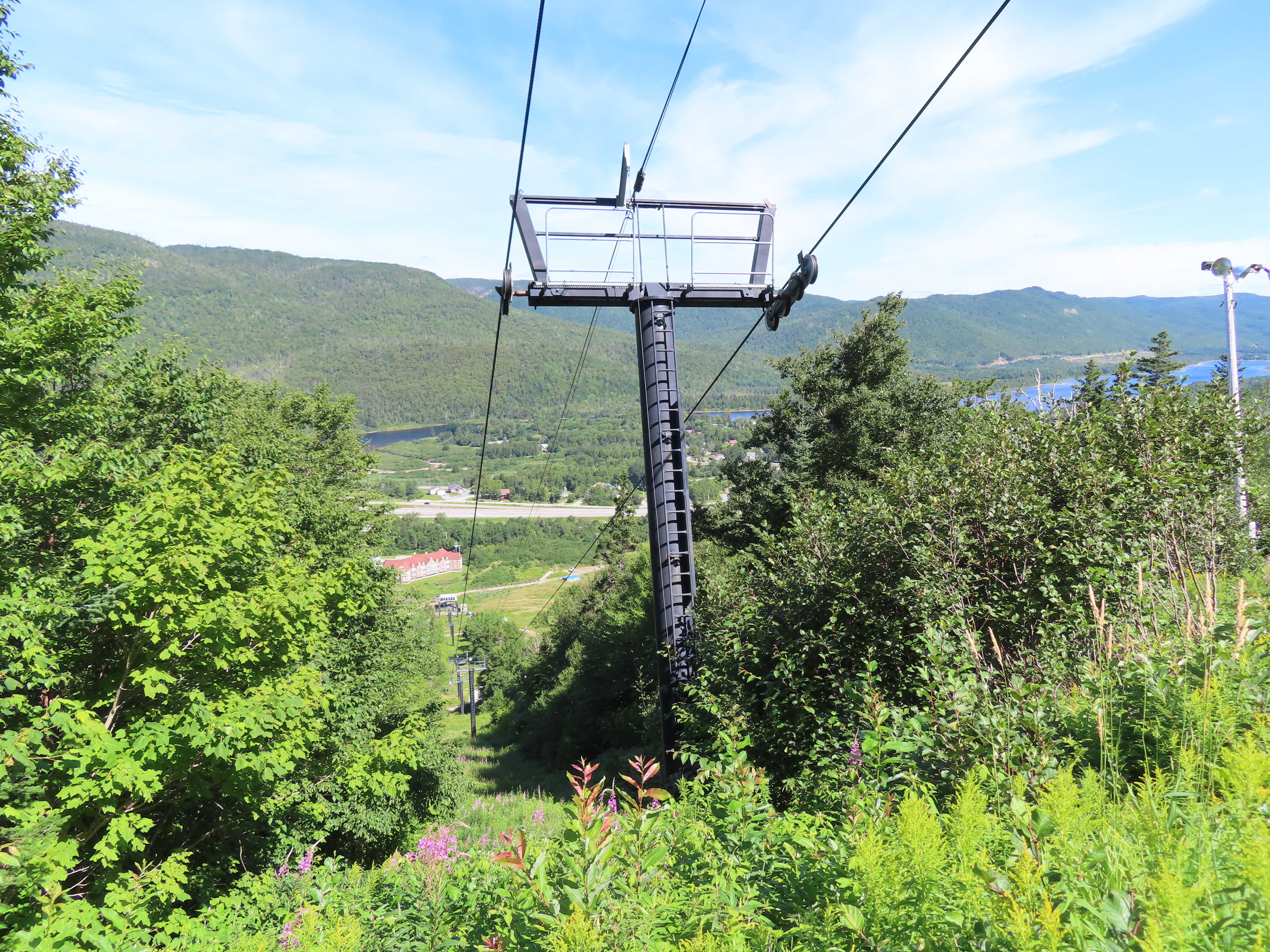 This lift services the east side of the mountain.First tower is a portal design.Loading area.Lower part of the lift line.Middle part of the line.Middle lift line.Upper lift line.View down.Top terminal above tree line.Unloading area.Tower 17.Another view of the top bullwheel.