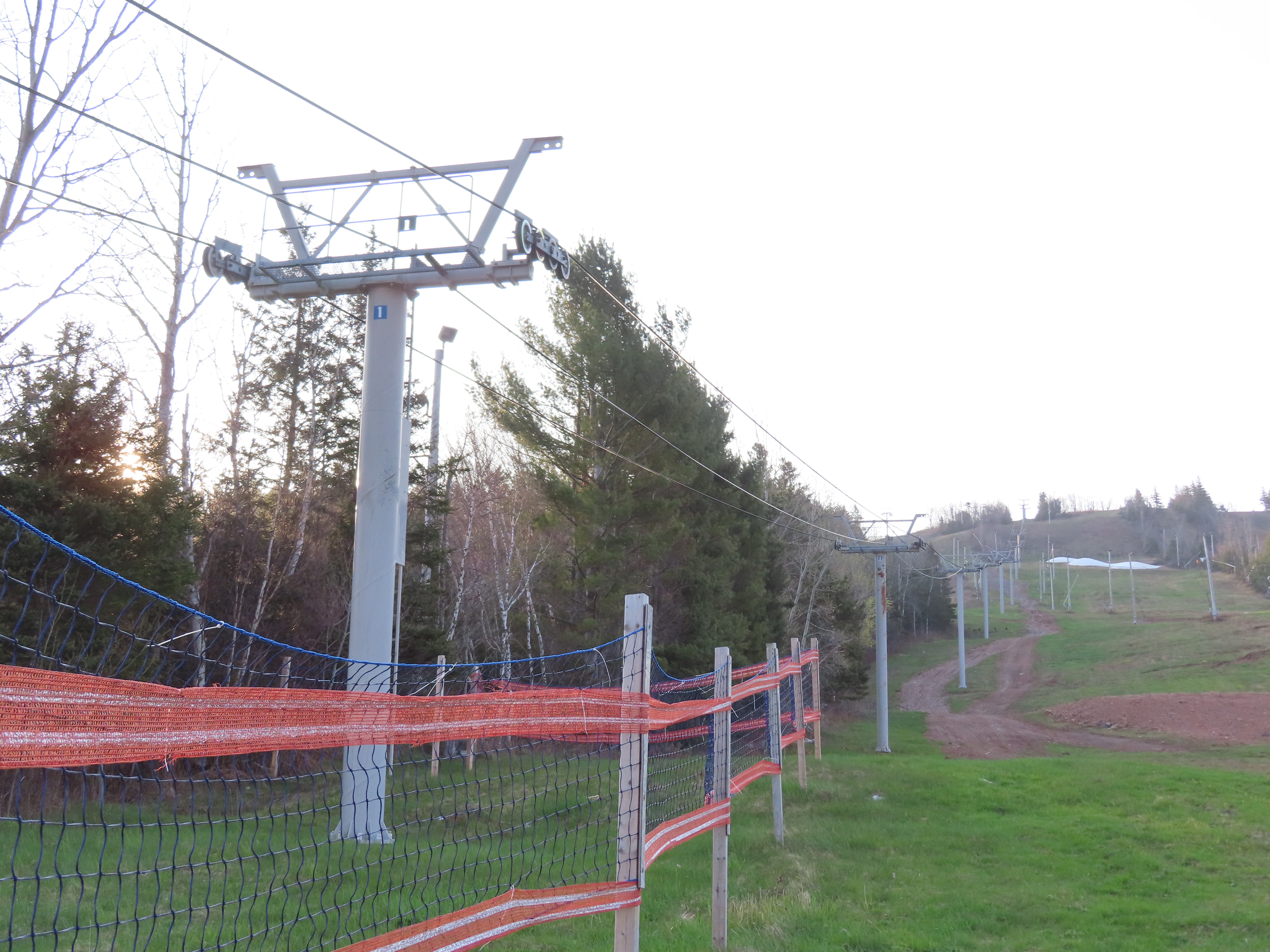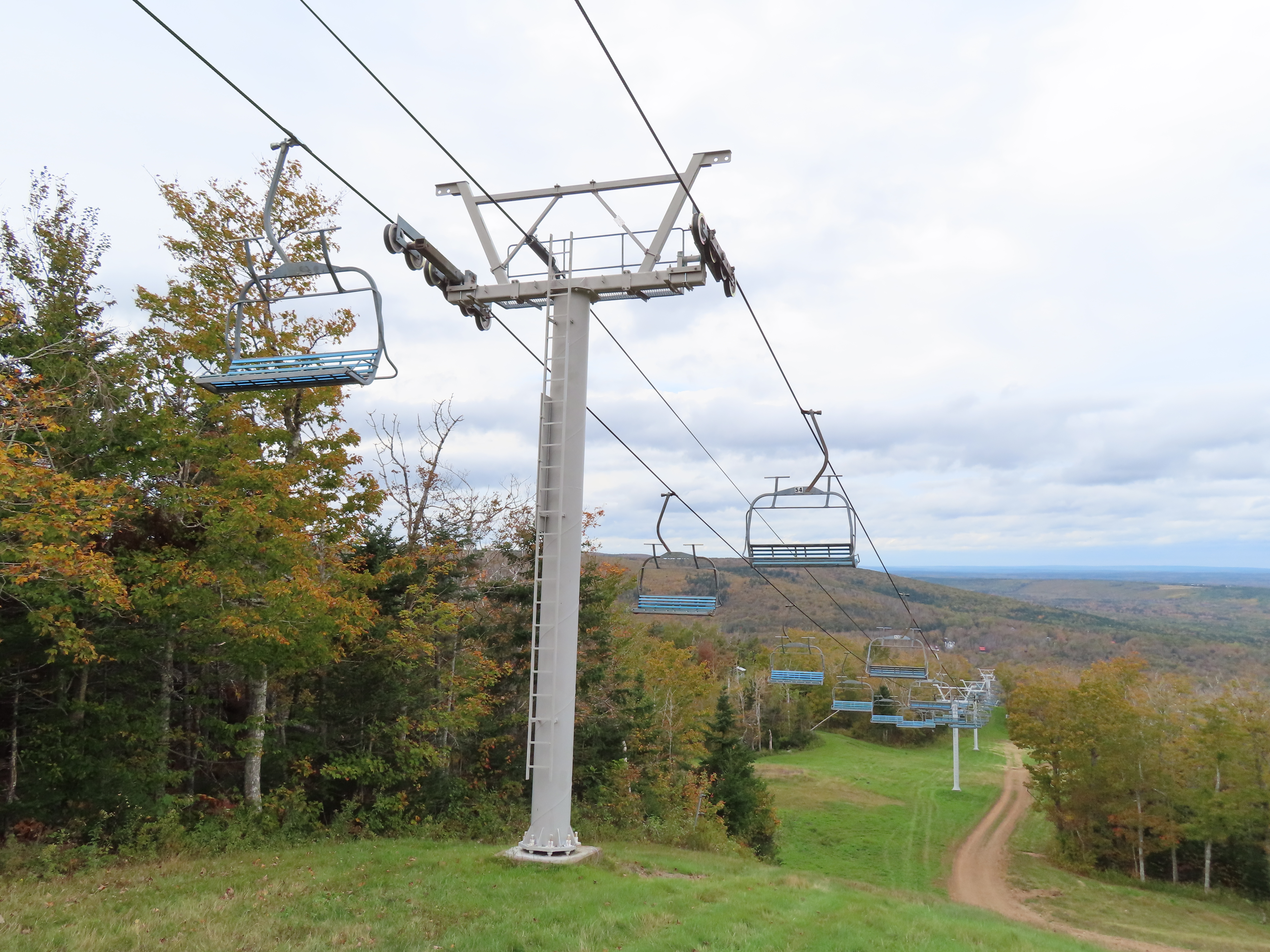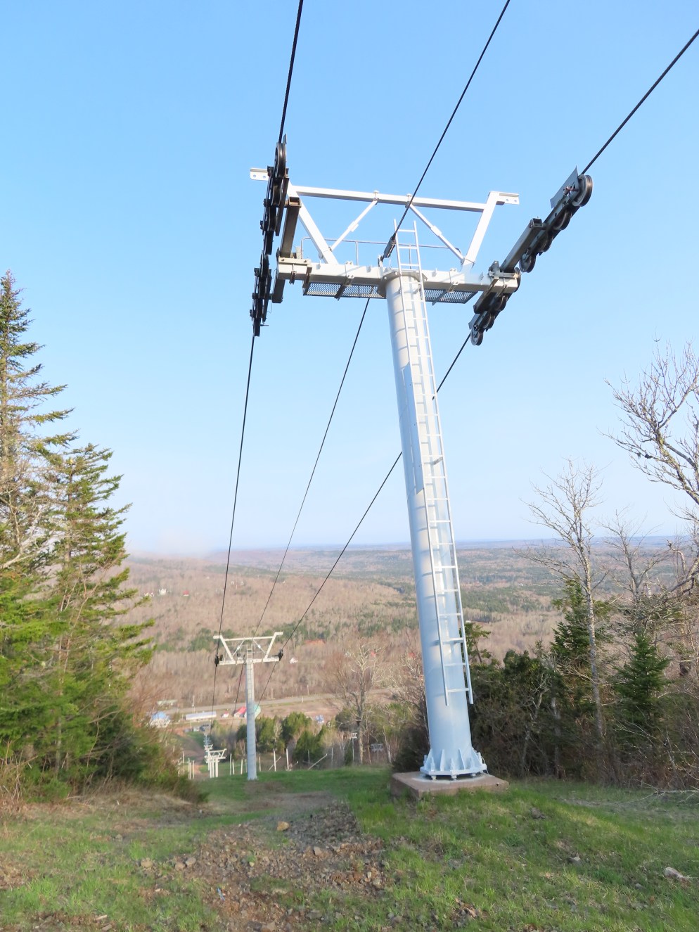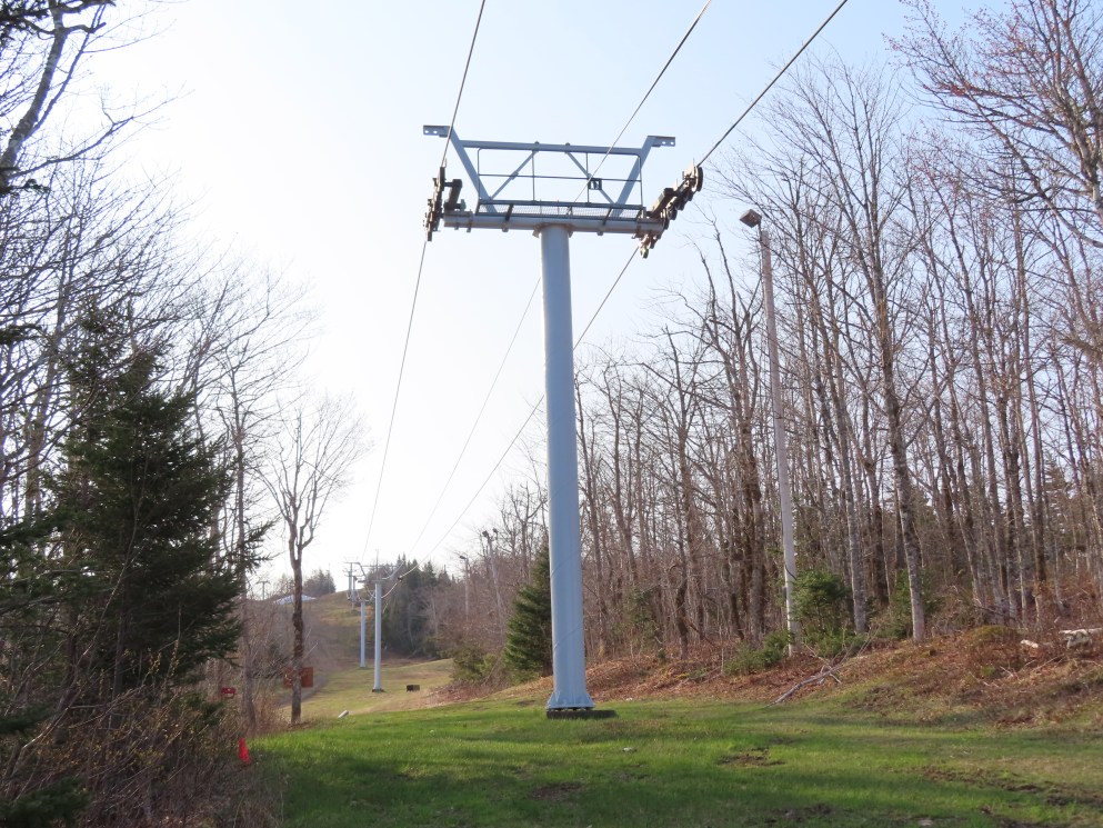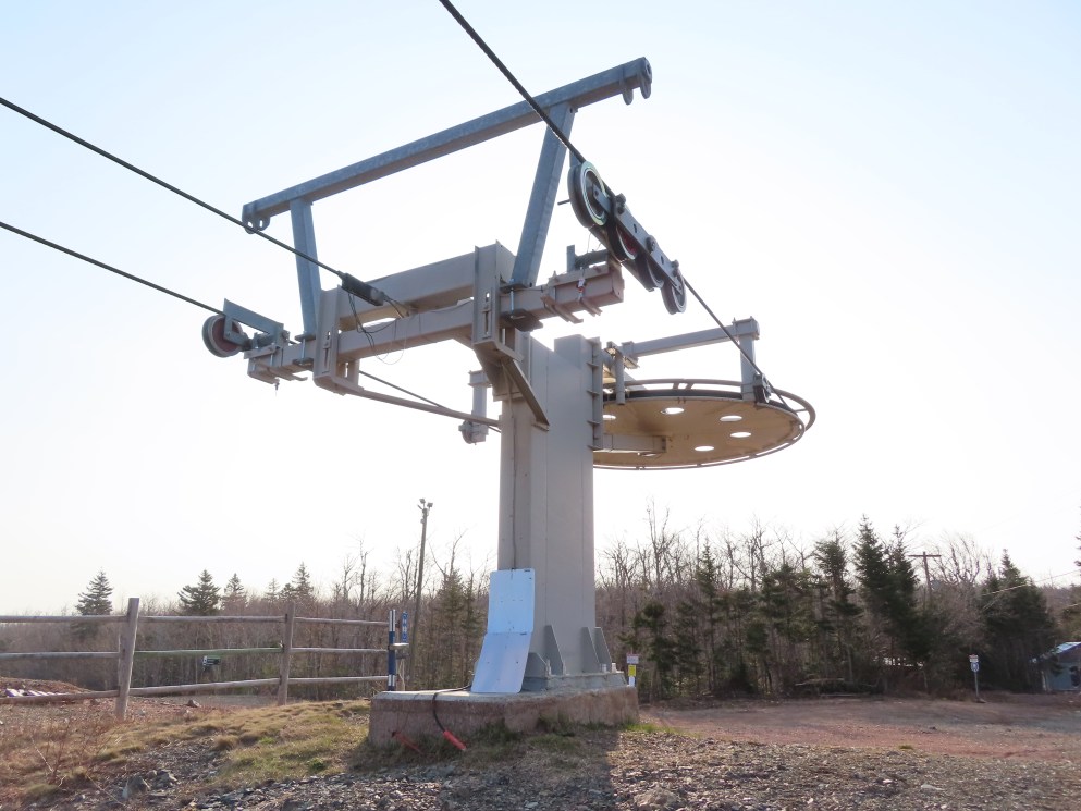 View up the middle part of the line.1980s style Doppelmayr tower.Upper part of the line.Side view of the top terminal.Upper station. Another Doppelmayr quad of similar vintage used to end here but was sold off due to financial difficulties in the early 2000s.View down near the summit.Lower part of the lift line.Side view of the bottom station.Loading area.View up from the base area.Another view of the drive-tension station.View near the summit with chairs on the line.Middle lift line.Lift overview.Lower line.View up at tower 5.