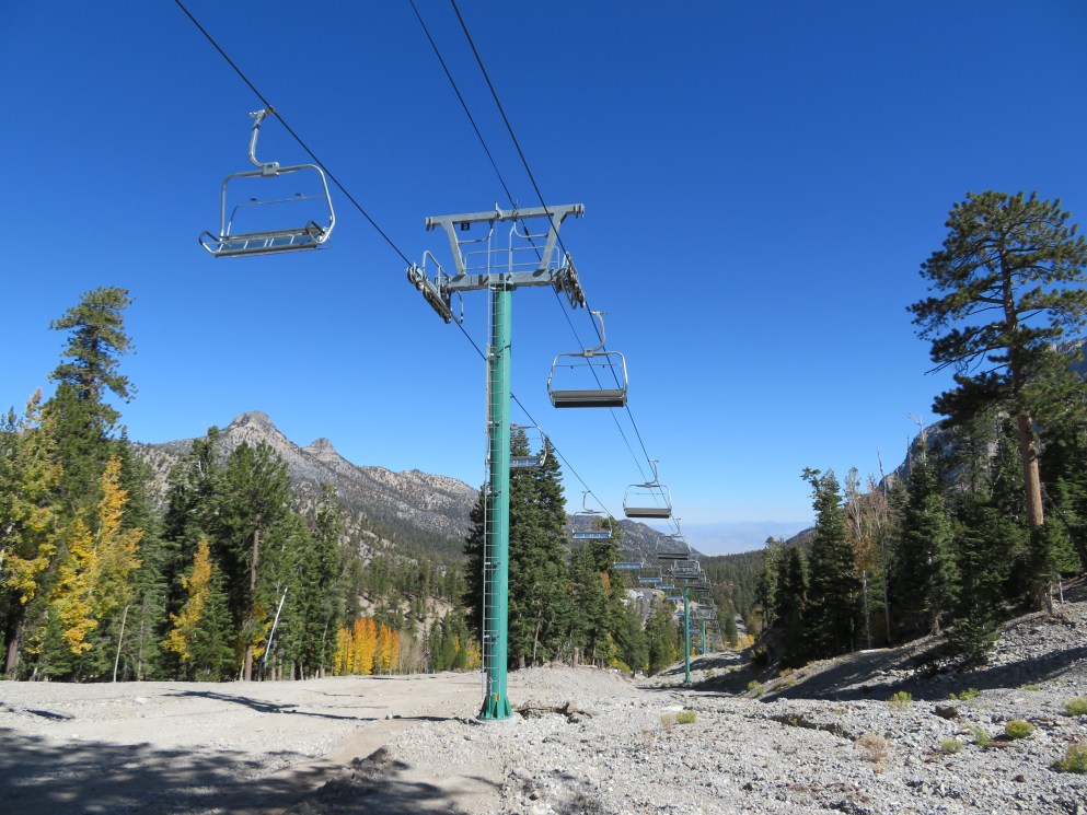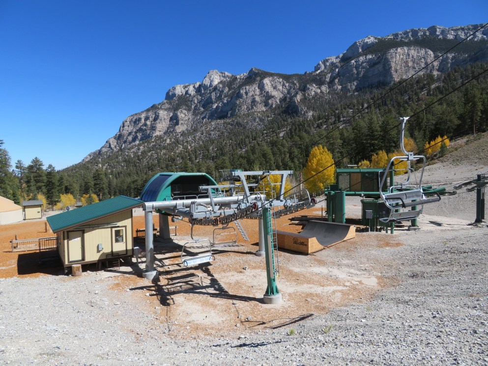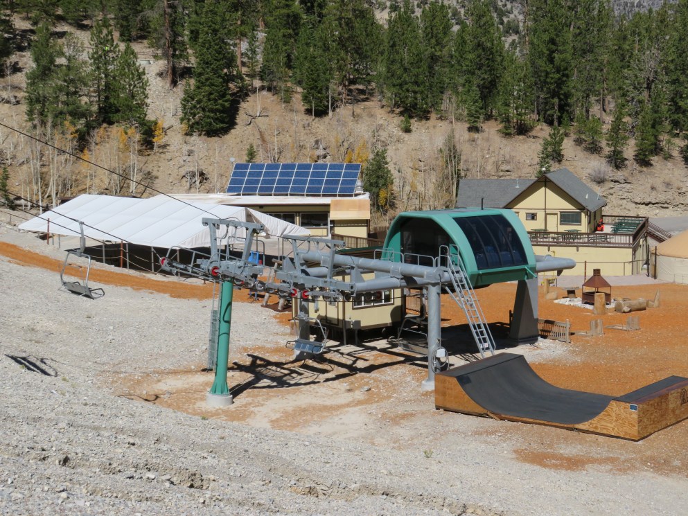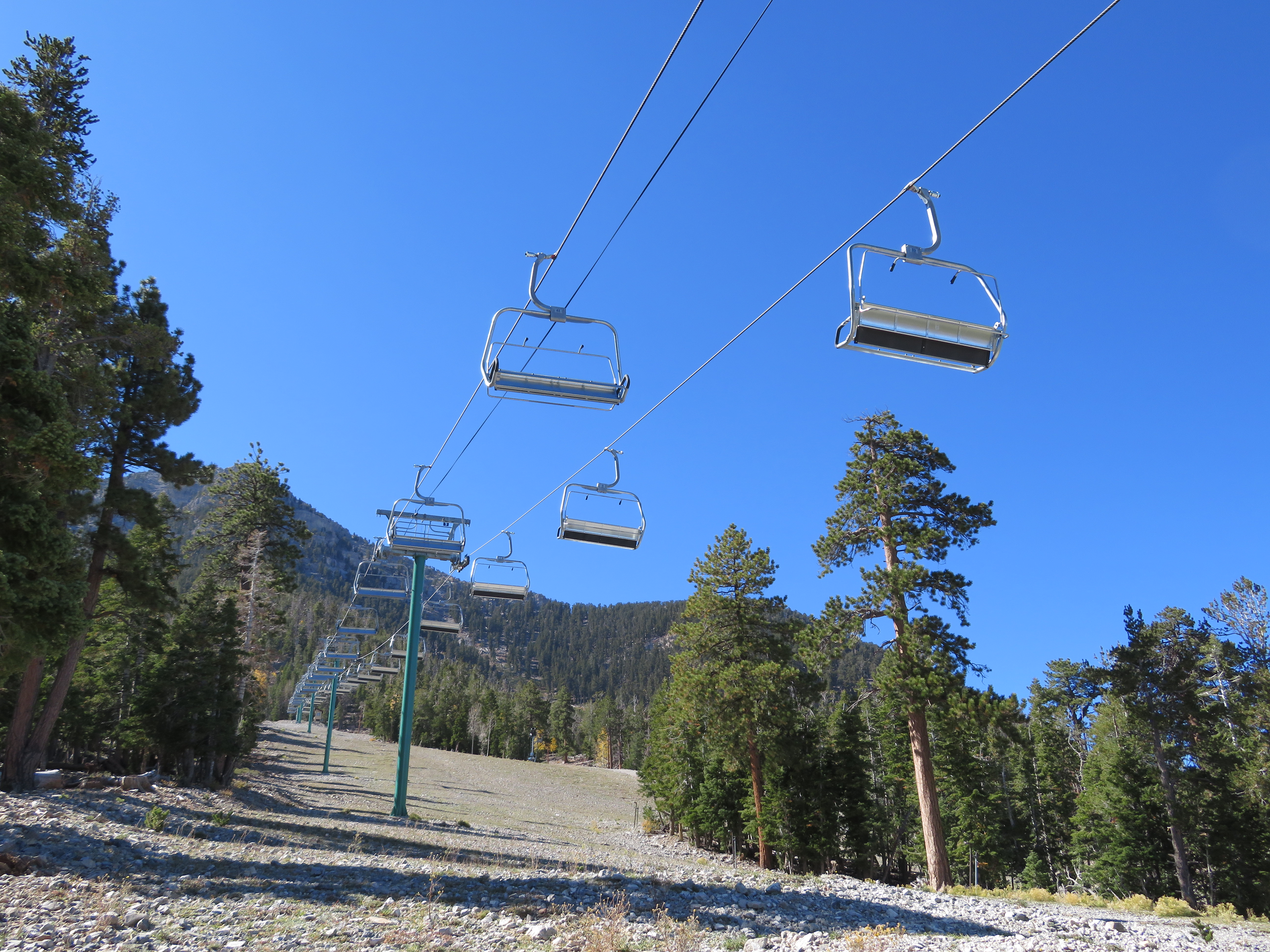 This is the longest lift at Lee Canyon and services intermediate terrain.It replaced a Hall double in 2014.View up the upper lift line.Lift line overview.Tower 12.Last tower and the top bullwheel.Detachable-style controls.View down from tower 13.Tristar bottom station.Tower 1.Loading area and motor room with hydraulic tensioning.Lift line in the fall.