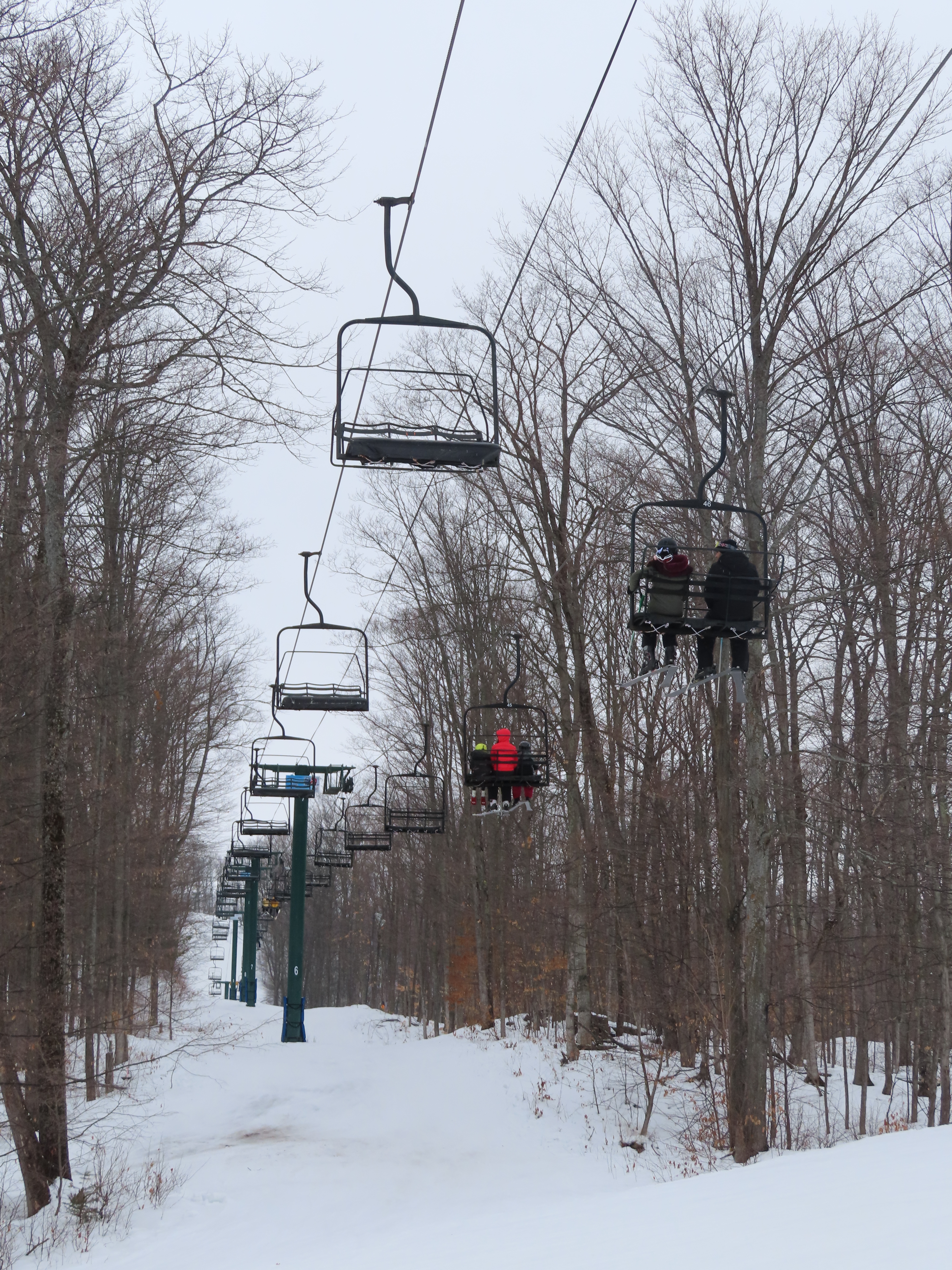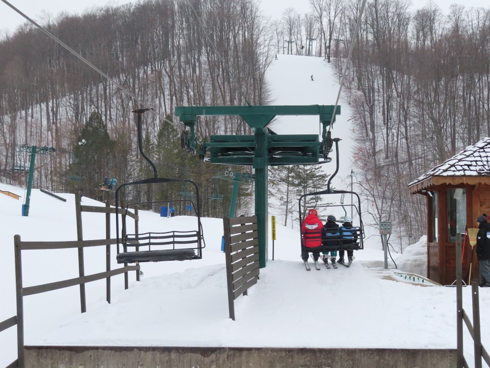 This is a relocated lift and used to be a double instead of a triple. It used to be the Super 2 that ran up the McClouth slopes and removed when the Mountain Express 6 was installed in 1992. Reinstalled when Boyne Mountain added their Boyneland beginner area in 1995.