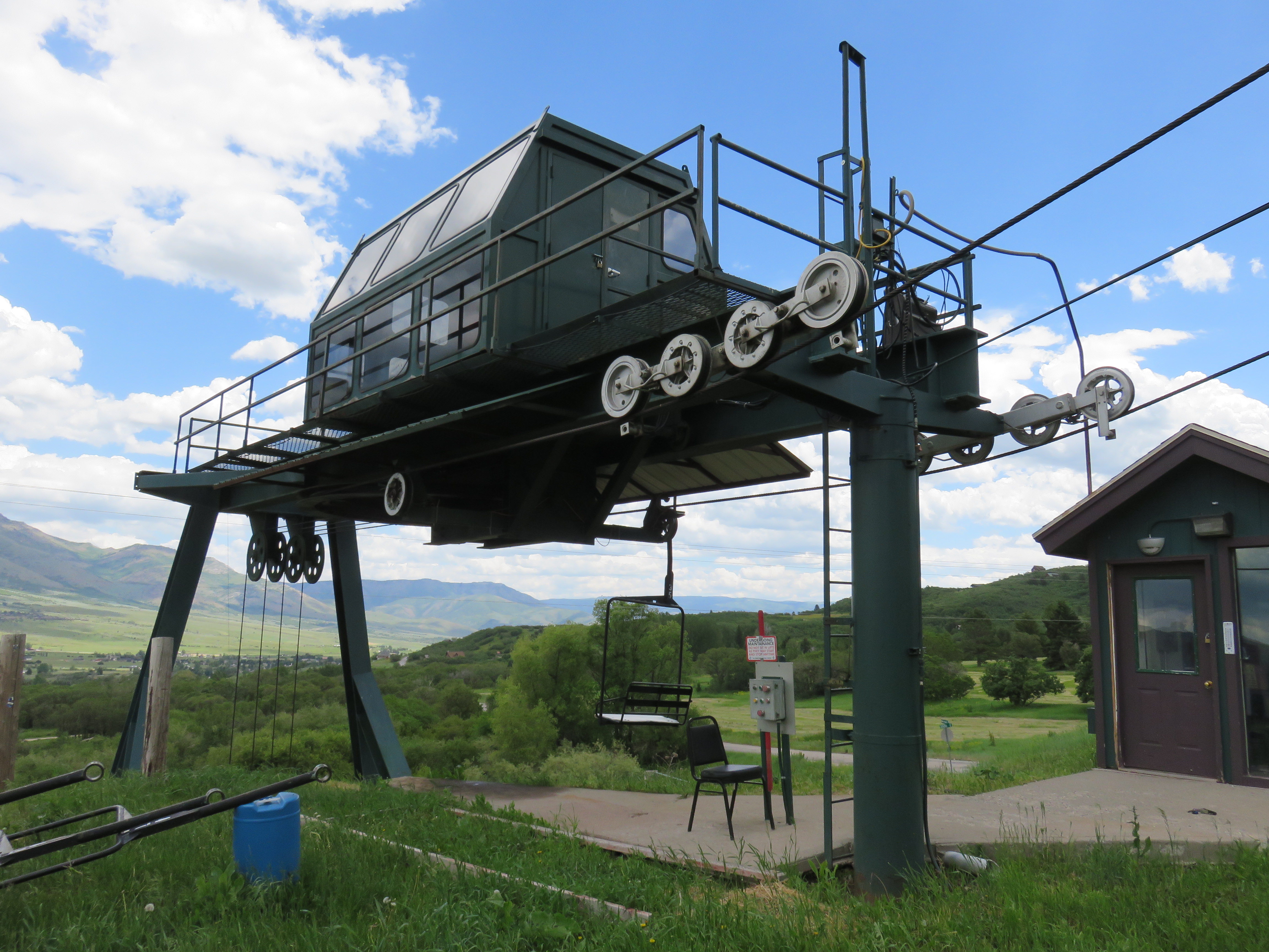 This lift is SBNO, at least this year. It’s missing some sheave trains, the haul rope is hung below the towers where they are missing, and all the chairs are off the line above the top terminal.