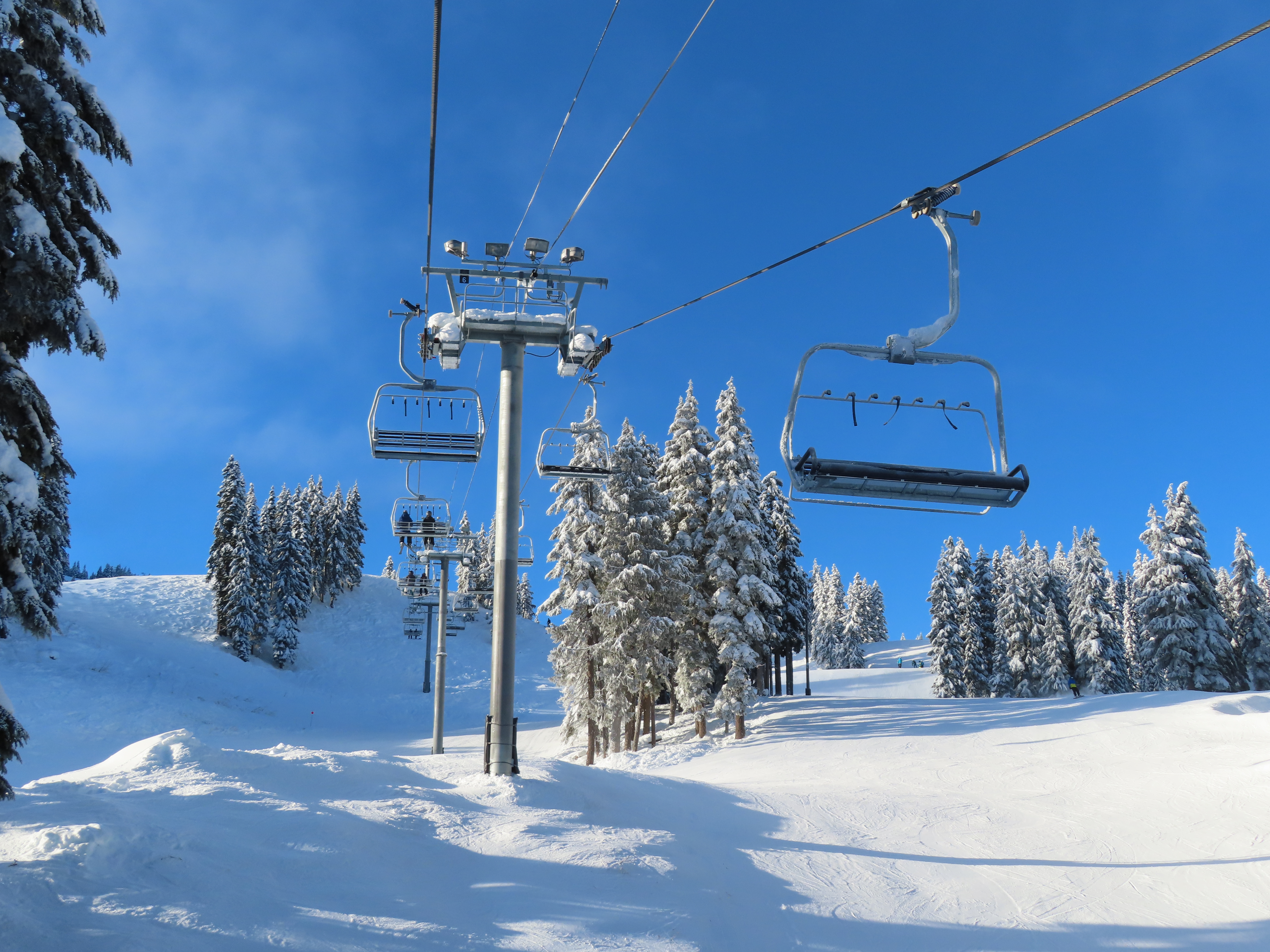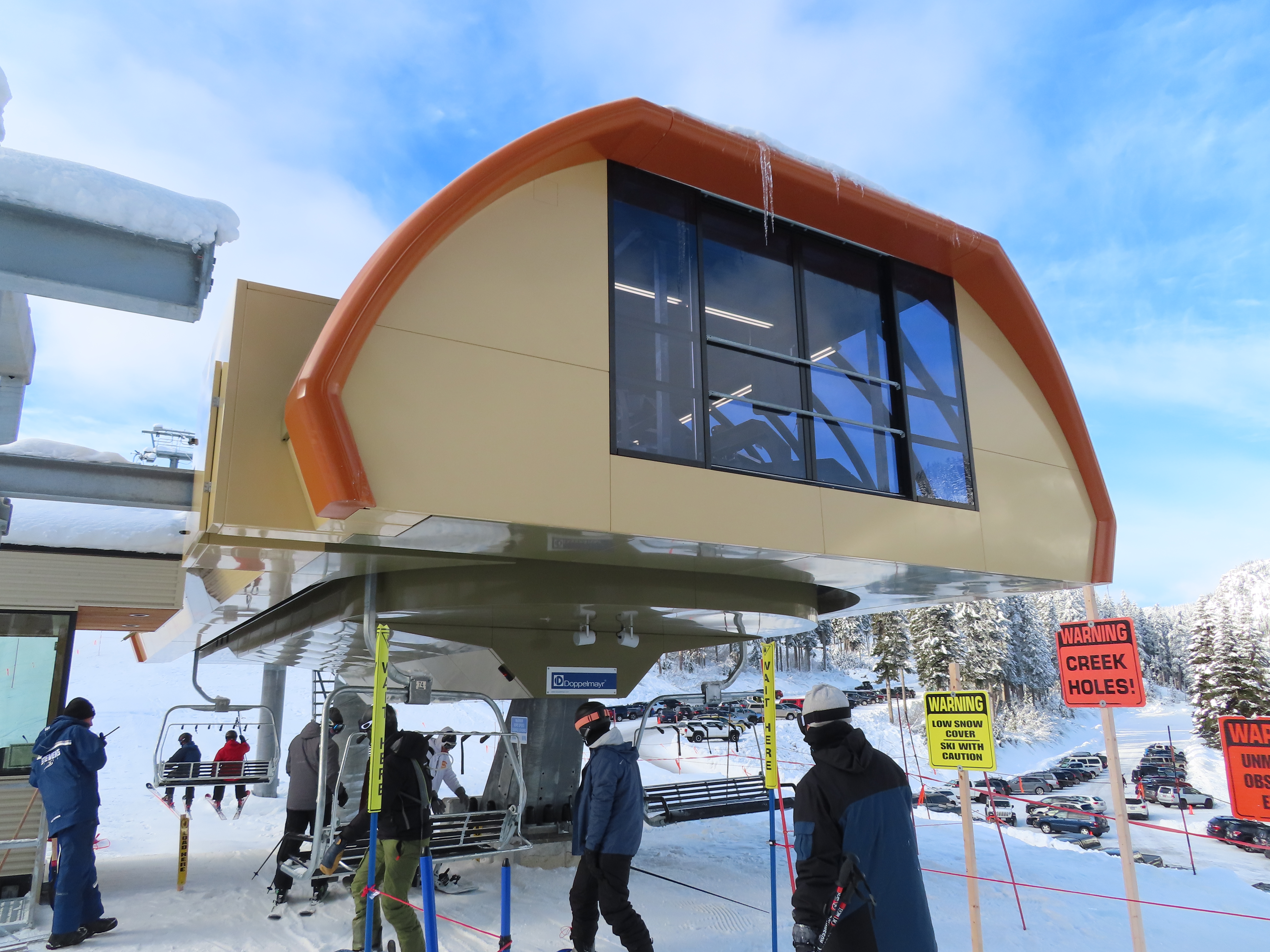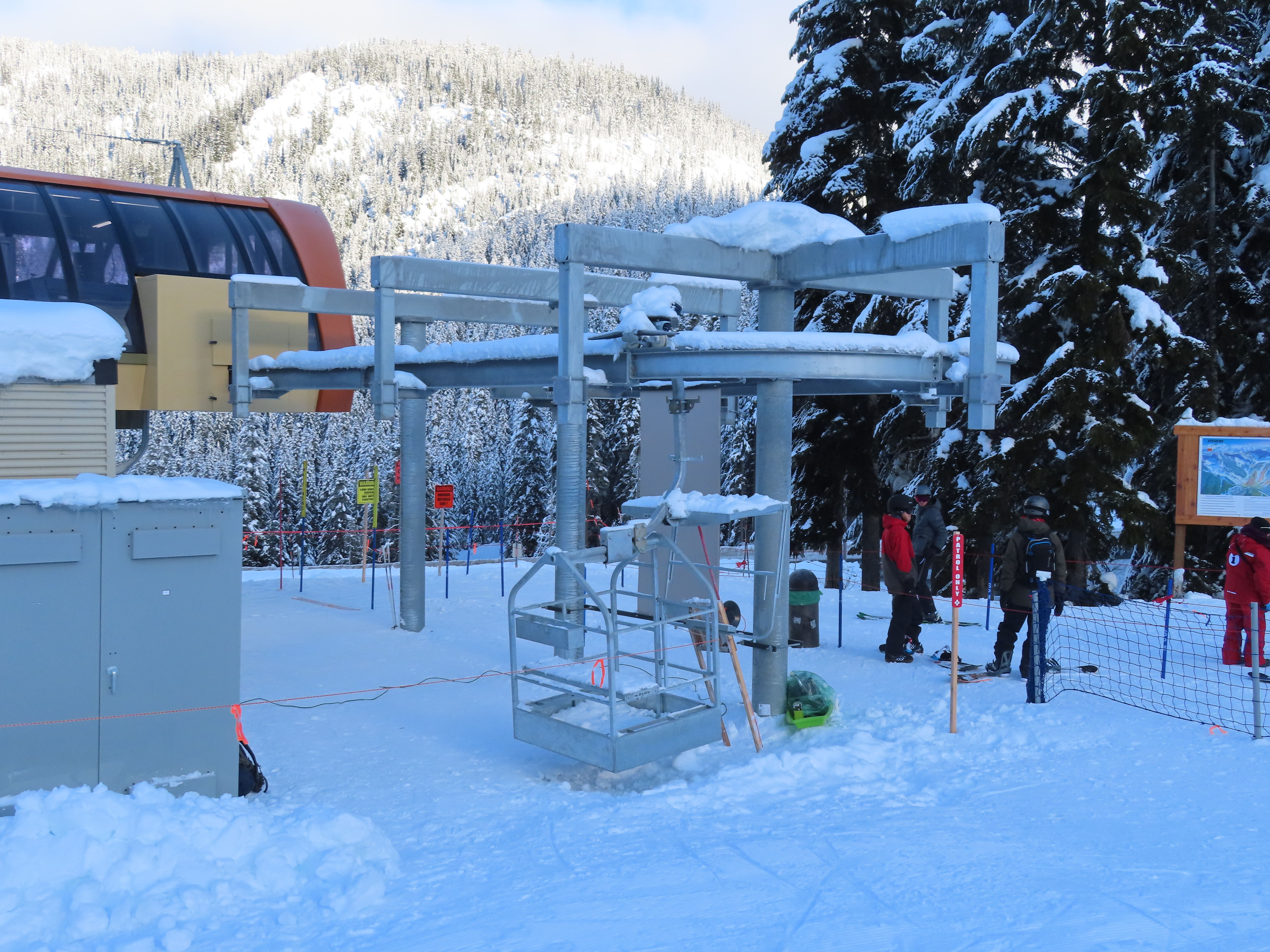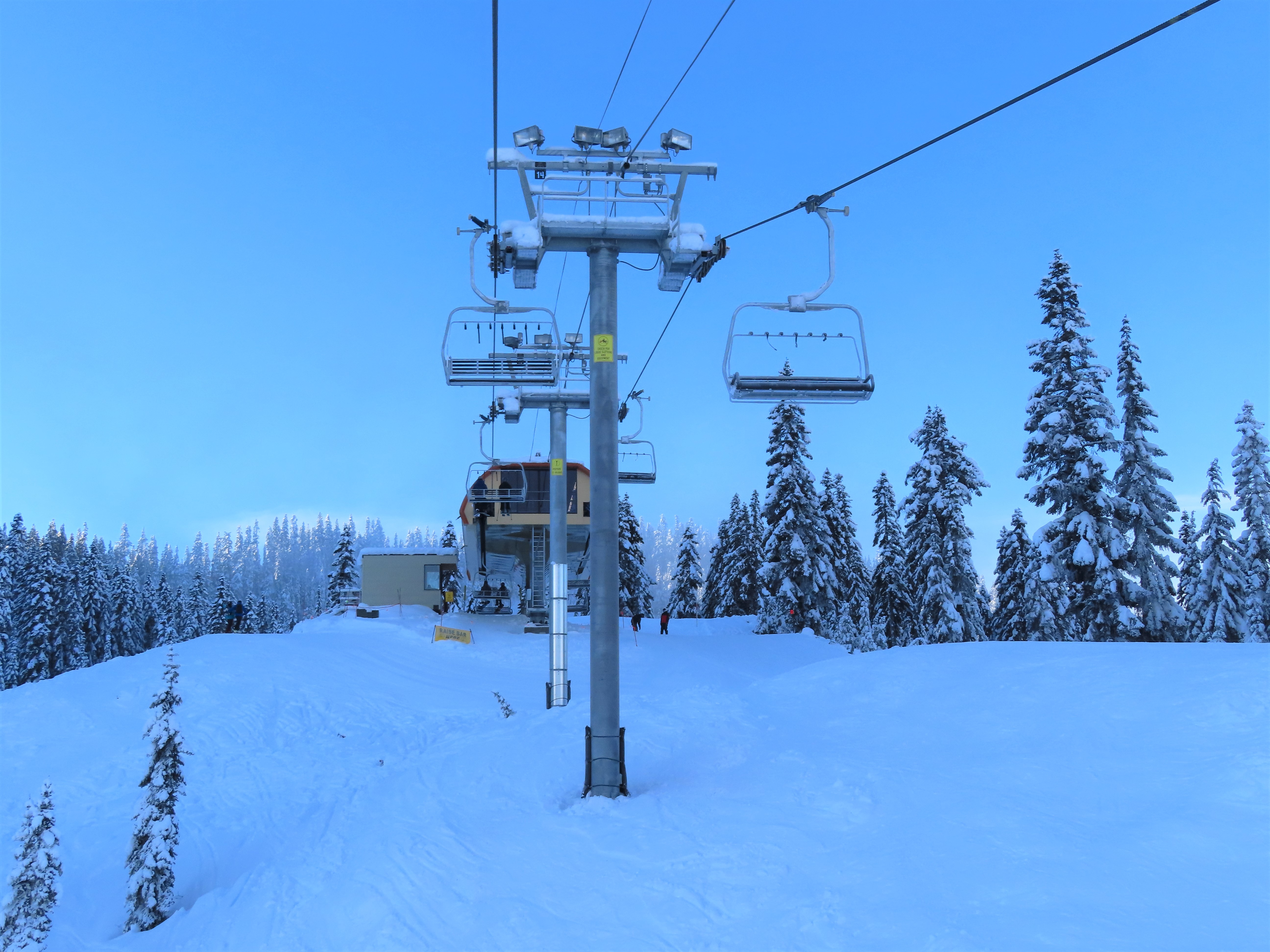 The Brooks Express replaced a Riblet double in 2019.The top terminal is longer than the bottom and houses the tensioning system.Top return terminal.Downhill end of the top station.View down the lift line.Looking up the line.Tower 9.The alignment has lots of ups and down.The top terminal seen from Skyline.Side view of the top station.Unique sheave configuration.Breakover towers.Small maintenance rail at the bottom.Riding up at tower 3.Middle lift line.Looking back at tower 6.Riding up the middle part of the line.The final two towers.Arriving at the return.View from the summit.Tower 13.Lower part of the line.The bottom terminal.Loading area.Doppelmayr Connect controls.As part of the Brooks Express construction, the Skyline Express was moved uphill.Riding out of the base area.A chair with wind slats and no footrests.Combo assemblies.Tower 6.Tower 15 with UV guards.Depression tower 8.Lower part of the lift line.Side view of an eight sheave combination assembly.The bottom station.Drive station.Lower terminal next to Skyline and Hogsback.