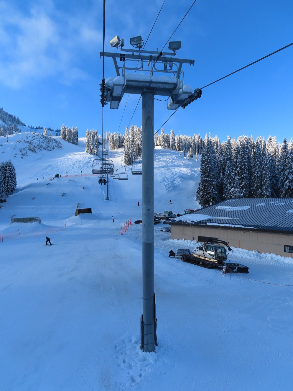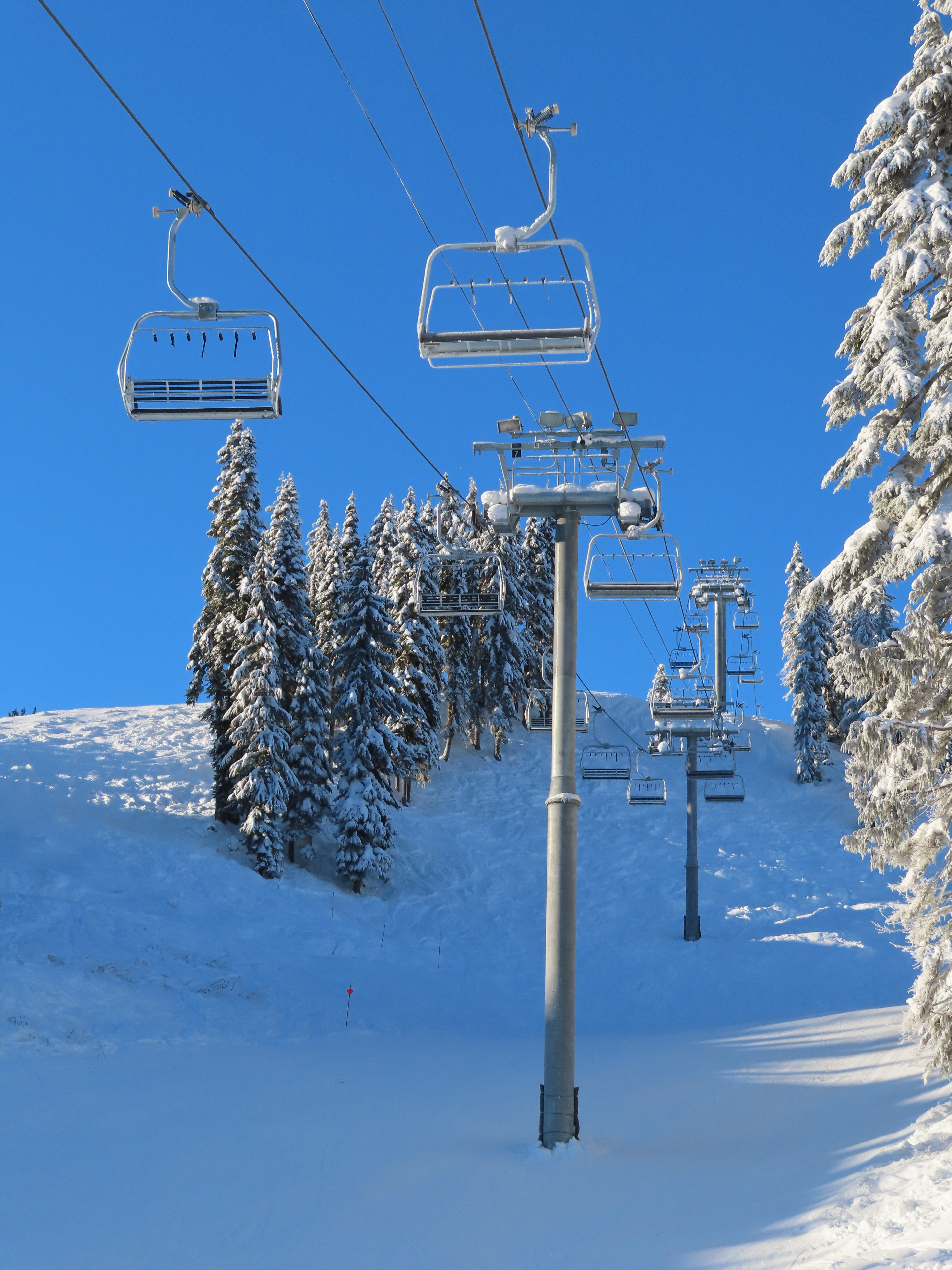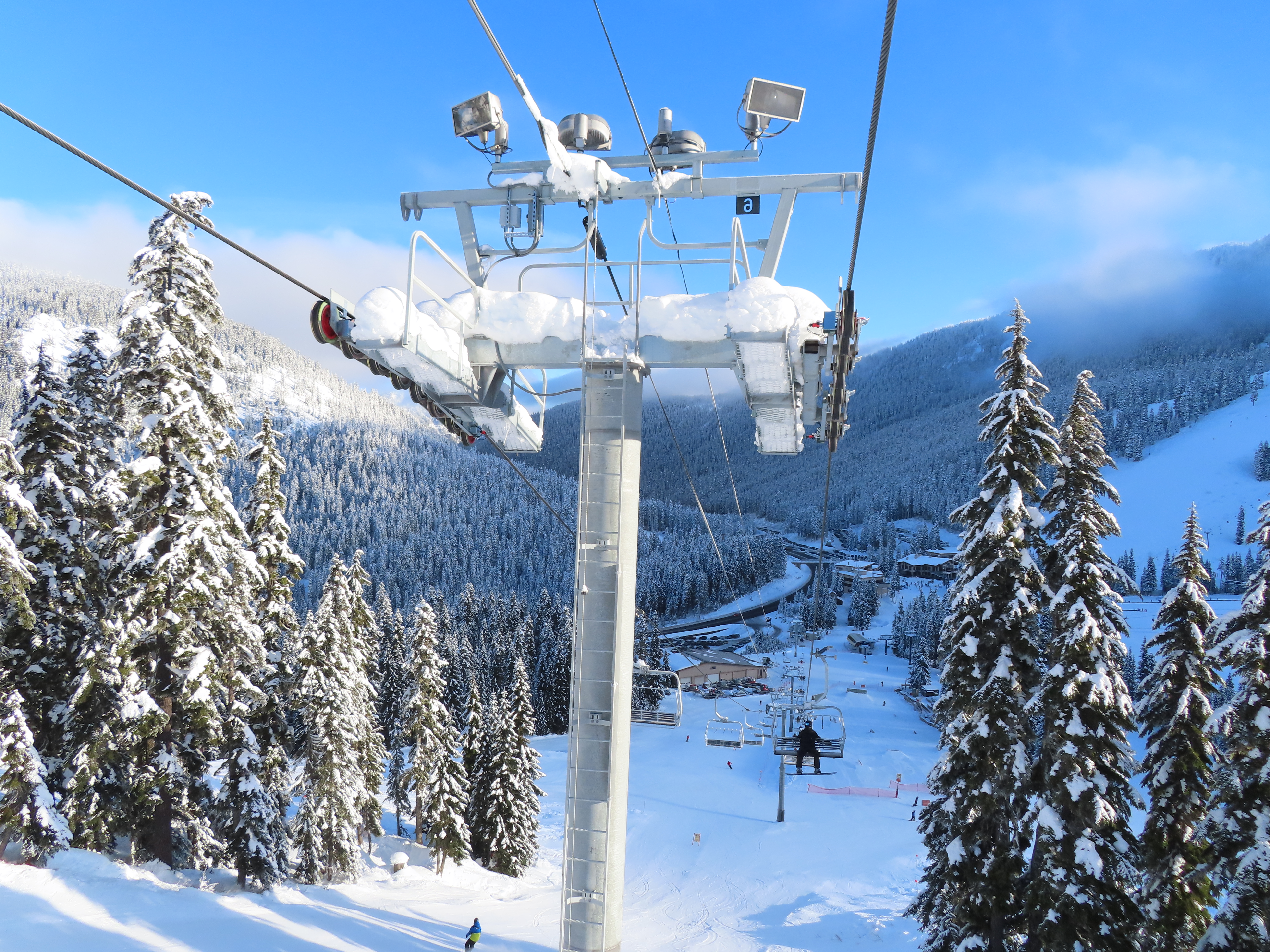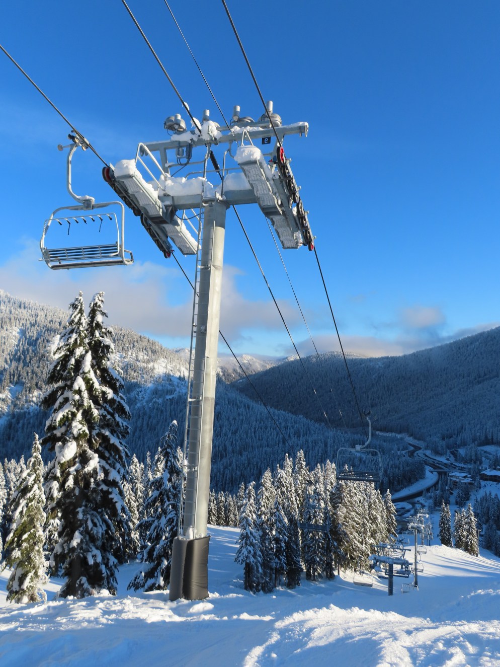 Somehow, this lift has the most interesting profile of the three base area high speed quads, seeing as a third of its towers are made of combi and hold-down towers.