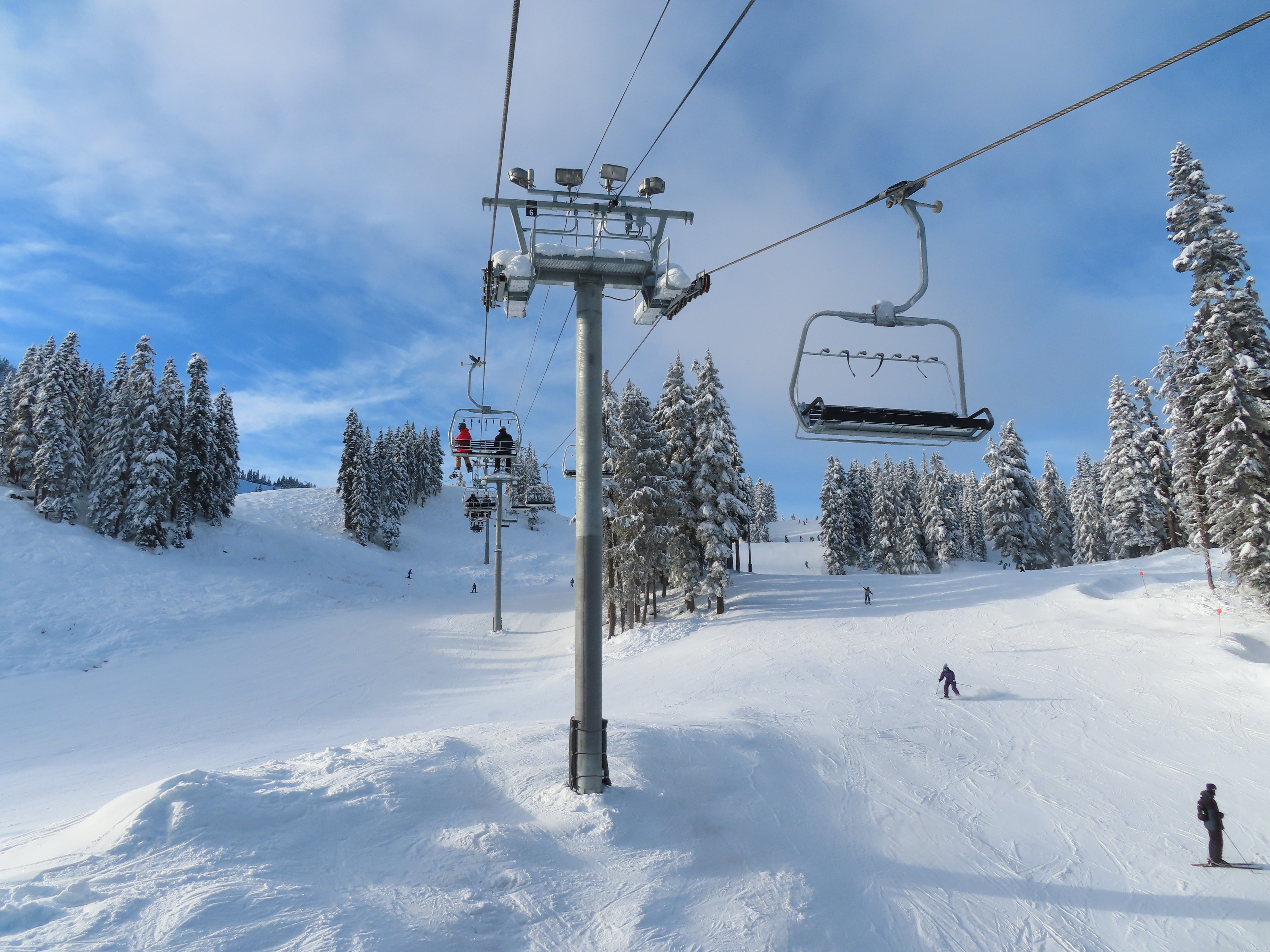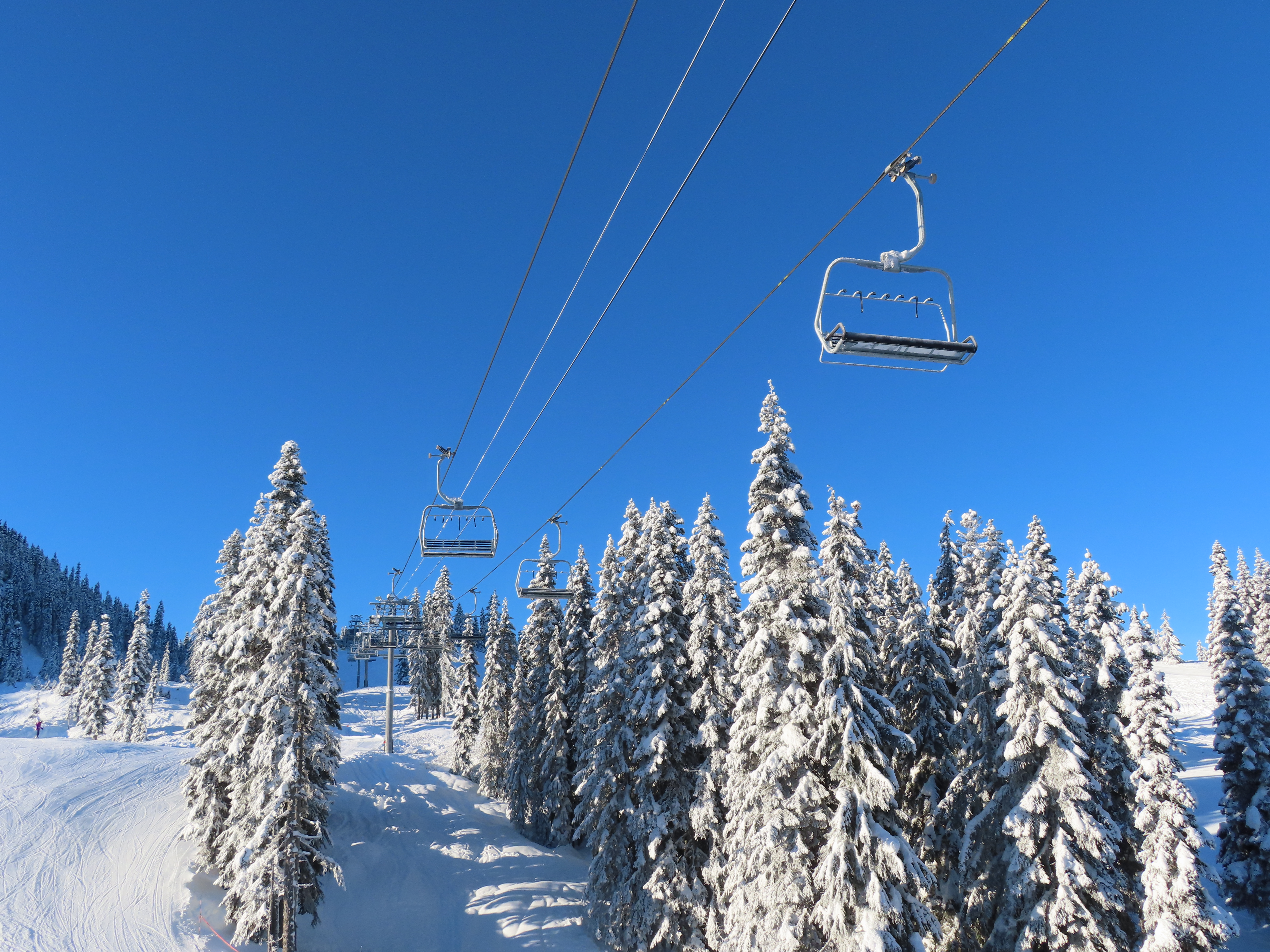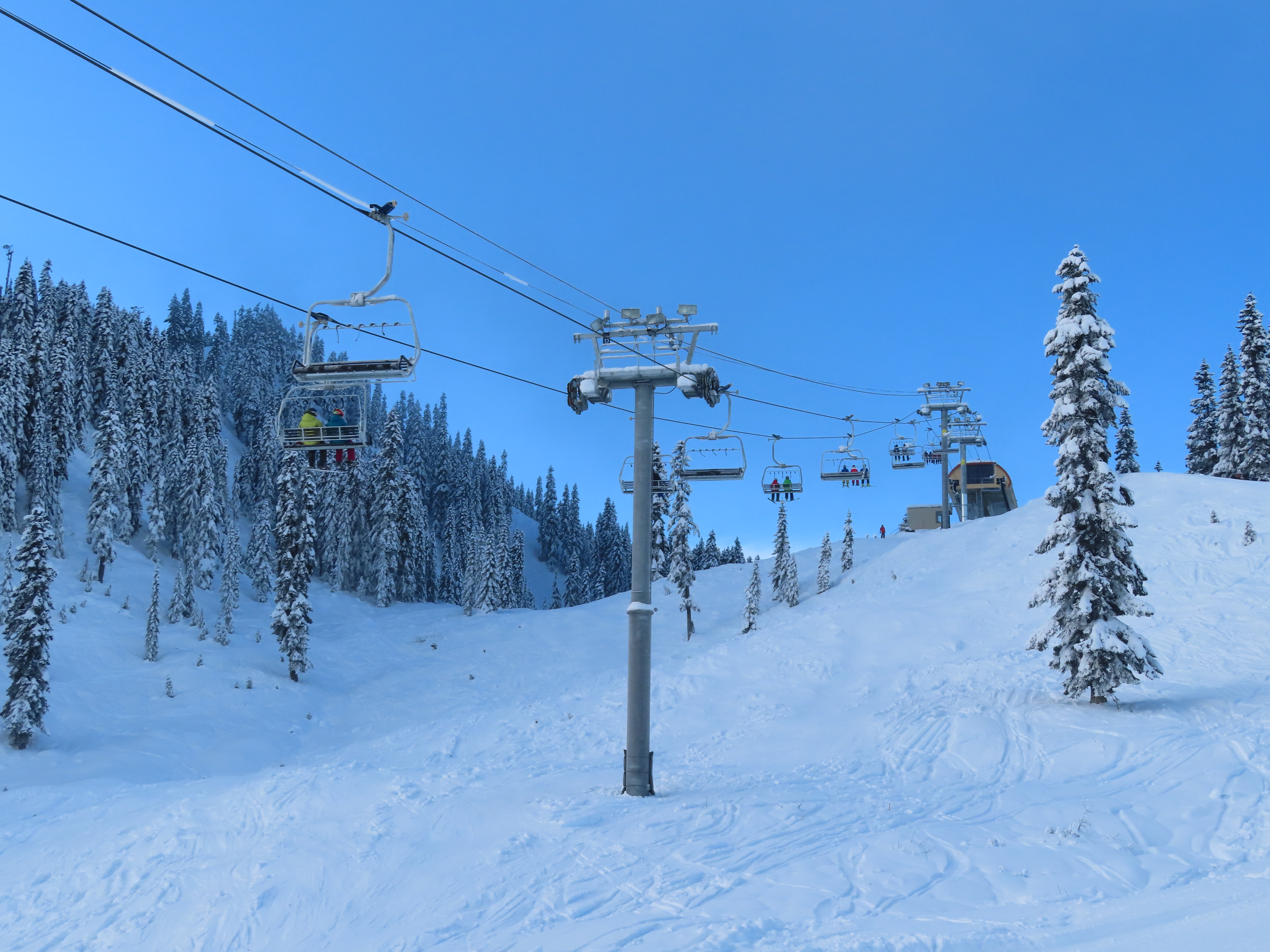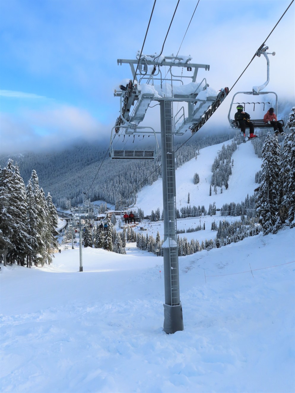 Somehow, this lift has the most interesting profile of the three base area high speed quads, seeing as a third of its towers are made of combi and hold-down towers.
