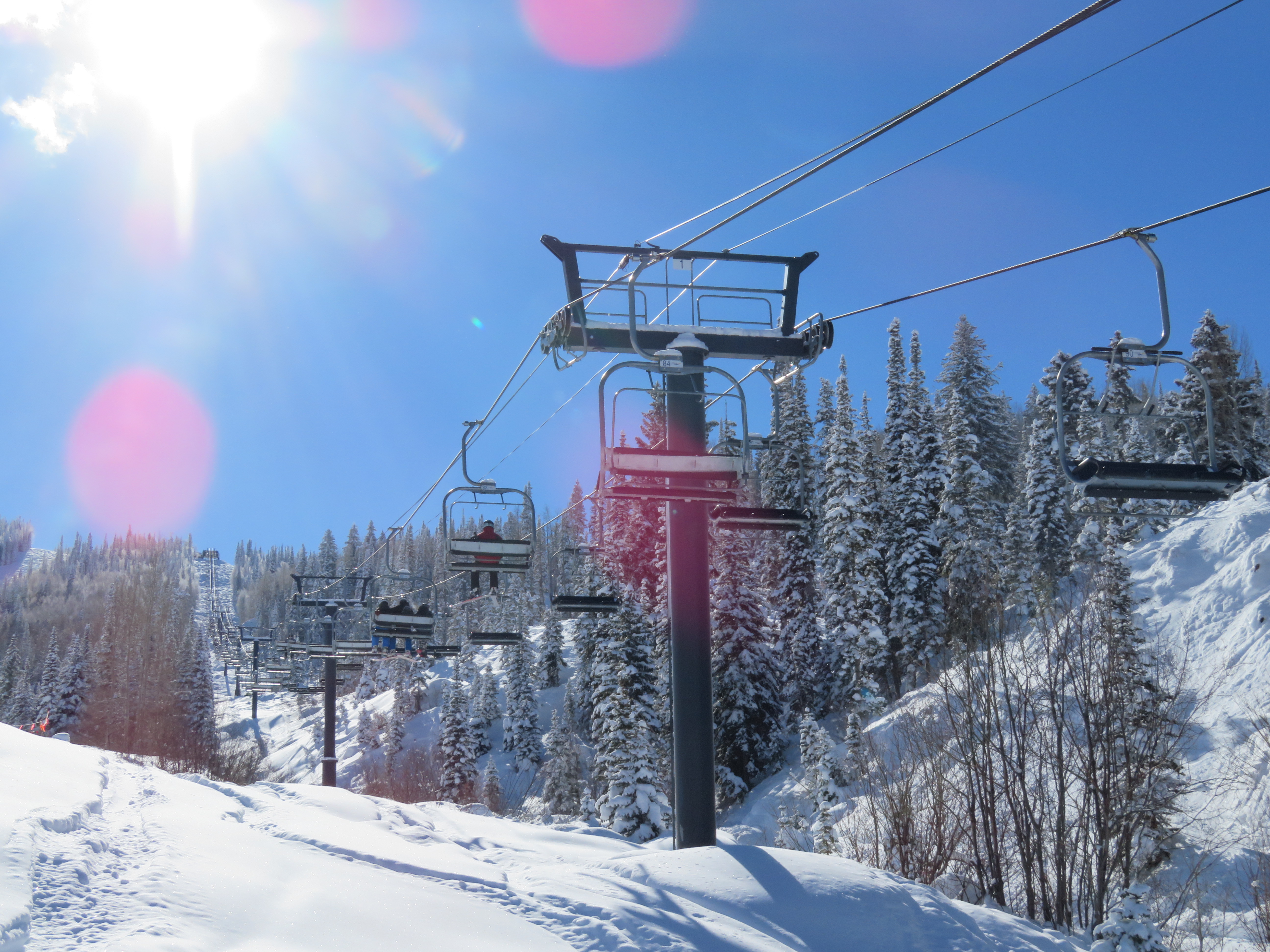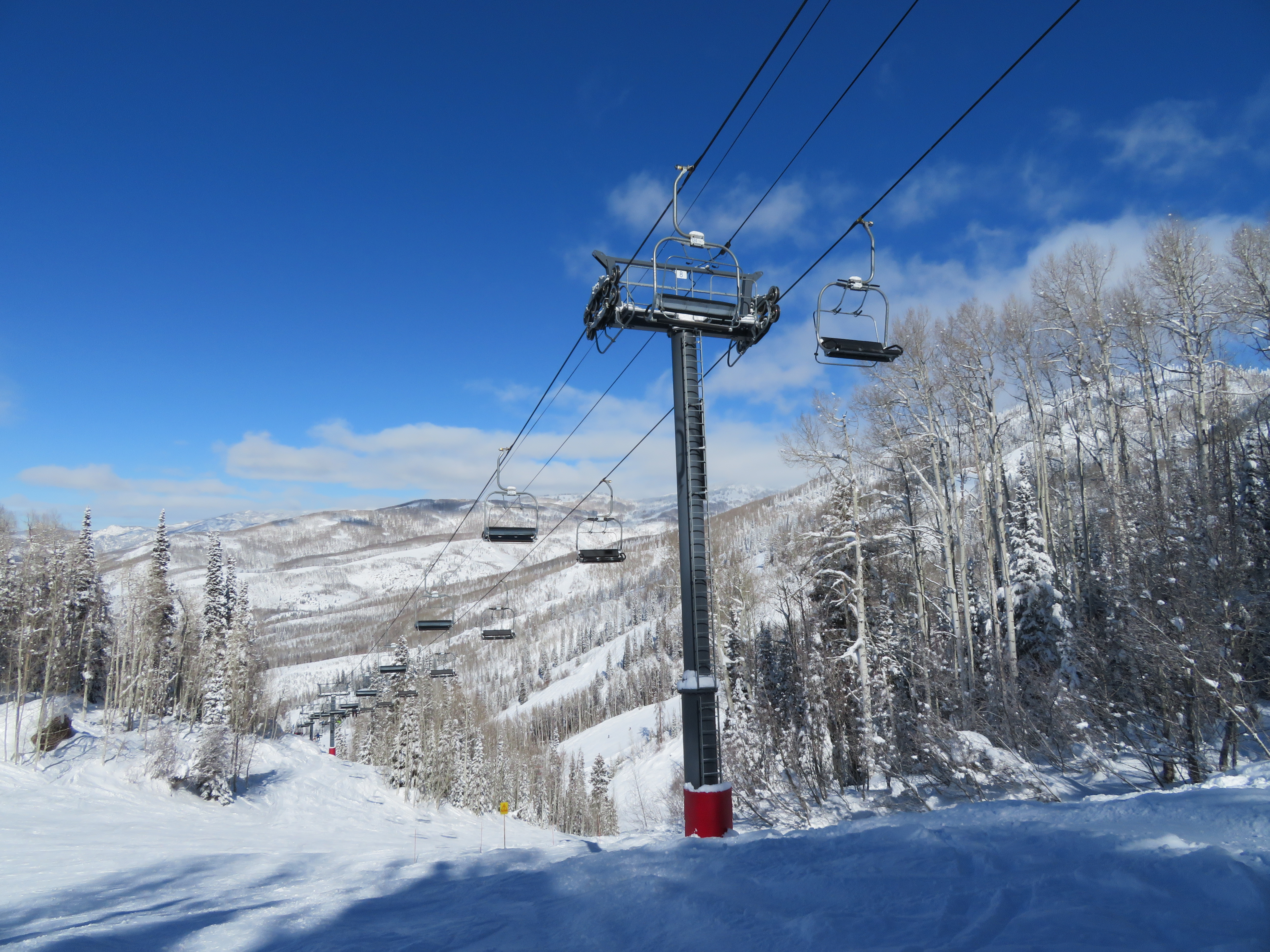 By 2004 ASC did the same thing at the Canyons, installing long new fixed grips when their competitors would have gone detachable for this long of a line. However despite big lines at Storm Peak and medium lines at Four Points this was empty all three days I was up there.