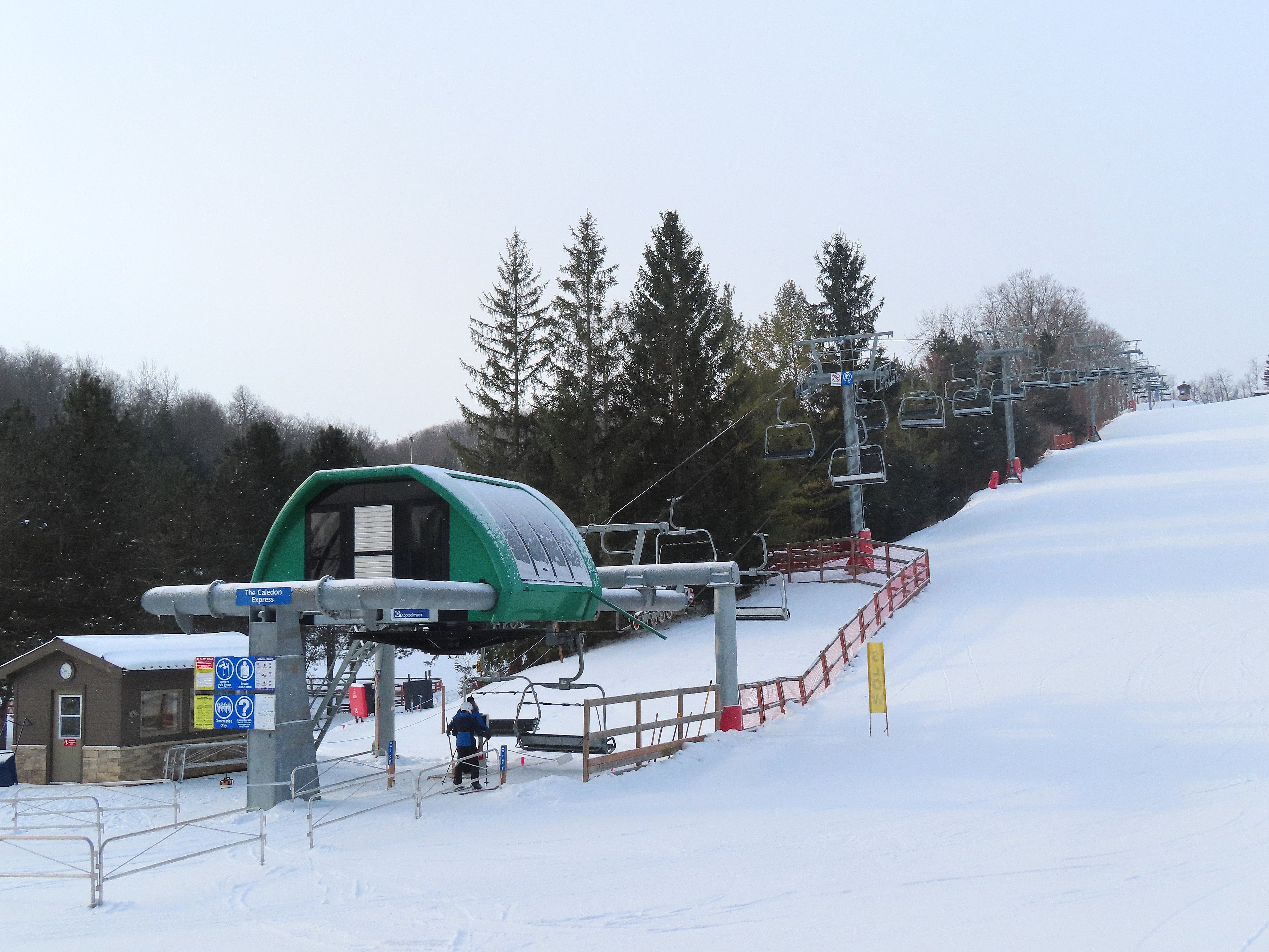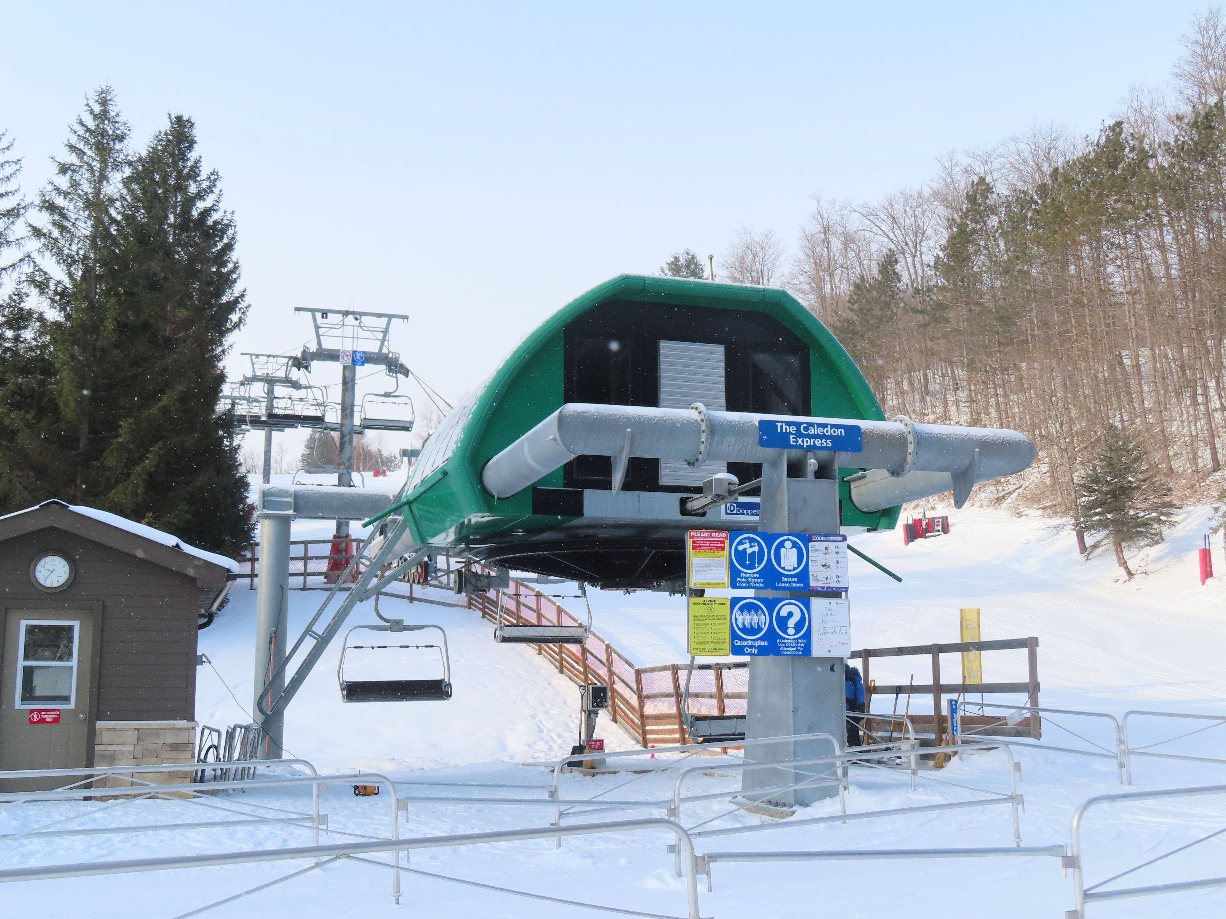 This lift debuted in 2016 and replaced a BM Lifts triple.Loading area and motor room.The lift services a beginner slope near the main lodge.Upper station along a ridge line.View from the summit.Lower half of the line.Upper lift line.The bottom terminal seen from above.Lift overview.View riding out of the bottom terminal.