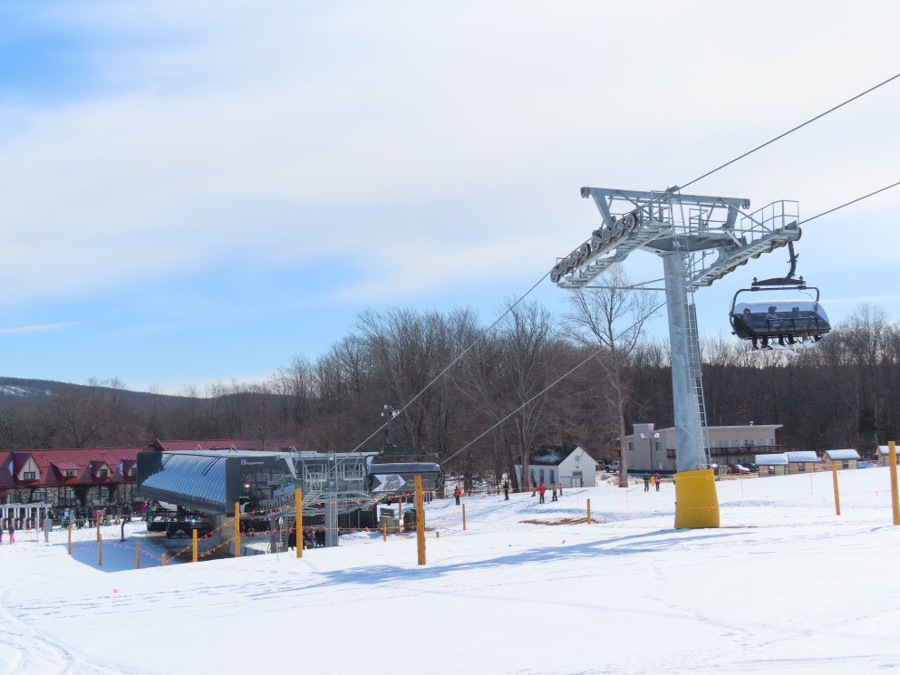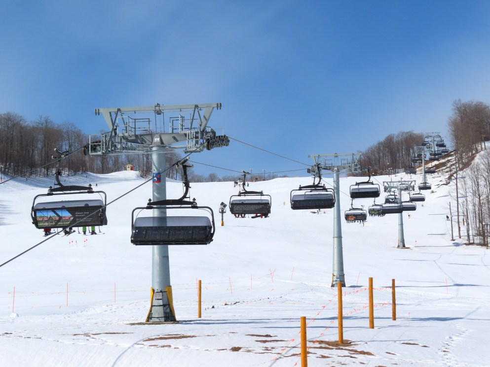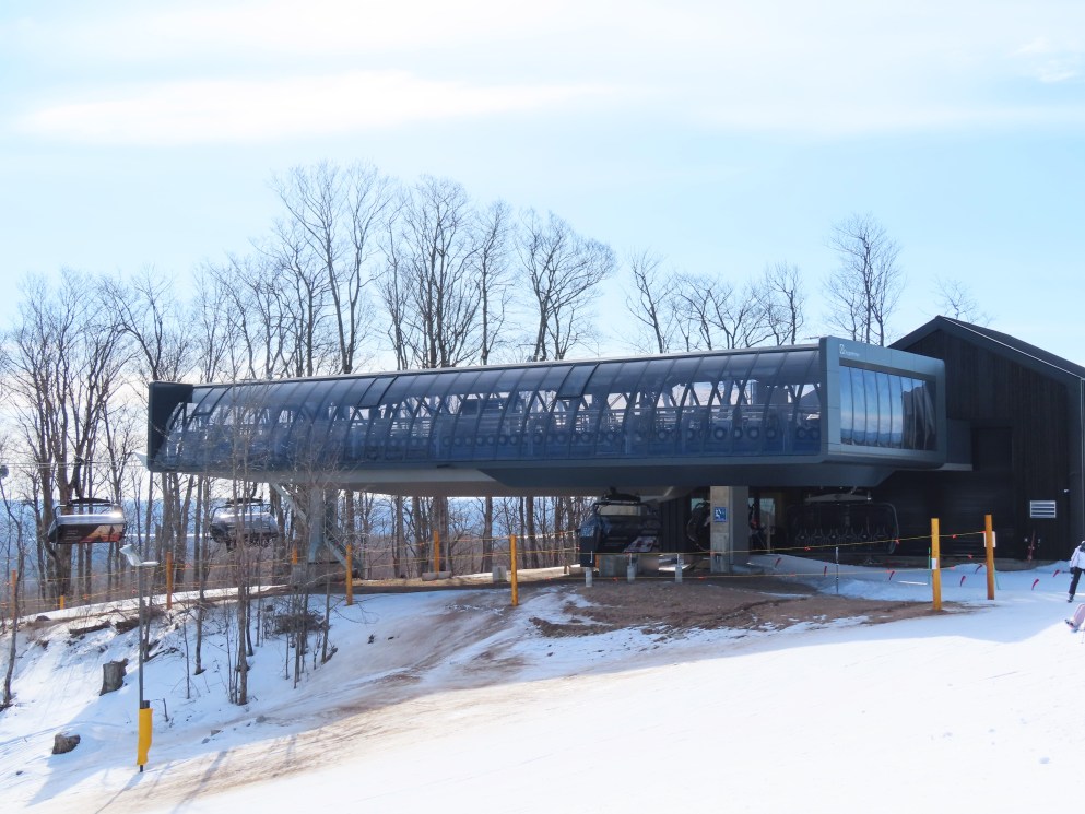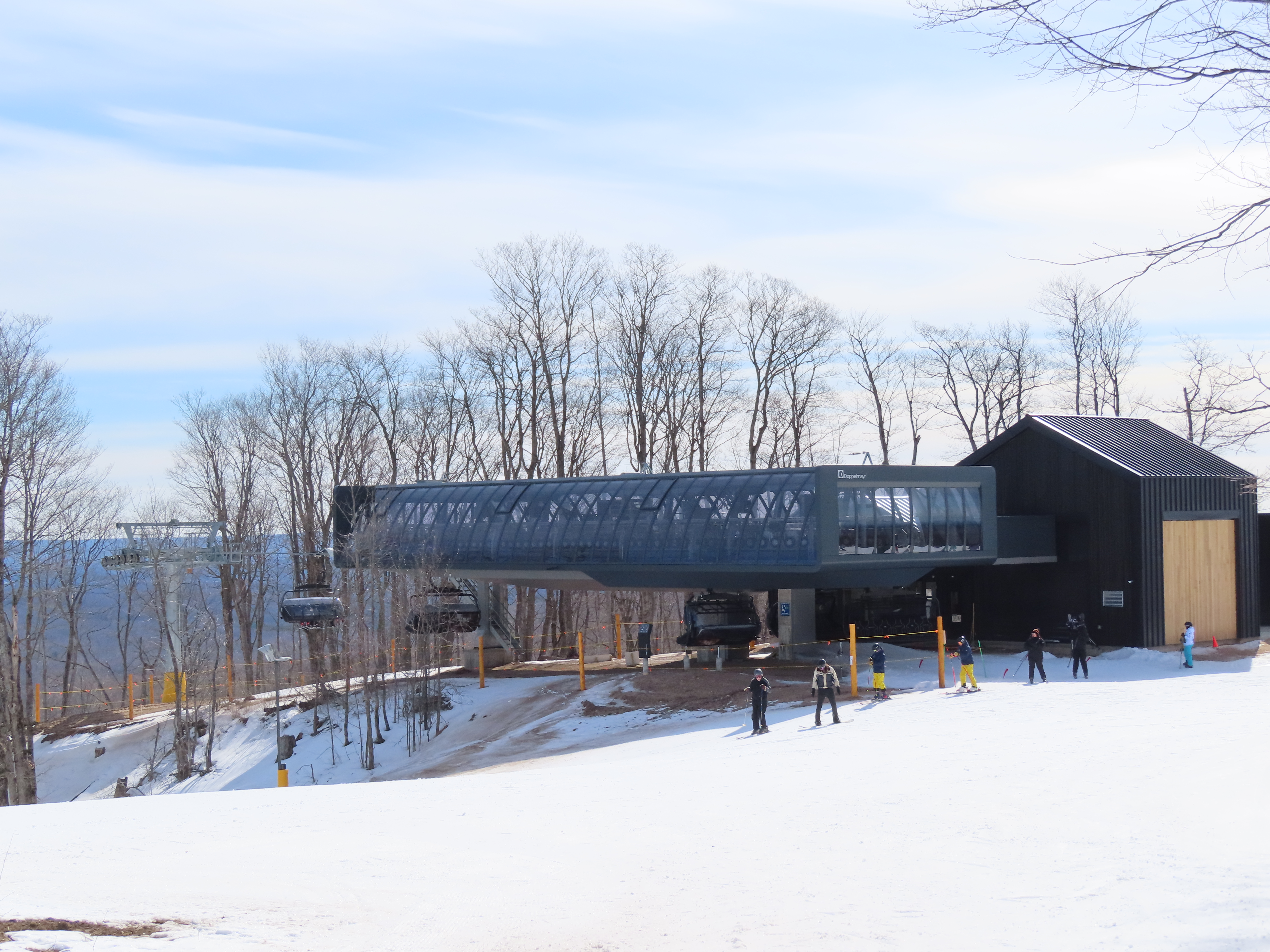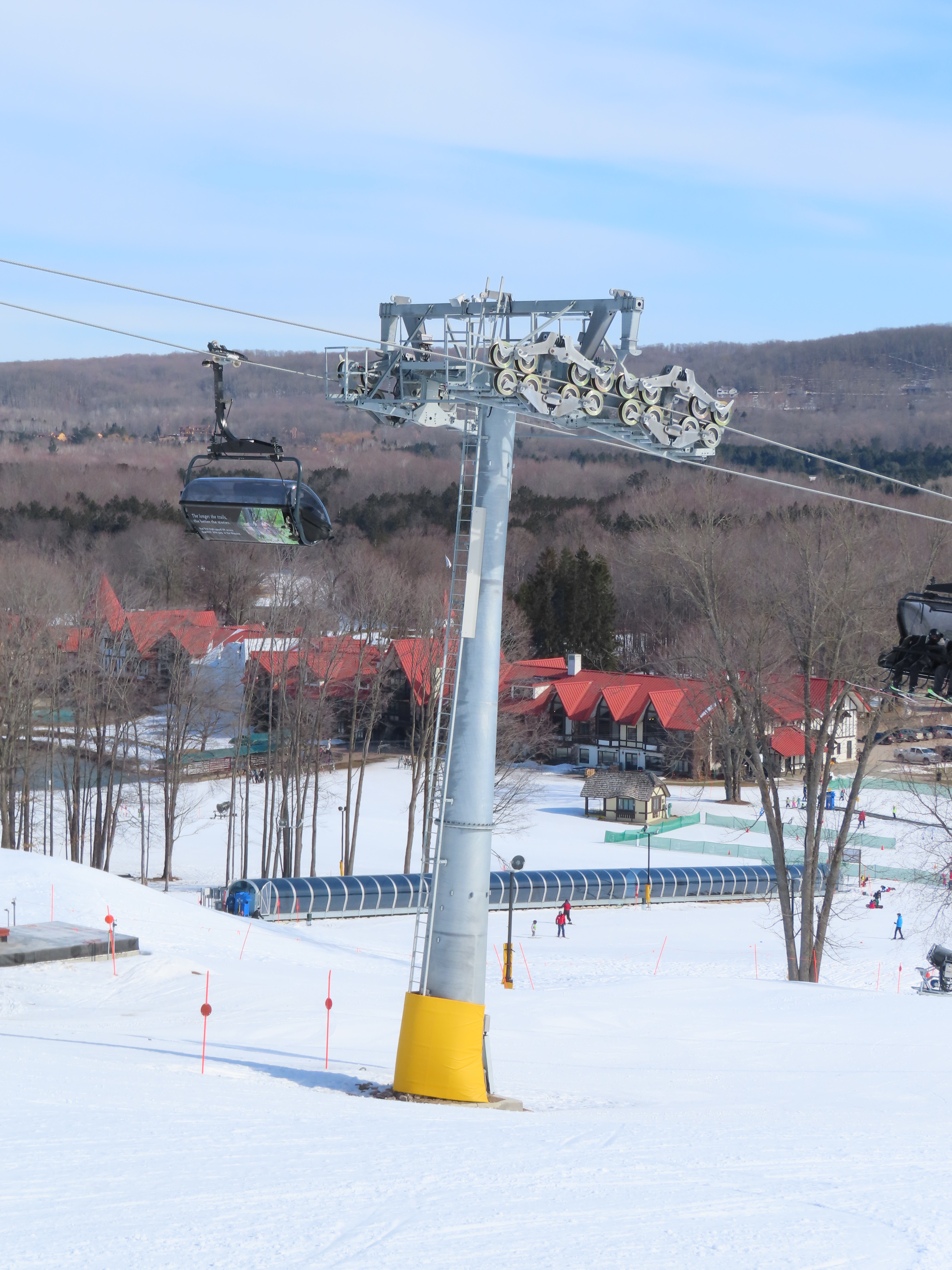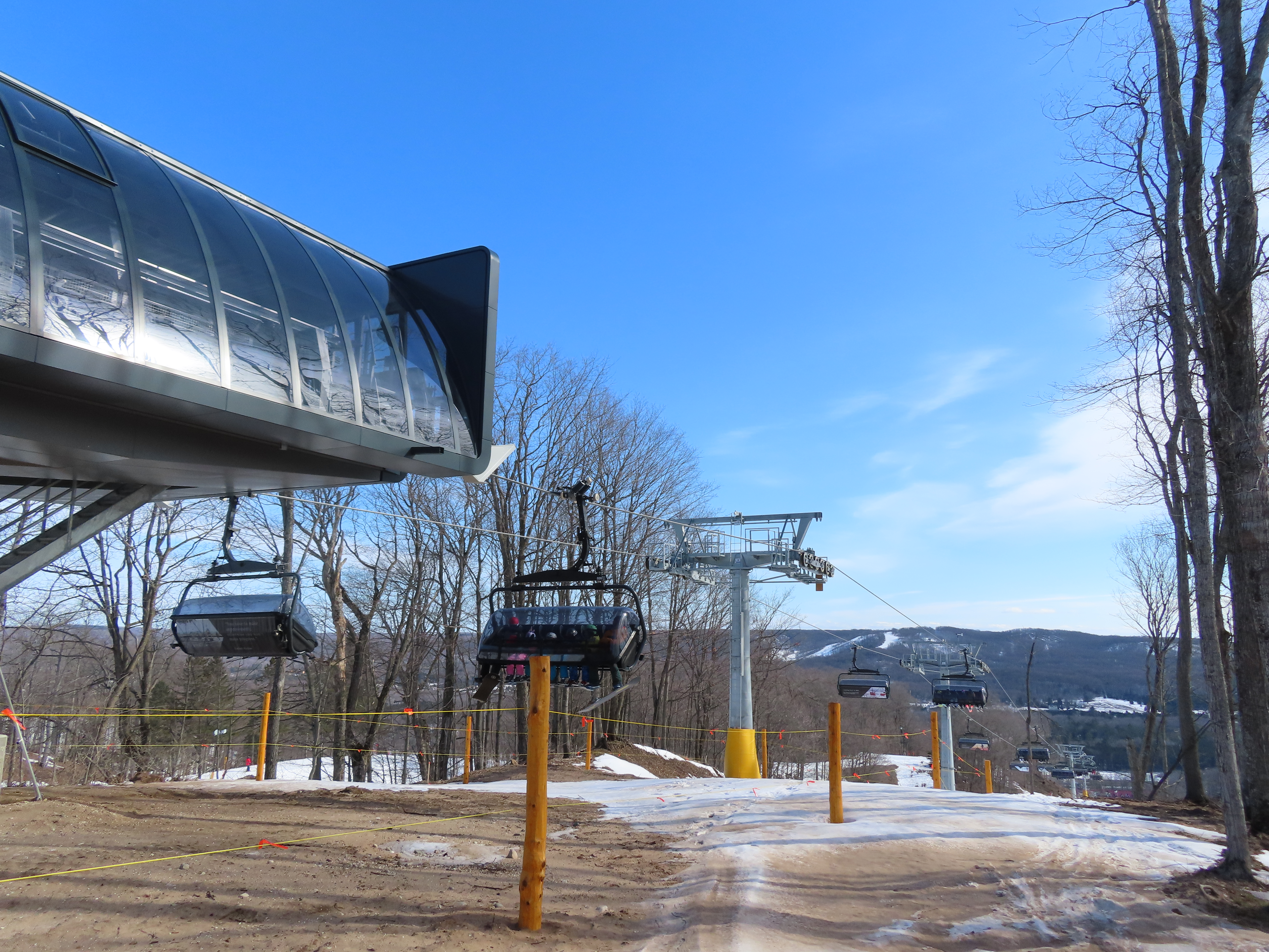 This Doppelmayr six place replaced three Riblet chairlifts on the south side of The Highlands in 2023.Extremely long bottom terminal for chair parking and bubble opening/closing.Turnaround at the bottom terminal.Six place chair with heated seats.Doppelmayr name plate.The back of a chair at the unload.Upper station with attached maintenance building.Drive terminal up top.The lower part of the lift line is a golf course in the summer season.Tower 3.Lower station and tower 1.Chair acceleration zone.Loading conveyor with gates.In-terminal LED screen.View riding up the line.Tower 4.T5.Nearing the summit.Arriving at the summit, which is near the older Heather Express.Unloading area with auto raising restraint bar.View from the top.Side view of the upper station.View down at tower 7.Work chair.Side view of a support tower.Large combination assemblies.Middle section of the lift line.T2.Lift overview.View up at tower 2.Closed bubble chair.View back down the line.Tower 9.Upper station turnaround.Another view of the upper lift line.Looking down the line.Upper station overview.