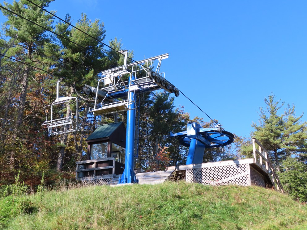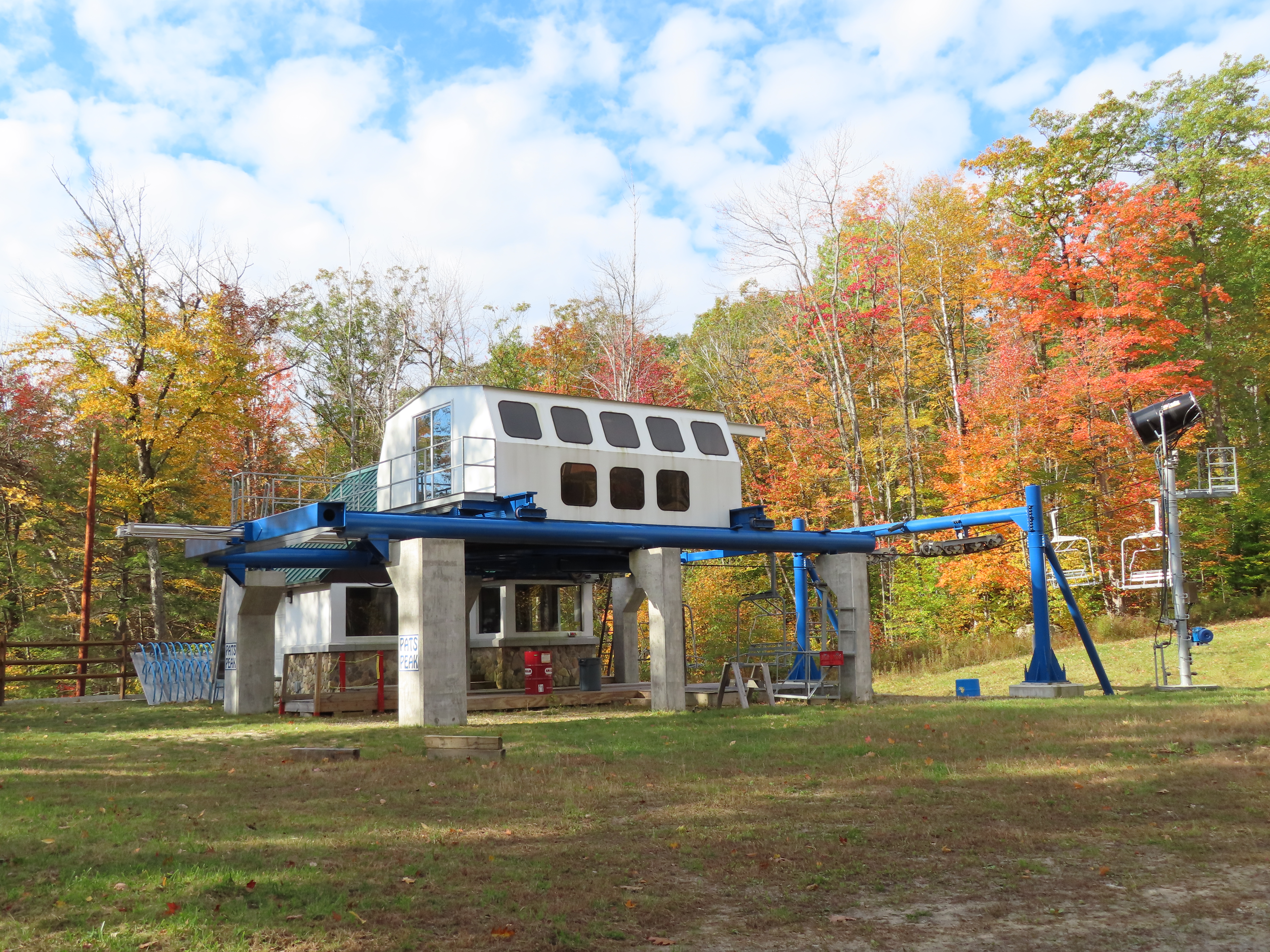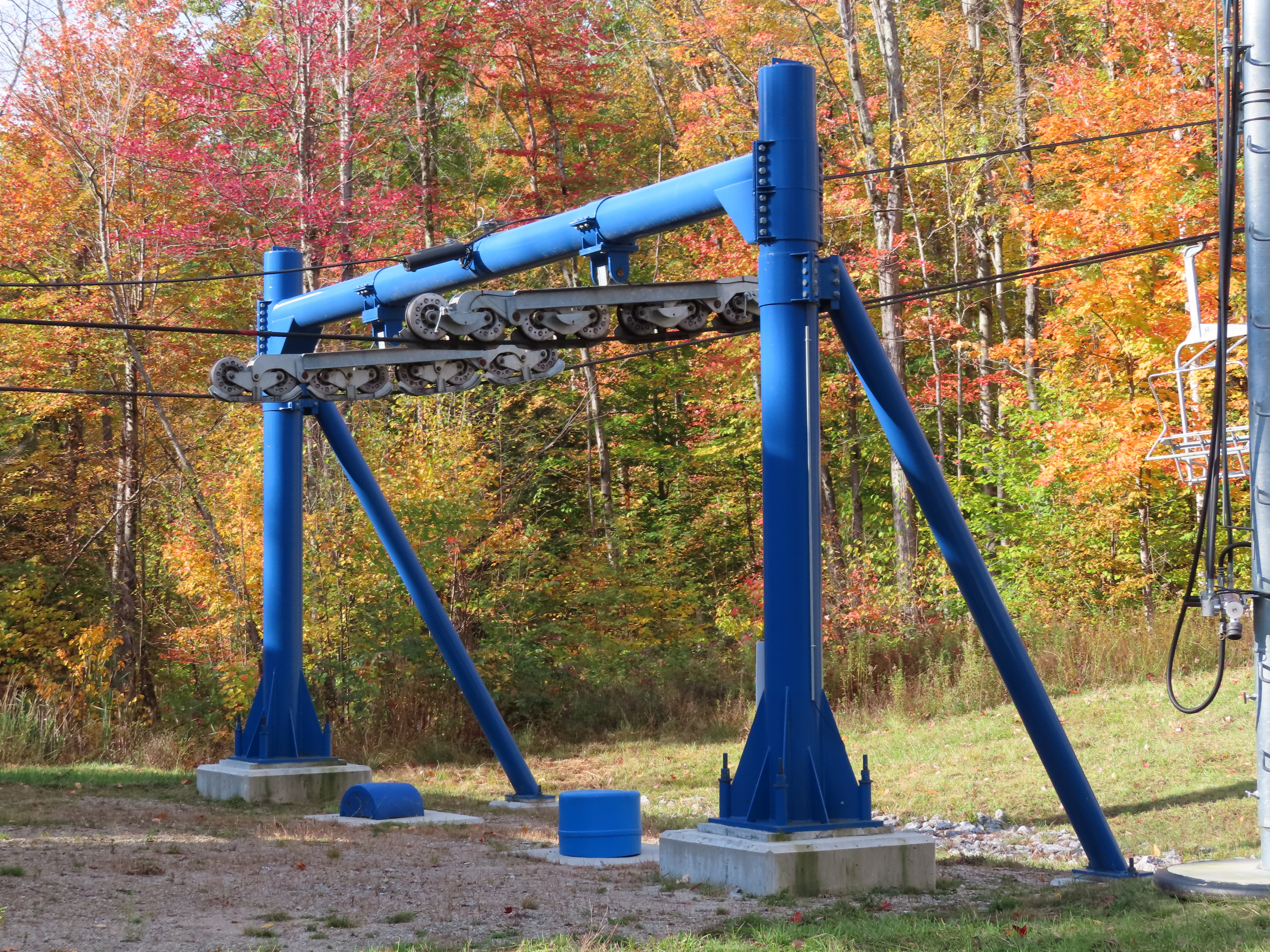 Originally a 1986 Von Roll-Habegger Triple called Exhibition at Osler Bluff Ski Club, Ontario. Hydraulic tensioning added by Skytrac upon installation at Pat’s Peak, as was the motor room by Partek.