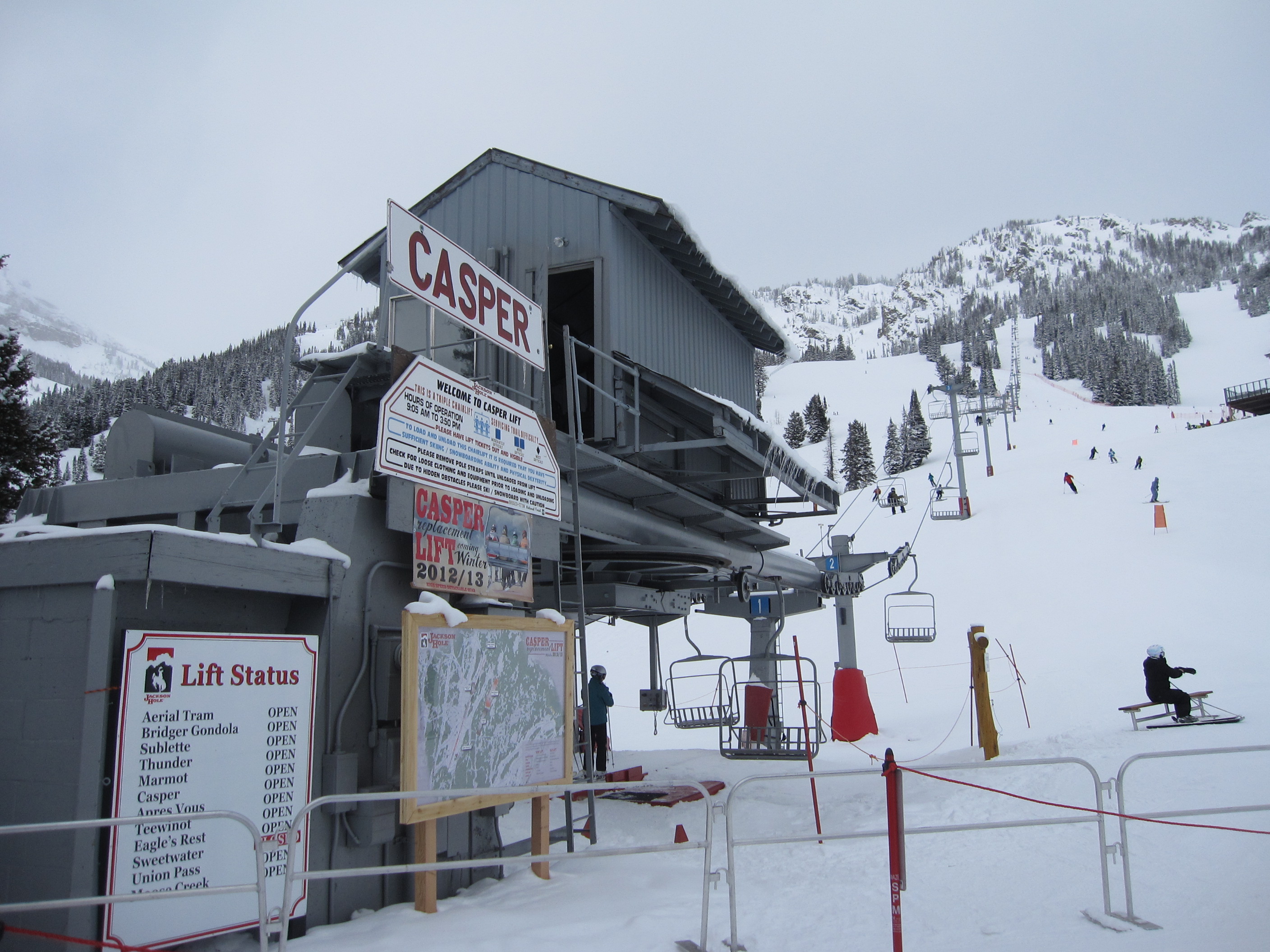 Casper Bowl – Jackson Hole, WY View up the line. Bottom terminal and tower 1. Tower 14 near the top. Top station. Fixed return bullwheel. Lower lift line. Base station. Drive terminal and lift line. Top terminal. The lift line. View back down line. Share this: Email a link to a friend (Opens in new window) Email Share on X (Opens in new window) X Share on Facebook (Opens in new window) Facebook Like Loading...