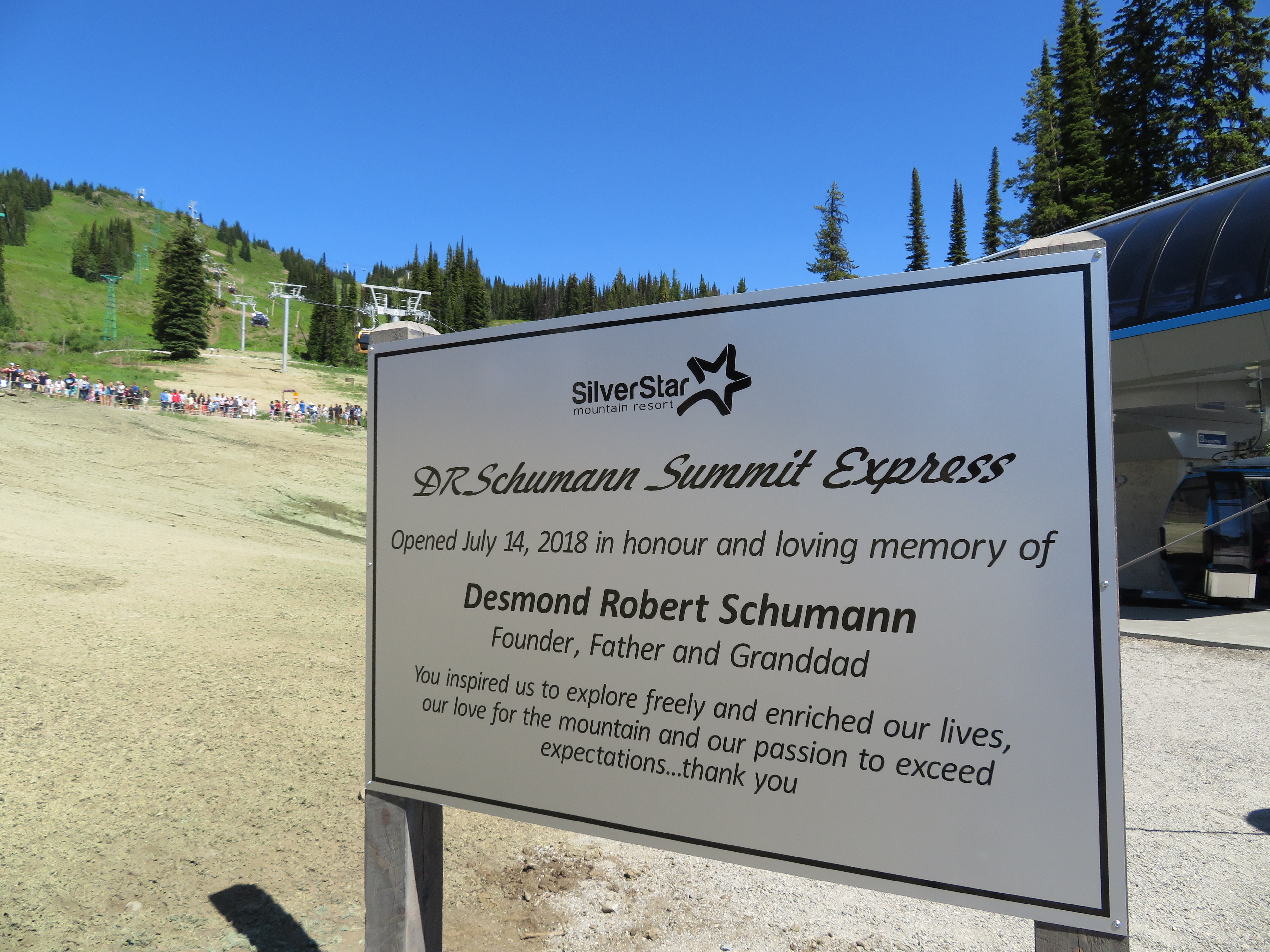The new flagship lift is named after the late Desmond Schumann, an Australian visionary who came to grow both Big White and SilverStar into two of British Columbia’s top ski resorts. Daughter Jane Cann now presides over SilverStar and rode in the very first cabin, one painted silver in honor of the resort’s 60th anniversary (Jane’s brother, Peter Schumann, heads up nearby Big White, which is also building a new lift this summer). Doppelmayr’s Jim Anderson presented the customary Austrian-forged bell and spoke along with other dignitaries. They noted how far SilverStar has come from a local ski hill with one Poma lift and two rope tows into a significant regional and destination resort.