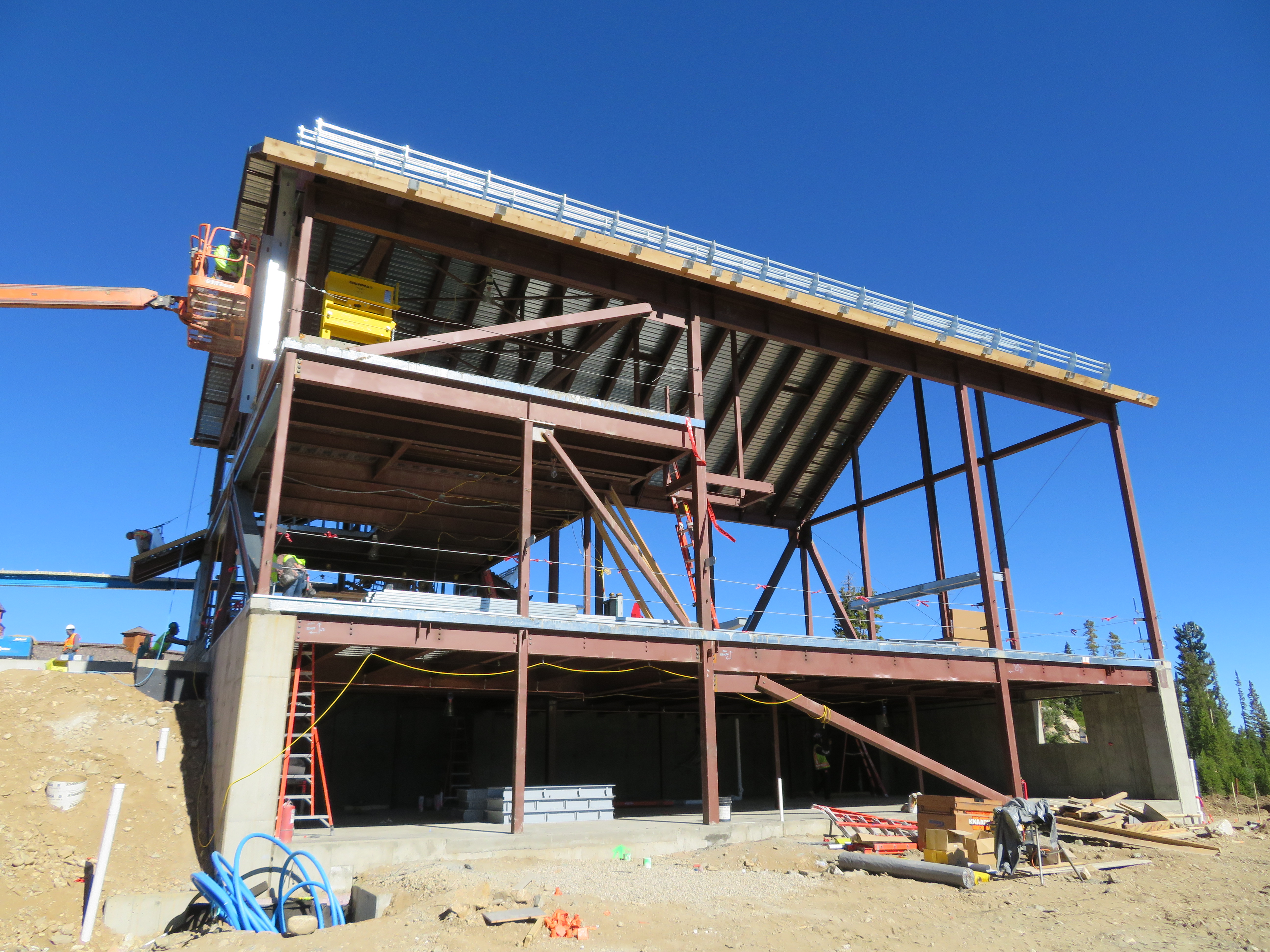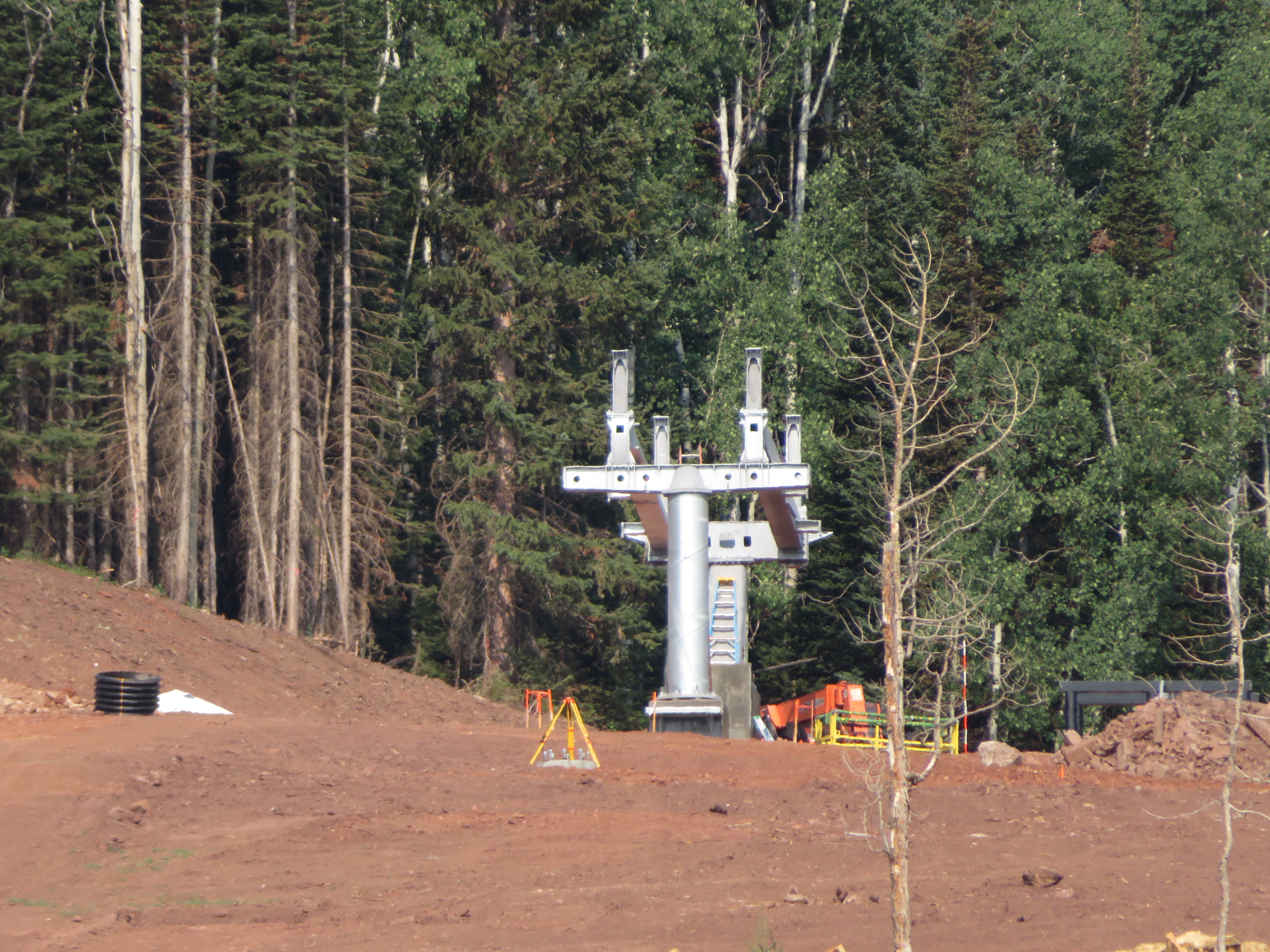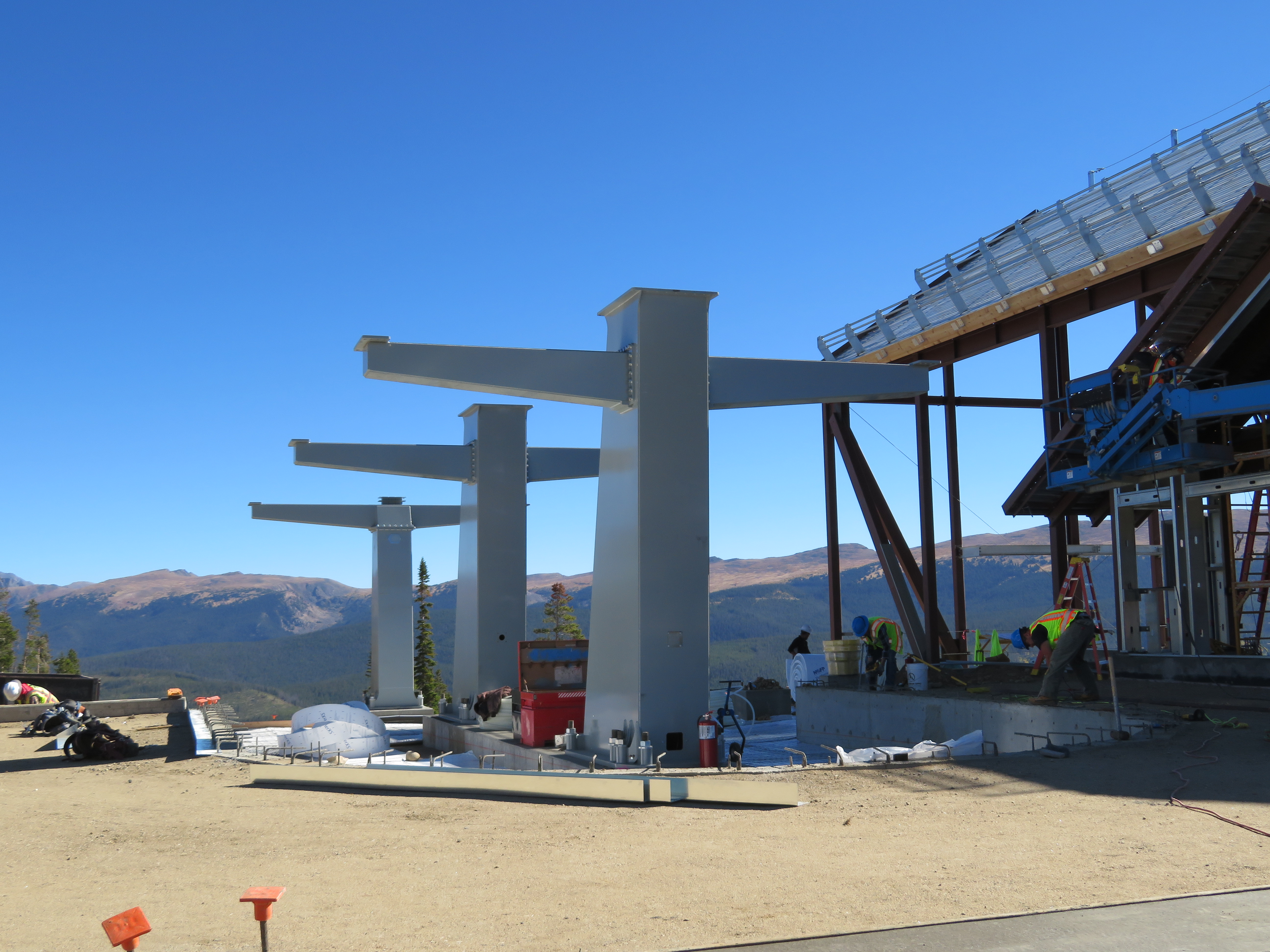 Before I get into a construction rundown, the video below shows a new Doppelmayr gondola in Turkey that appears to allow carriers to come to complete stops for loading and unloading while the haul rope keeps moving. In this installation, many of the carriers are buckets carrying ore that must be stopped to fill and dump while others carry workers and go through a standard turnaround. With double turnarounds at both ends, the setup appears to be similar to the six double loading stations going up at Walt Disney World.