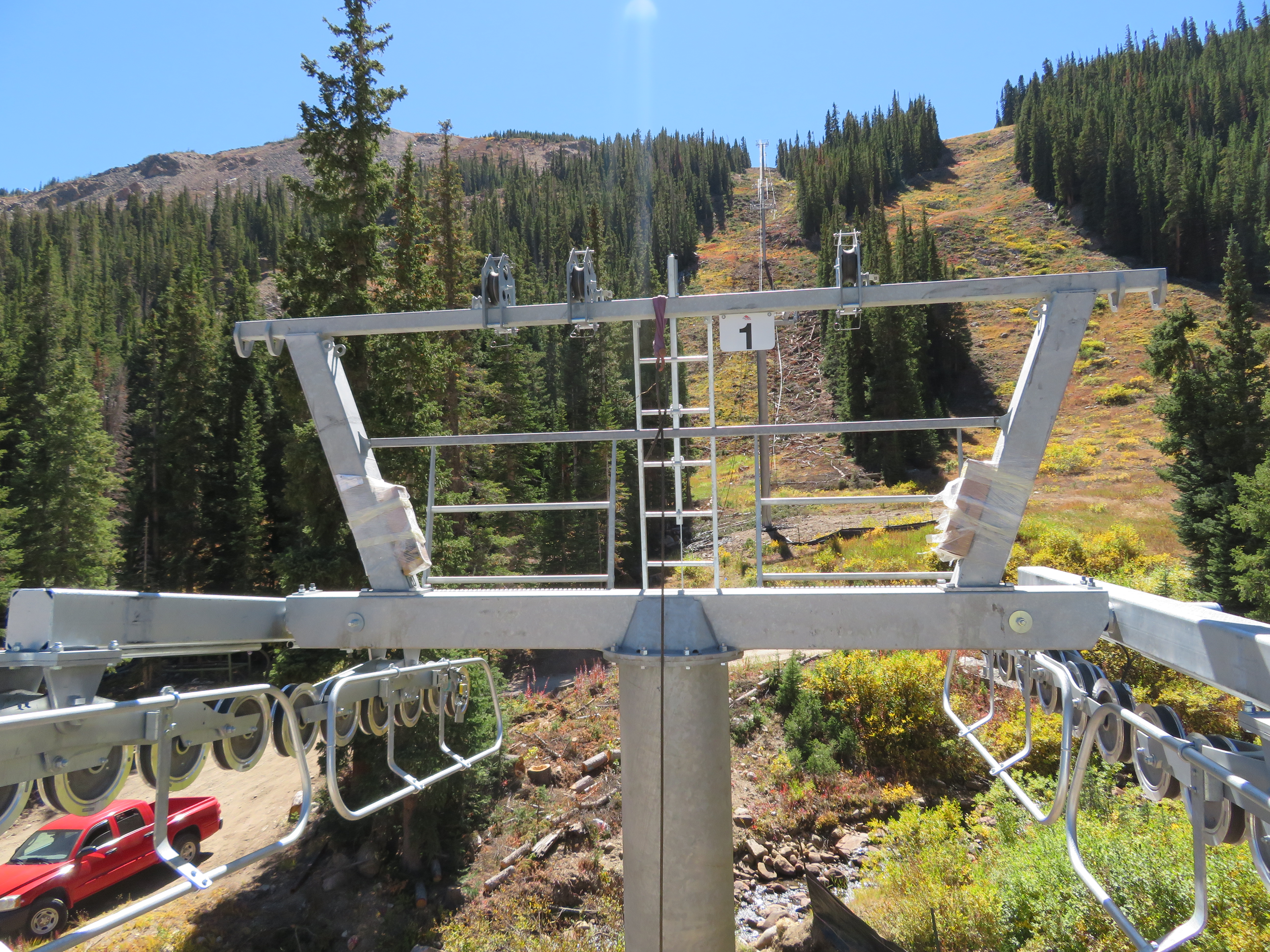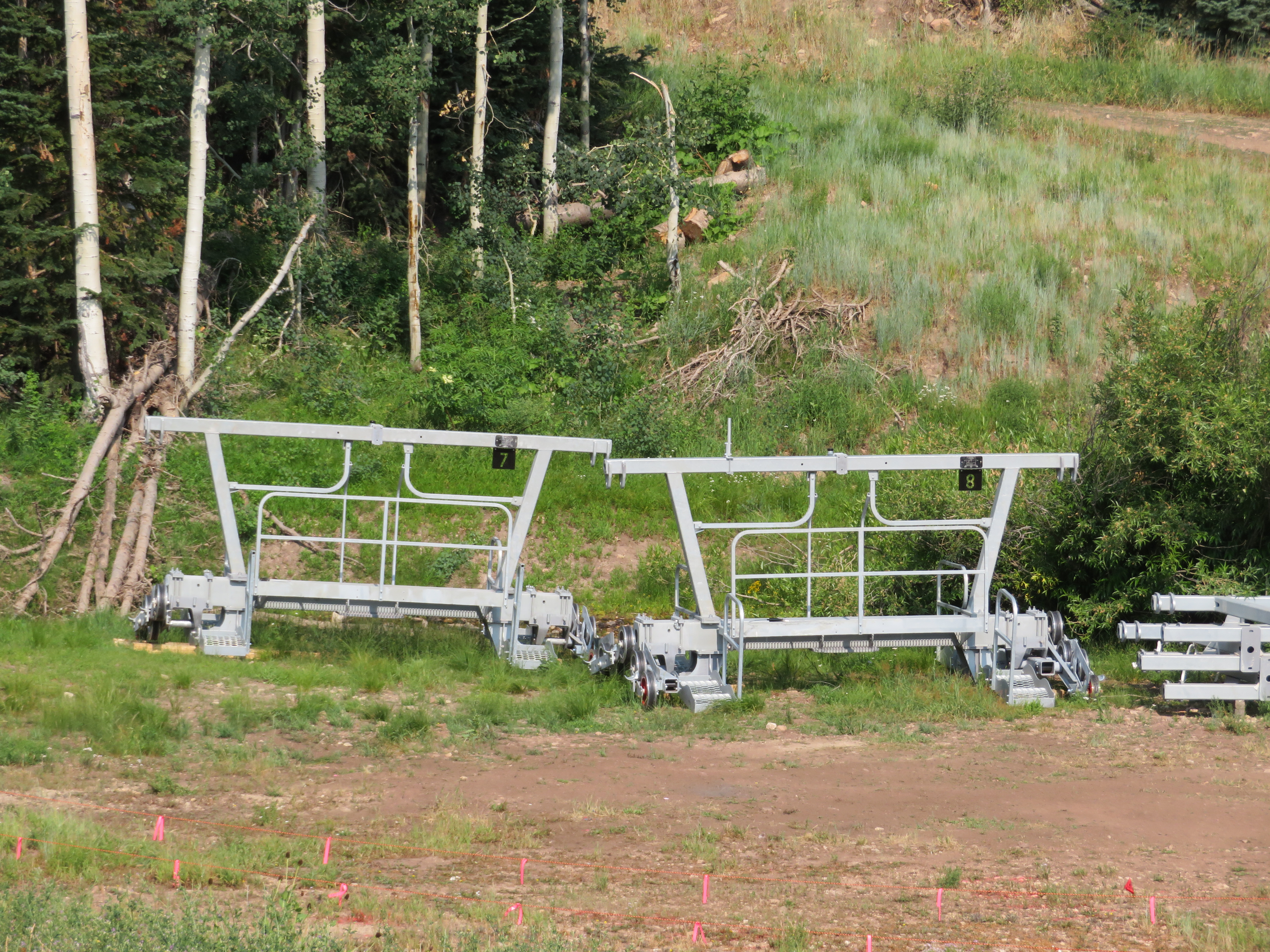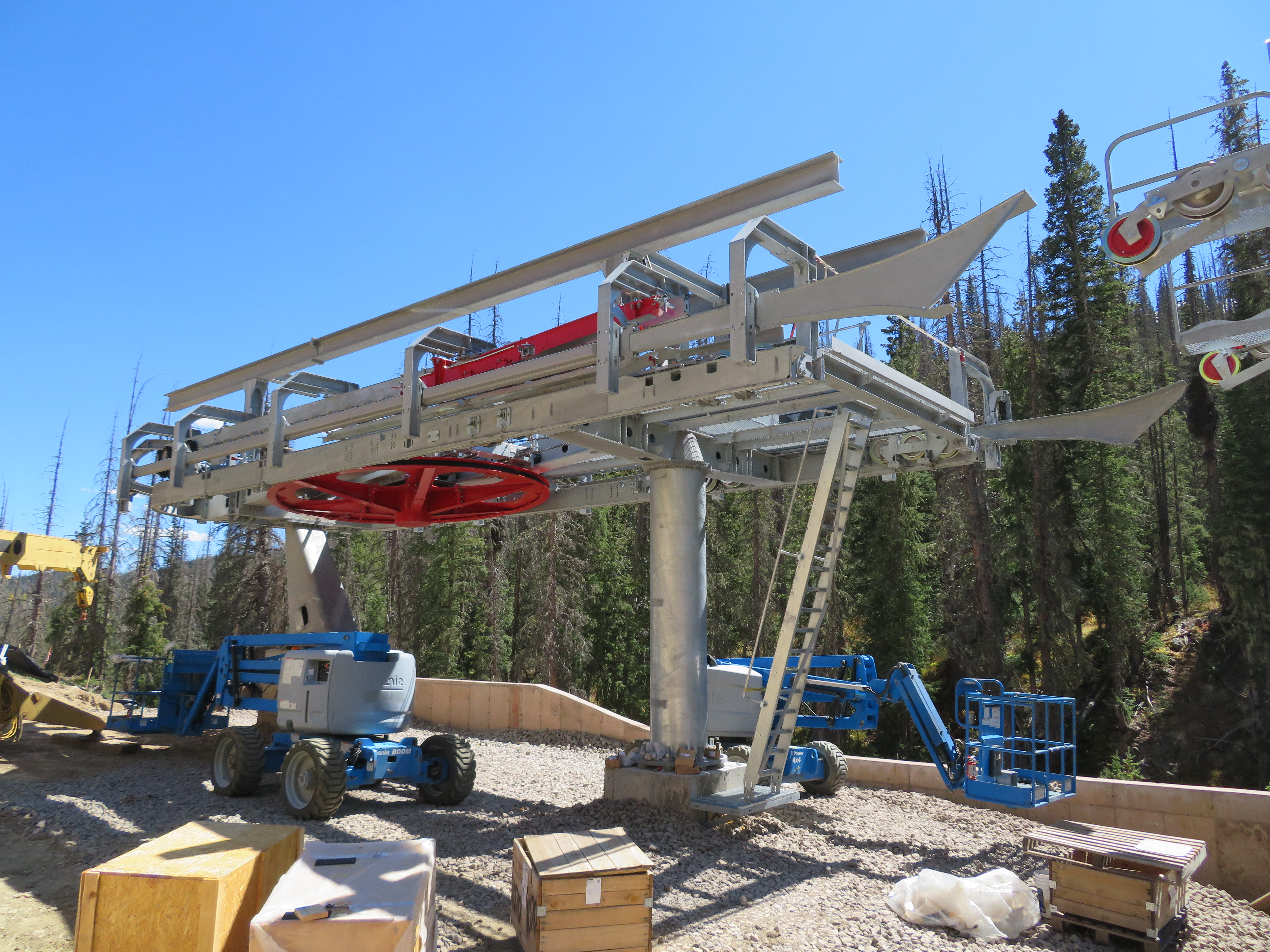 Across old town Park City at Deer Valley, another Doppelmayr detachable quad is replacing another CTEC fixed-grip quad. Highlander Lift Services & Construction is assembling Homestake Express in the existing alignment but again with fewer towers. I think the new number is eight, down from a dozen in this high traffic area above Silver Lake Lodge. For its second winter under Alterra, Deer Valley will operate an impressive 13 high speed quads this season. The 1999 version of Homestake is bound for Utah Olympic Park.