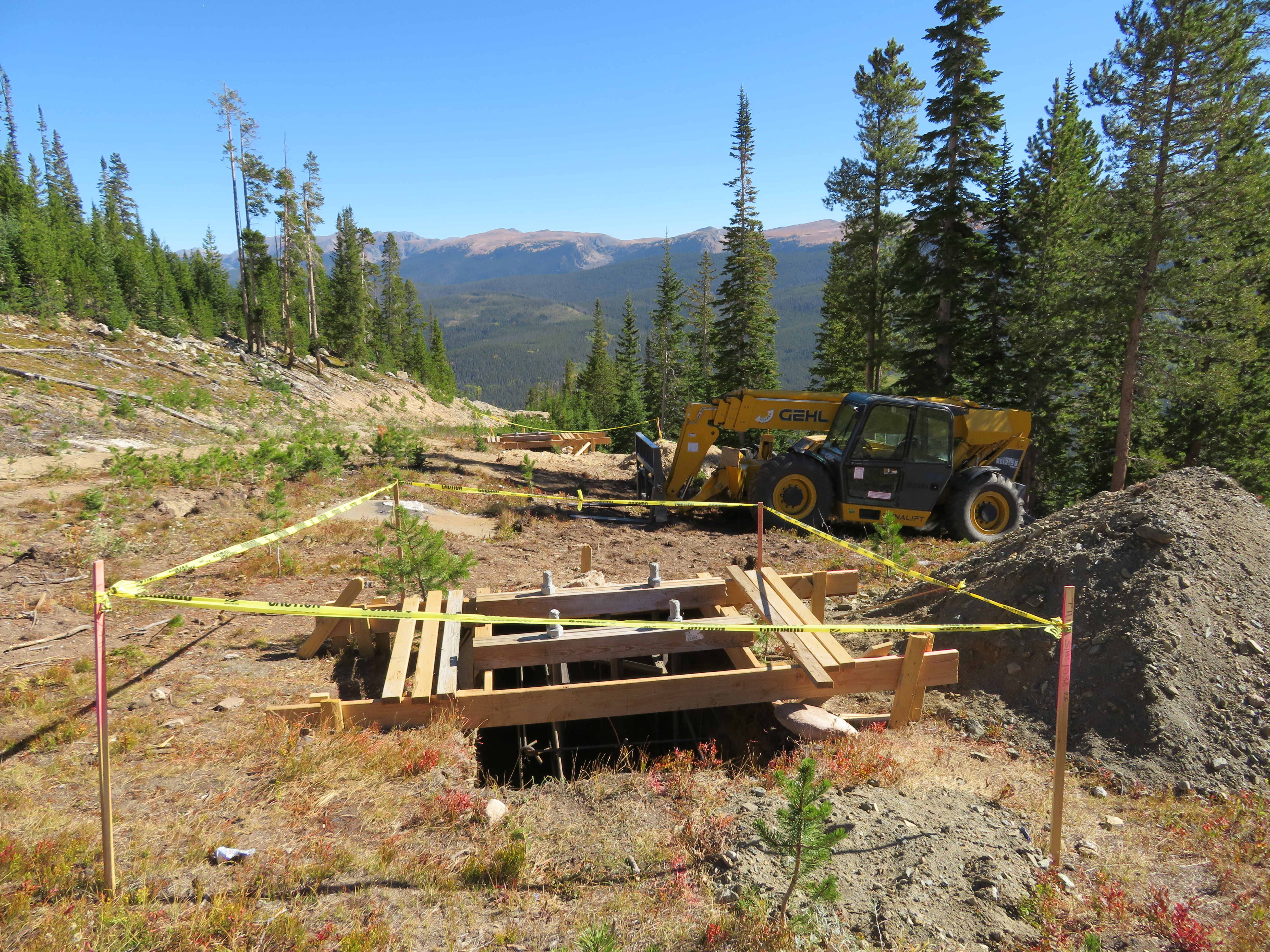 Topping out at 12,475′, The Beavers drainage is beyond beautiful and A Basin is taking great care to implement the project with as little disturbance as possible. The quad drive terminal is the closest you can get by road and dozens of workers are readying the expansion by foot, helicopter and spider excavator. Arapahoe Basin opted to do the development carefully over two years rather than rushing it in one, and it shows. The two blue trails were traditionally cut while the rest of the new stuff is either above tree line or was thinned by hand.