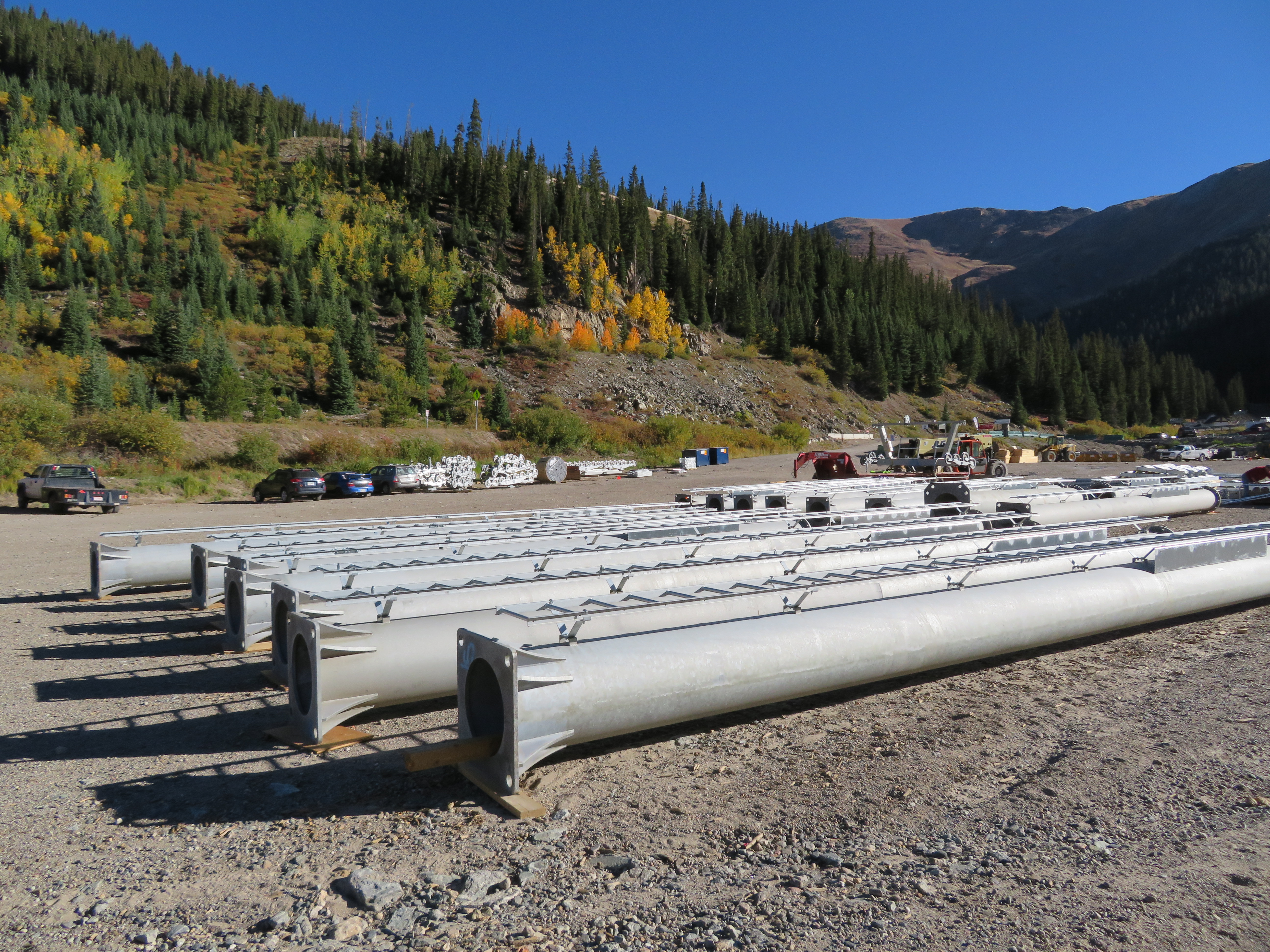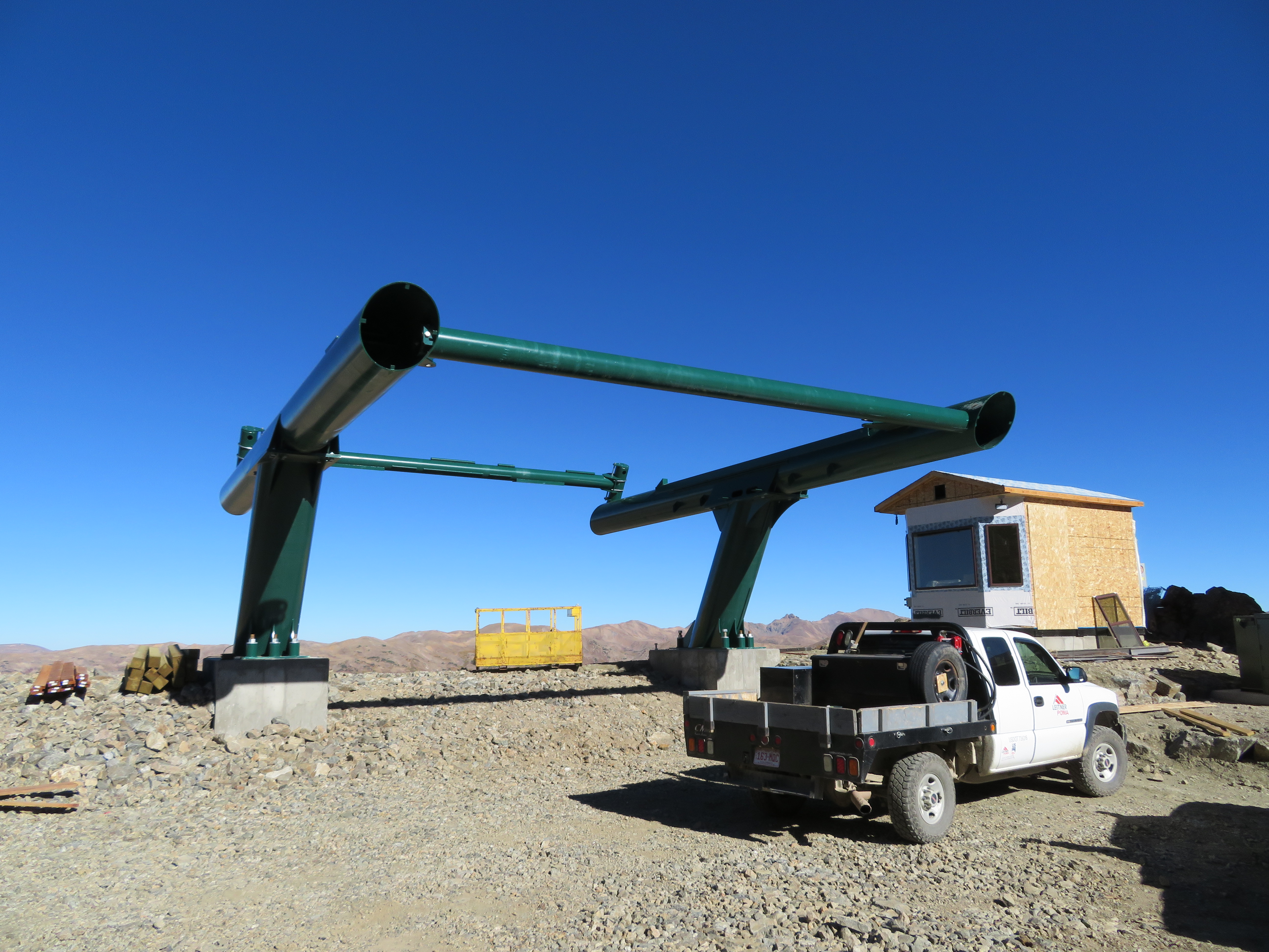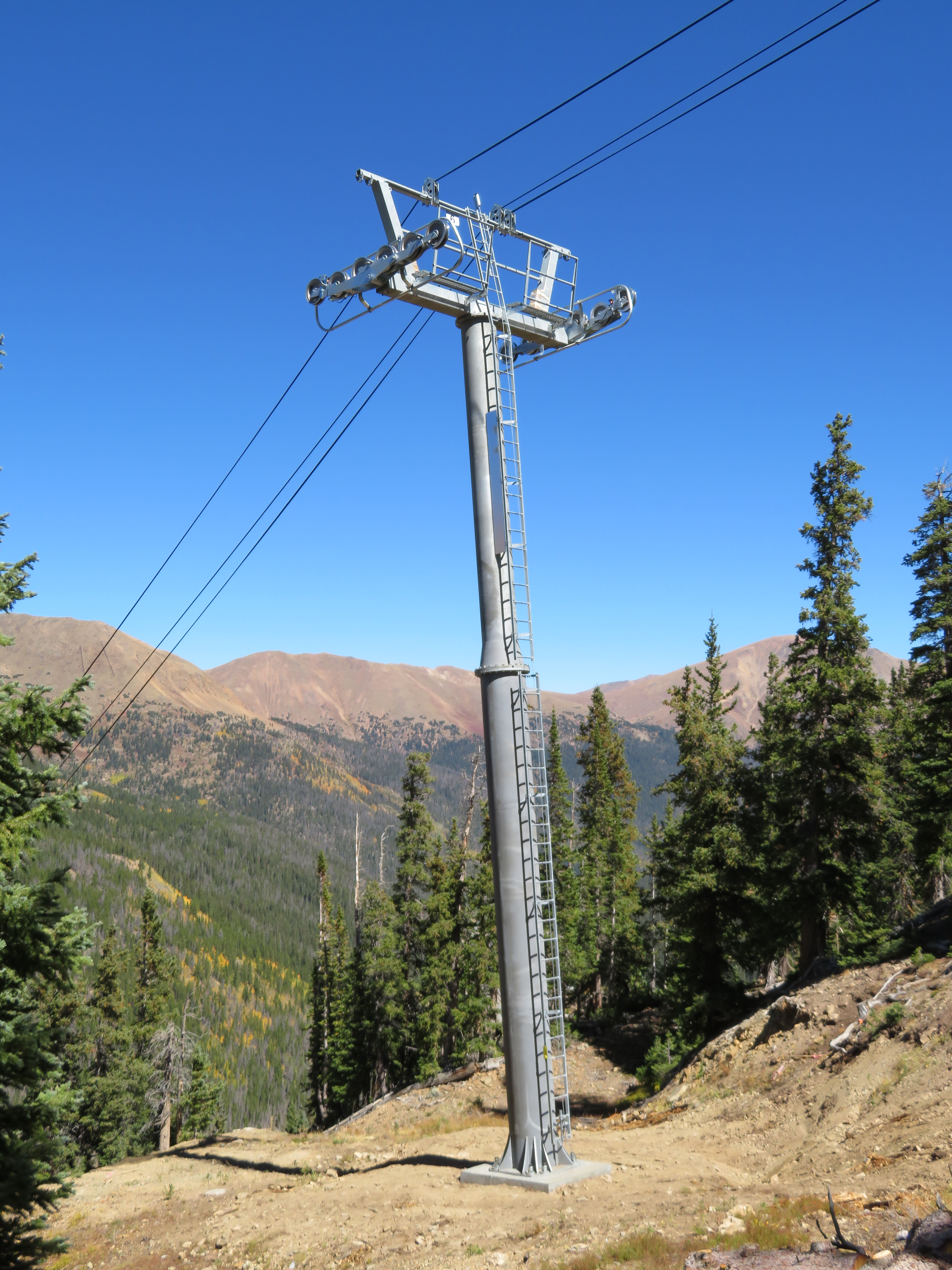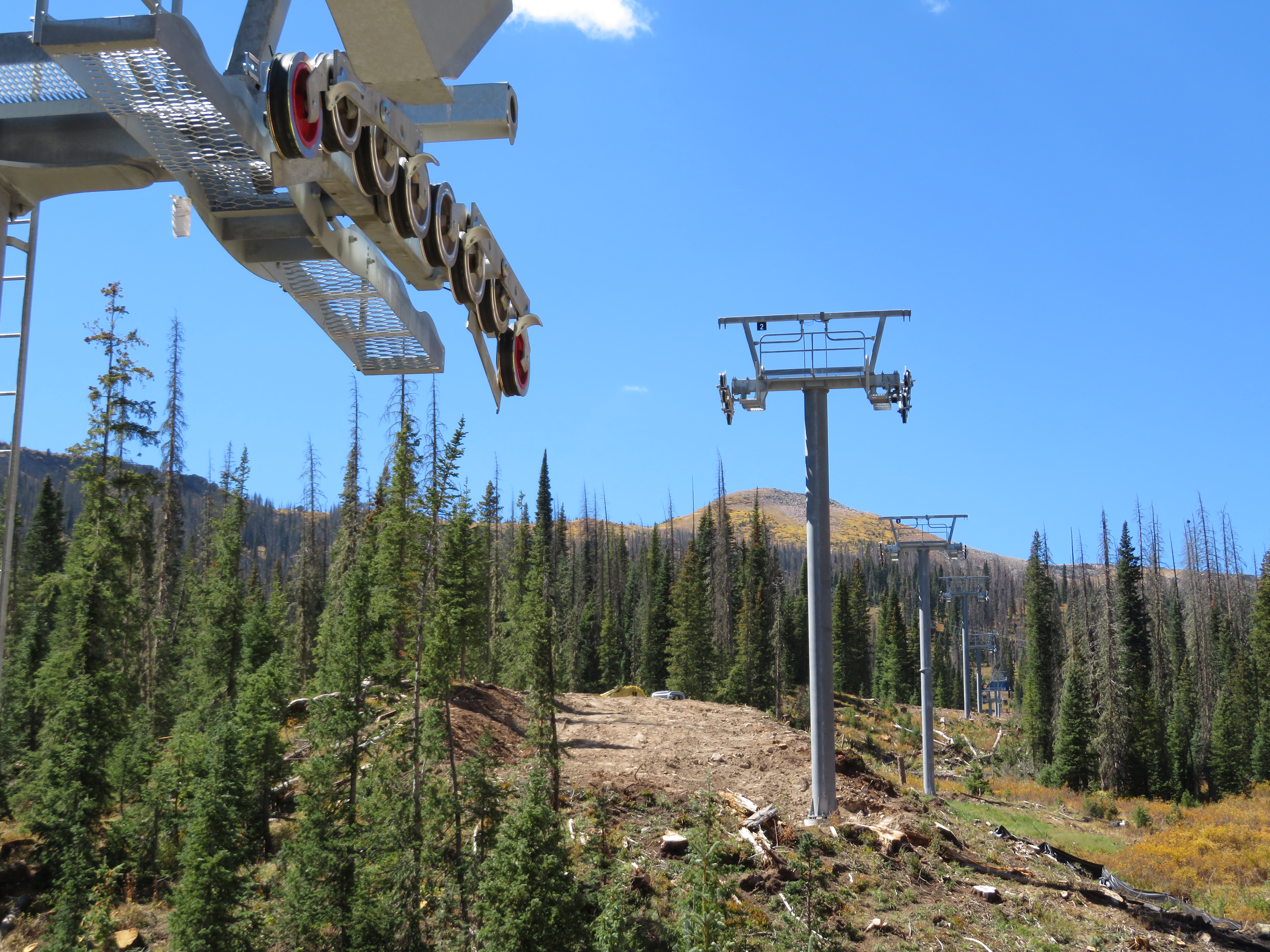 Two of the five biggest American ski areas without detachable lifts will leave the club this year. They are Loveland and Taos, both coincidentally adding bright blue Leitner-Poma high speed quads to serve as out-of-base workhorses. Along the Continental Divide at Loveland, the newly-named Chet’s Dream is the third chairlift to follow the Lift 1 line, carrying on the legacy of a Heron double and later a Lift Engineering triple. Family-owned Loveland ordered this lift early as 1 is usually among the first in the country to open for skiing in October. “It’s a big deal for both us and our guests,” Marketing & Communications Director John Sellers told me when I visited last week. “This lift will be in operation for the next few decades and we are excited to offer the increased speed and reliability to our customers for years to come.” With towers all flown and the rope going up shortly, the project is right on schedule.