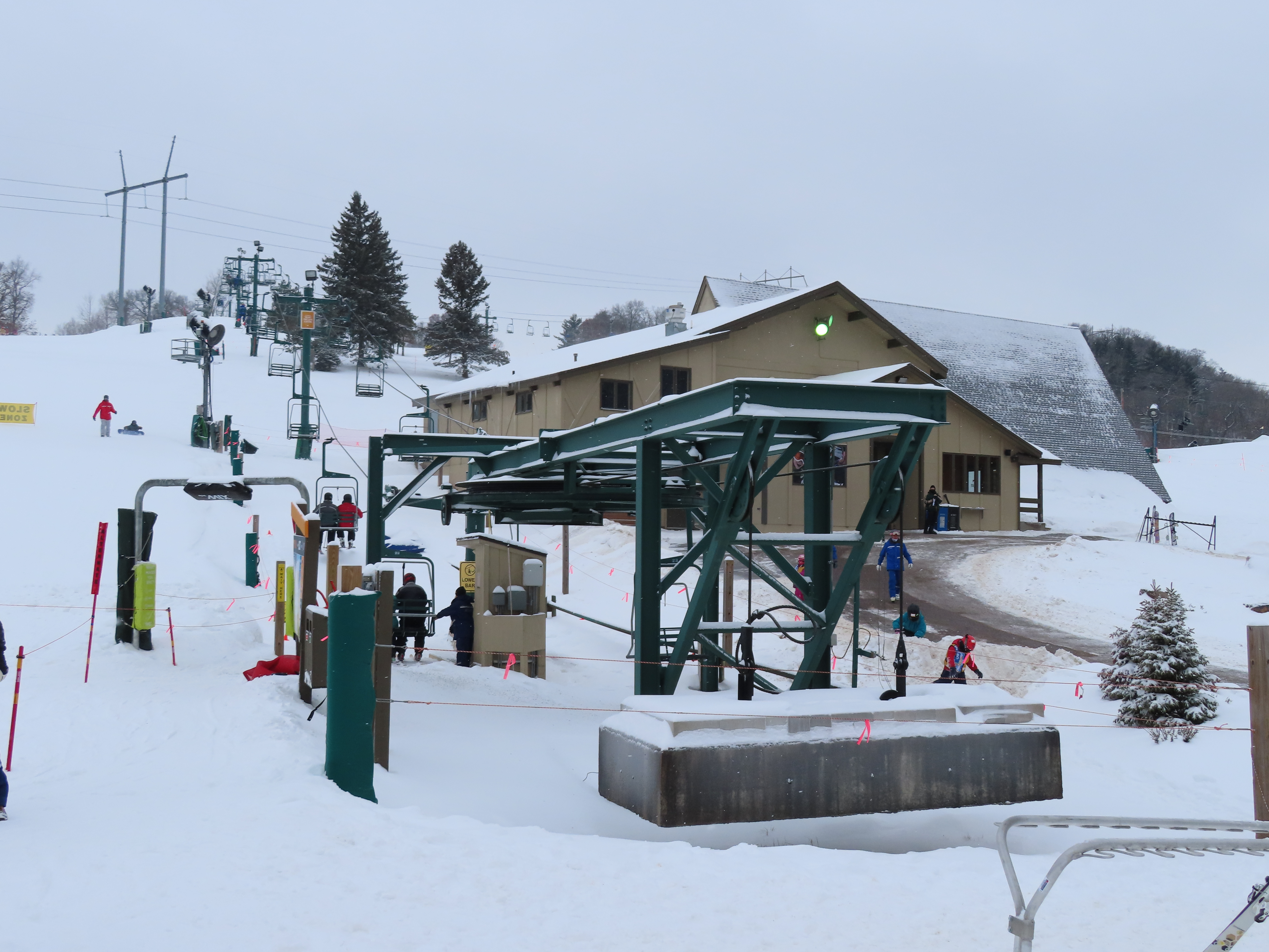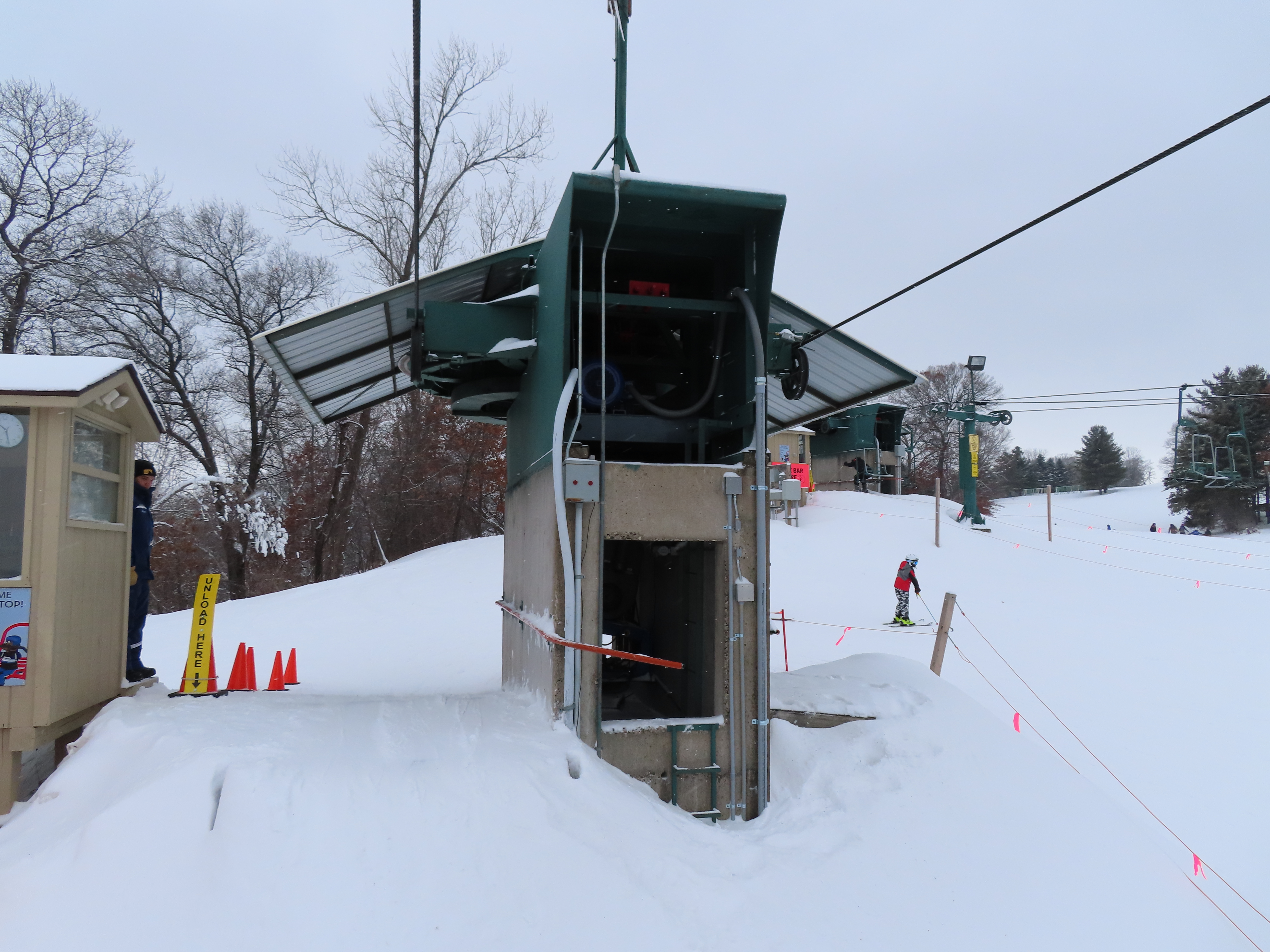 Chair 10 – Afton Alps, MN This is a beginner lift. Unloading area at the drive station. Top terminal and last tower. View down the lift line. Loading at tower 1. Lift overview. Return bullwheel. Riding up. Arriving at the top terminal. Share this: Click to email a link to a friend (Opens in new window) Email Click to share on X (Opens in new window) X Click to share on Facebook (Opens in new window) Facebook Like Loading...