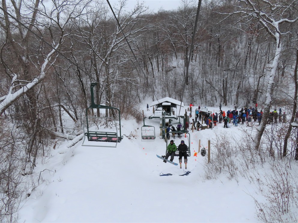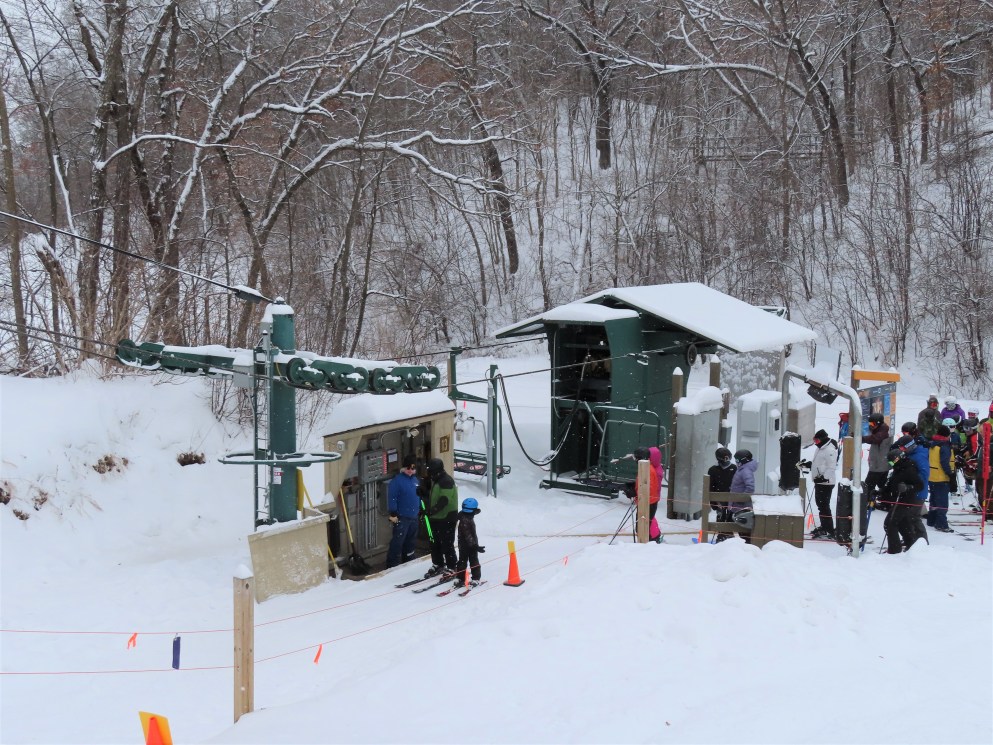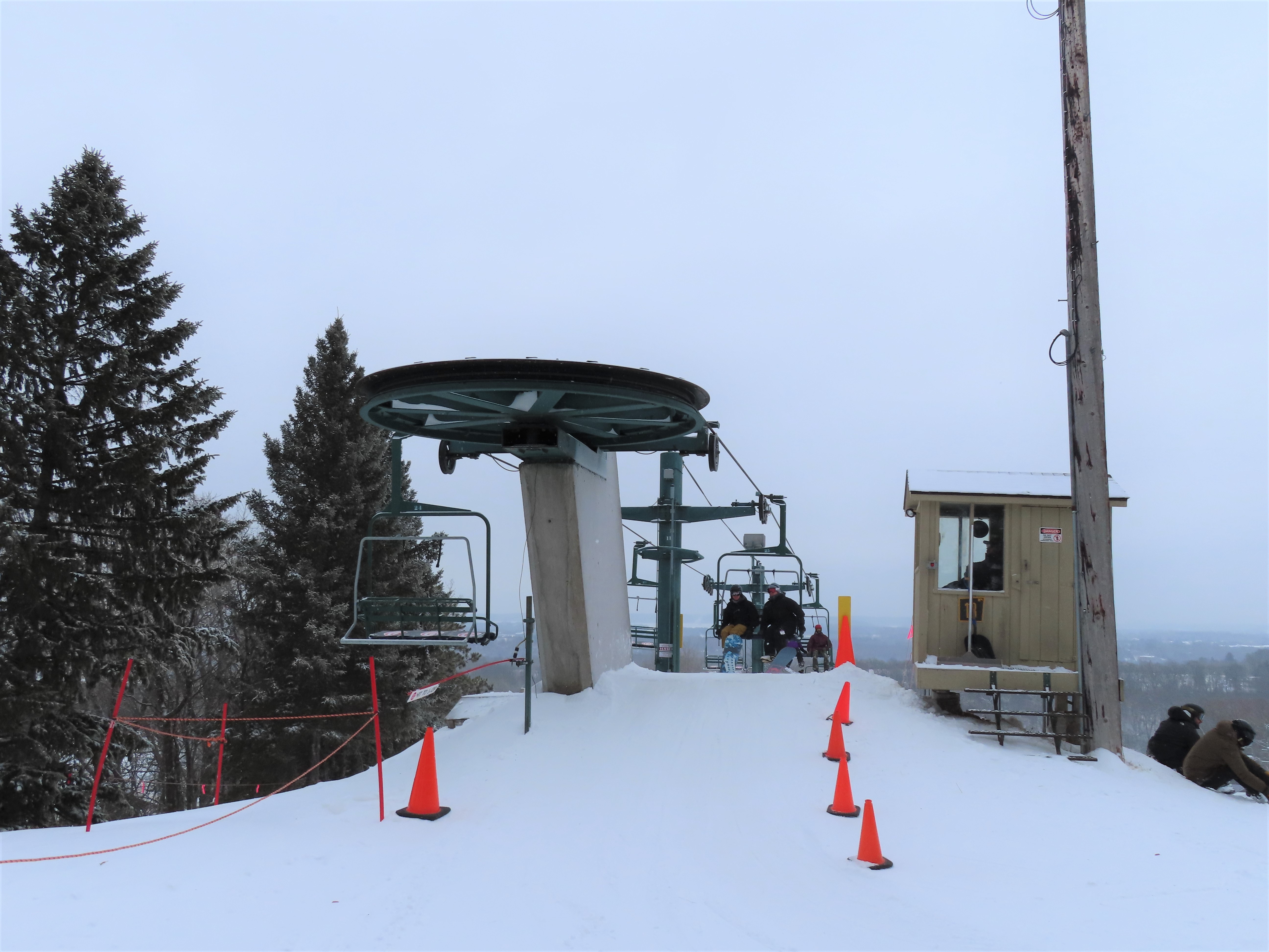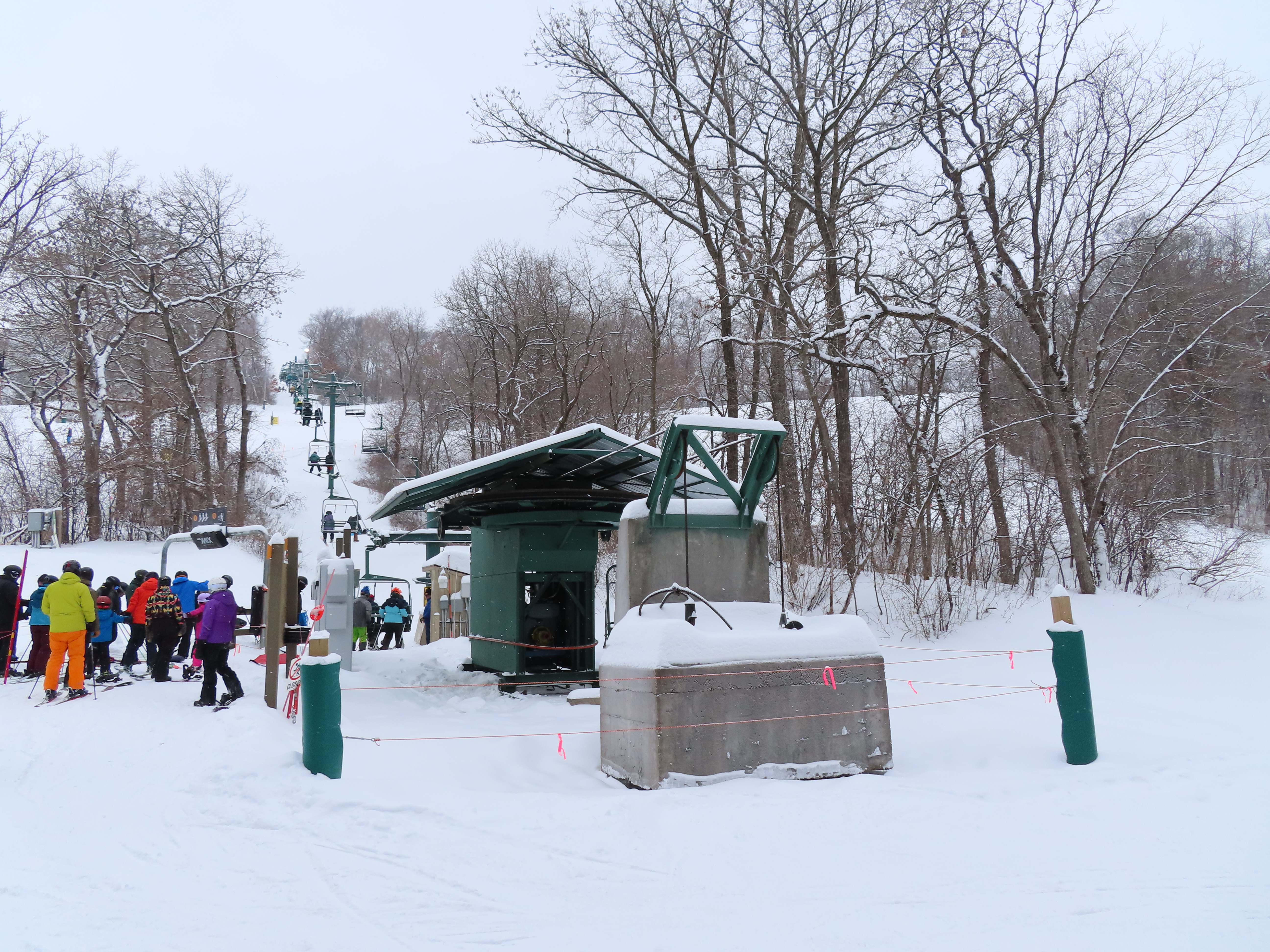 This lift services the heart of The Highlands and is the longest lift at Afton Alps.Drive bullwheel.Leaving the loading area.Riding up the line.The final two towers.Unloading ramp.View down near the summit.Upper lift line.Lower lift line.Loading at tower 1.
