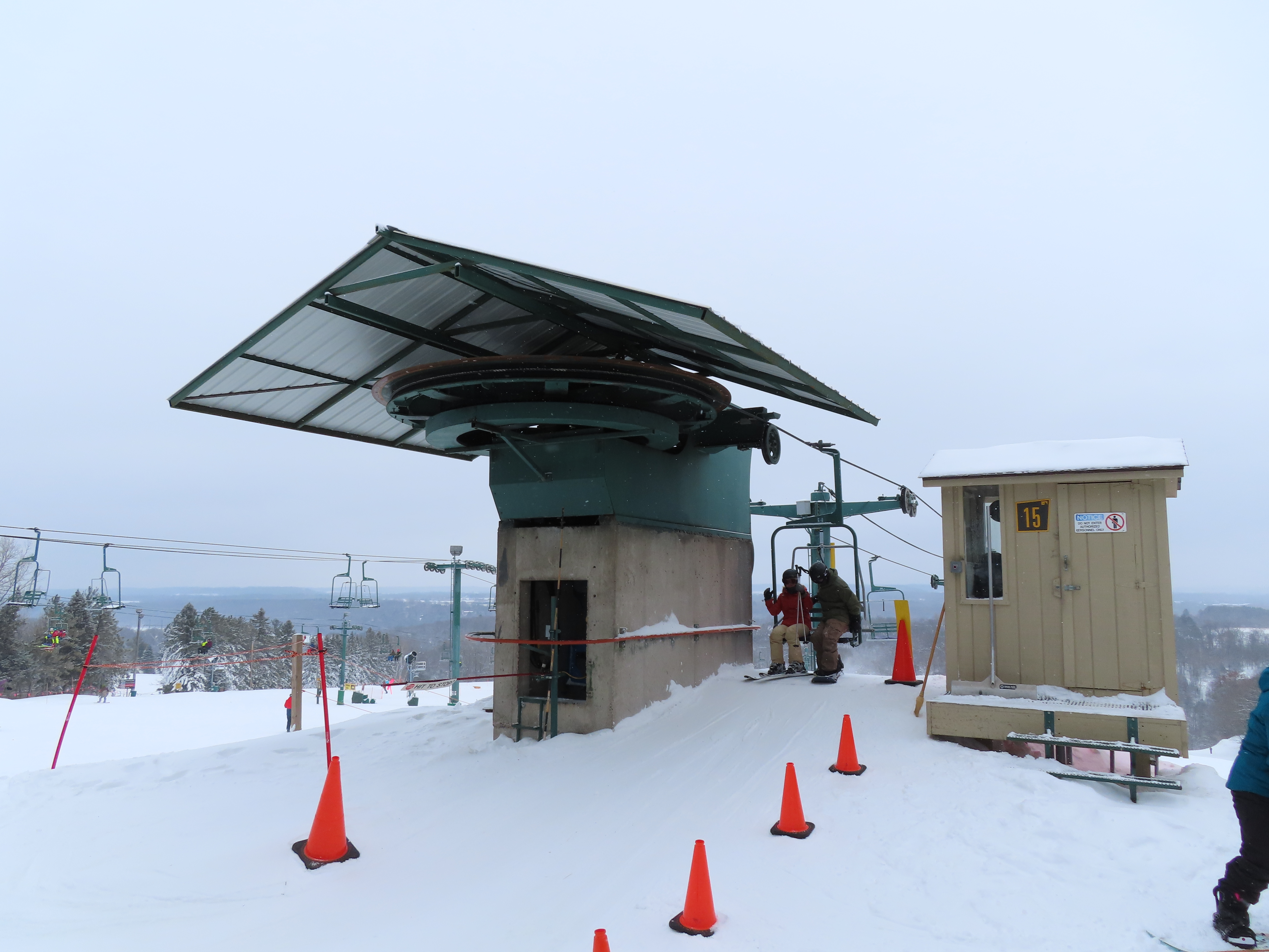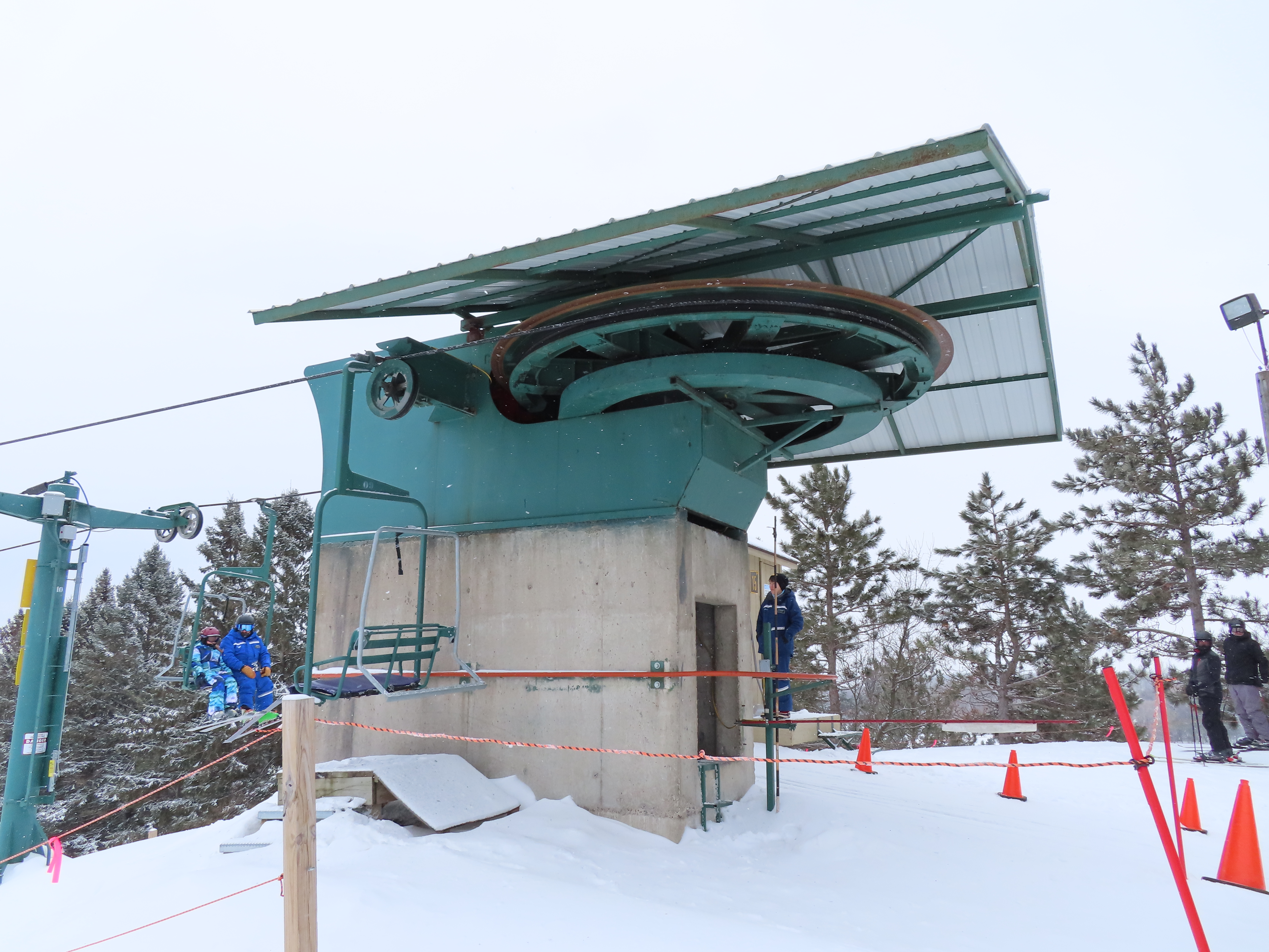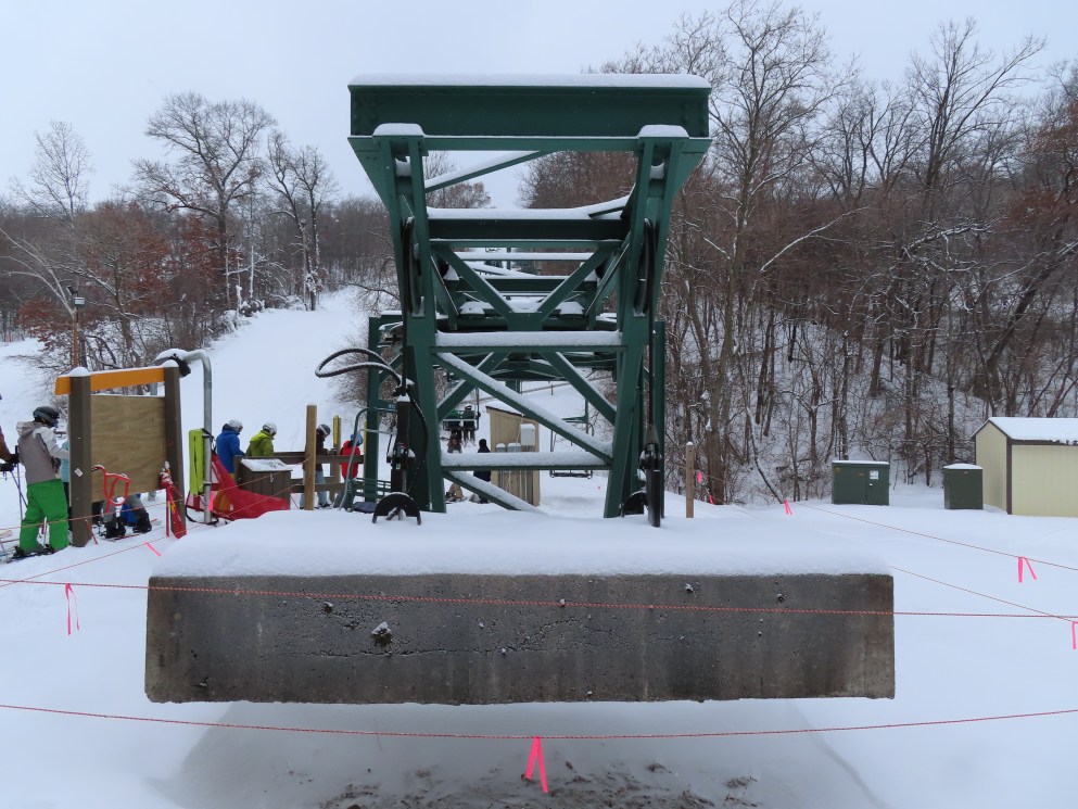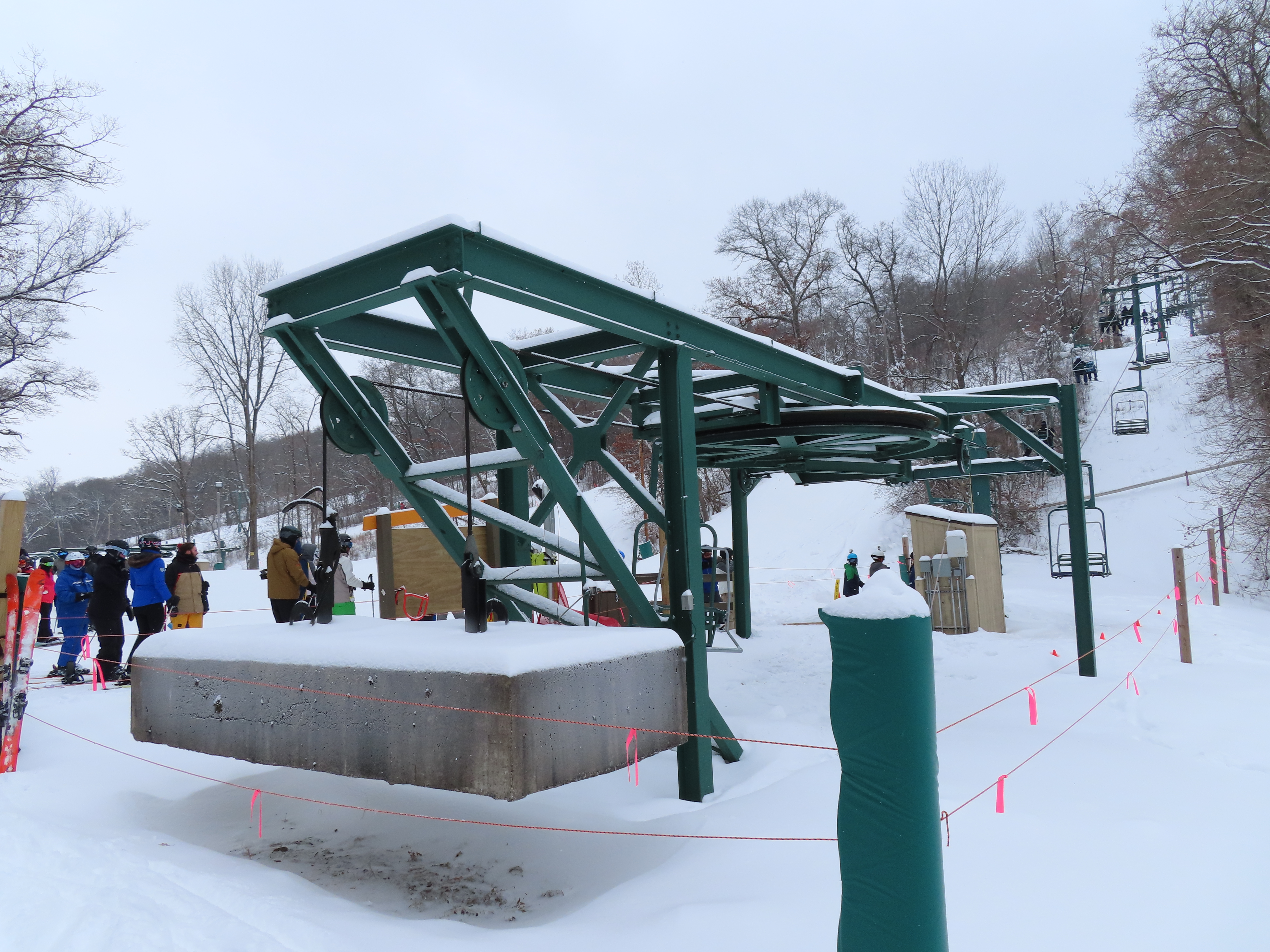 Many of the lifts on this part of the mountain are nearly the same.Lower terminal with tensioning.Counterweight.Leaving the bottom terminal.Riding up the lift line.Tower 10 and the top station.Unloading area.View down from the summit.Drive bullwheel.Upper lift line.Lower lift line.