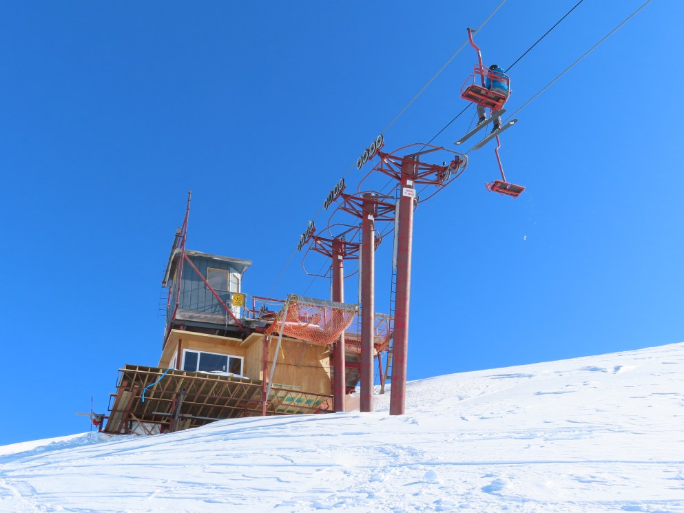This Riblet double was built in 1978 and is much longer than the other chairlift here.