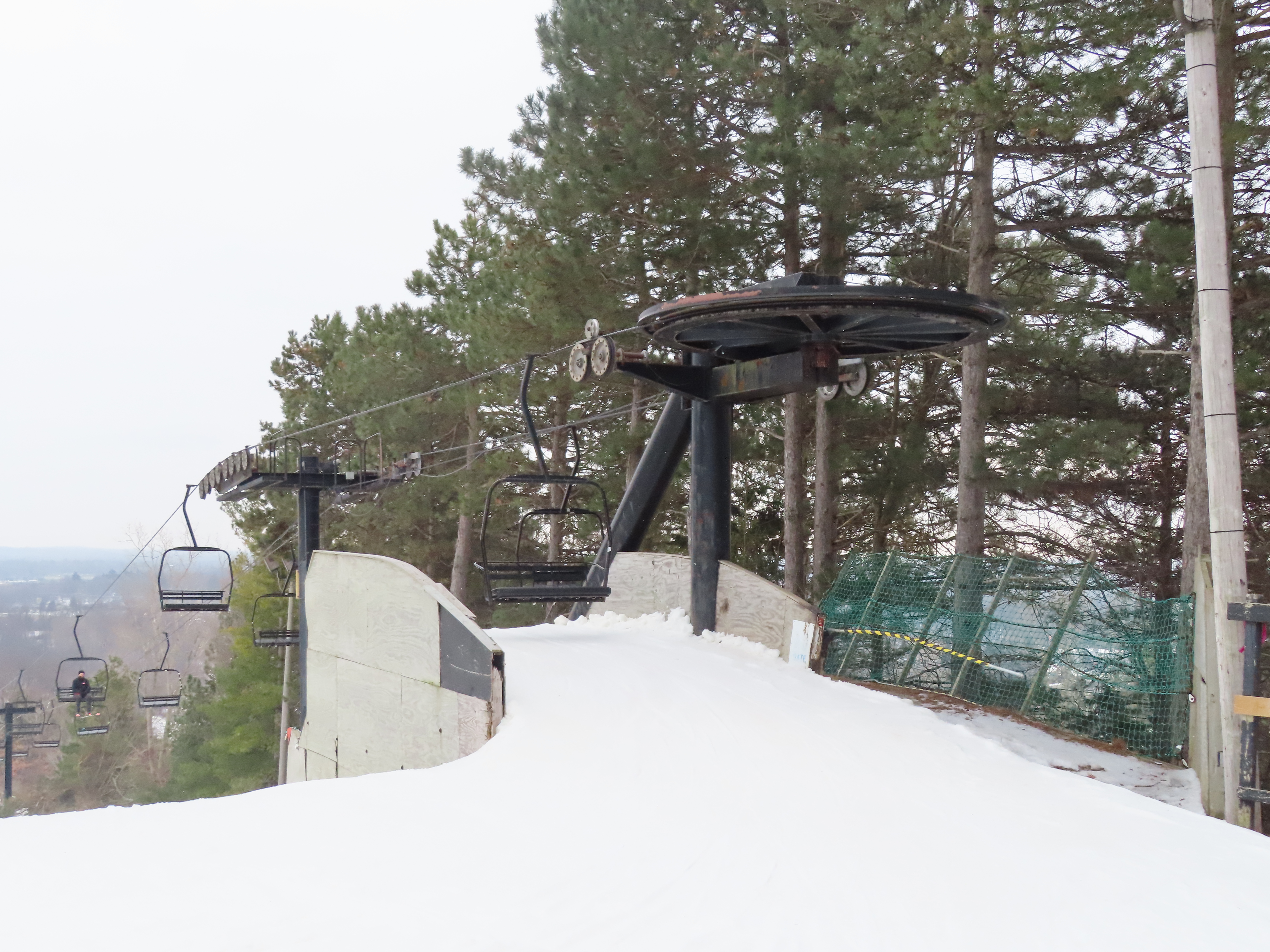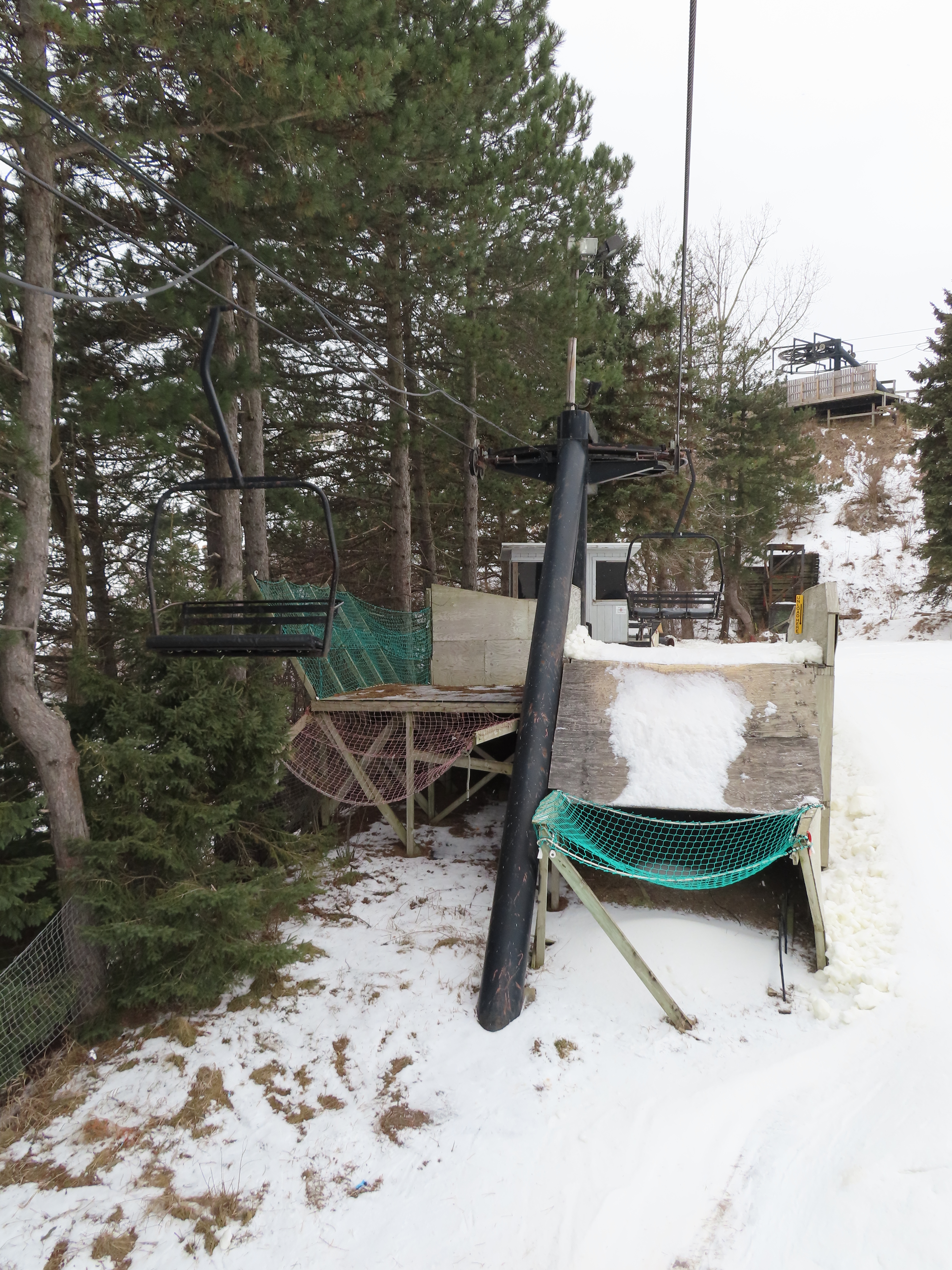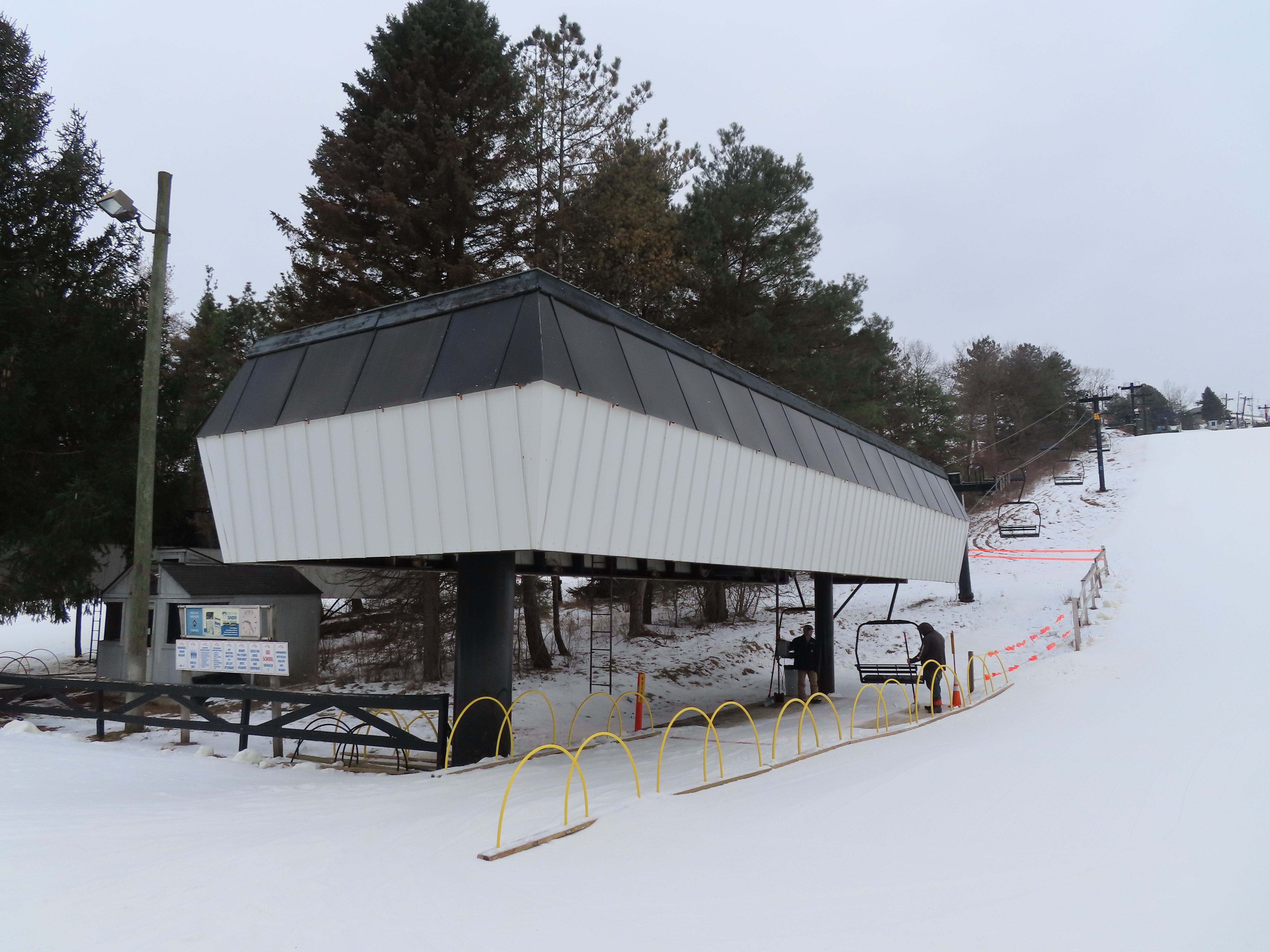 This Riblet triple was built in the 1990s to replace an older double.View down the line.Lower lift line.Bottom terminal with drive and tensioning.Loading area.Leaving the bottom terminal.Riding up the line.Top terminal.