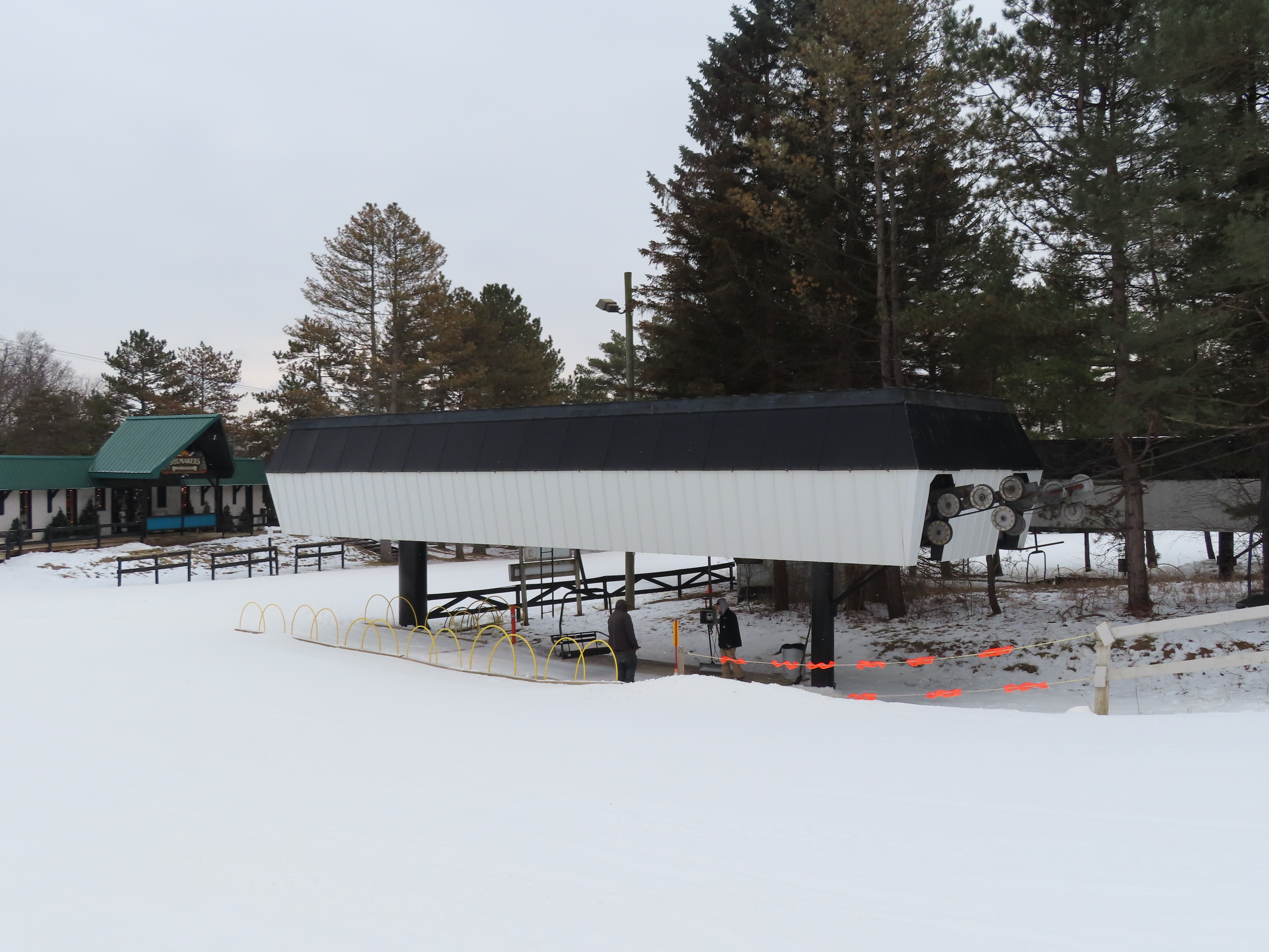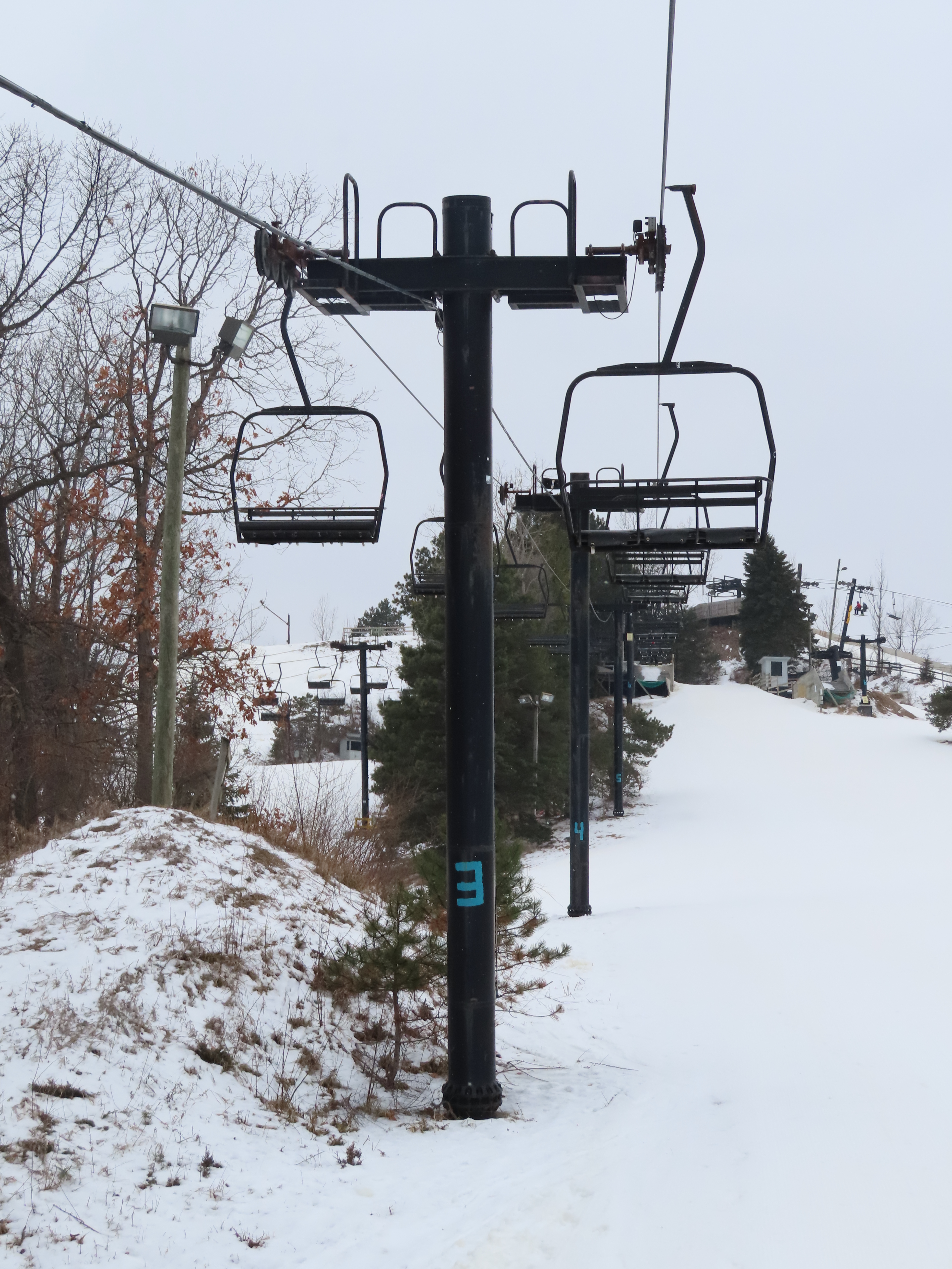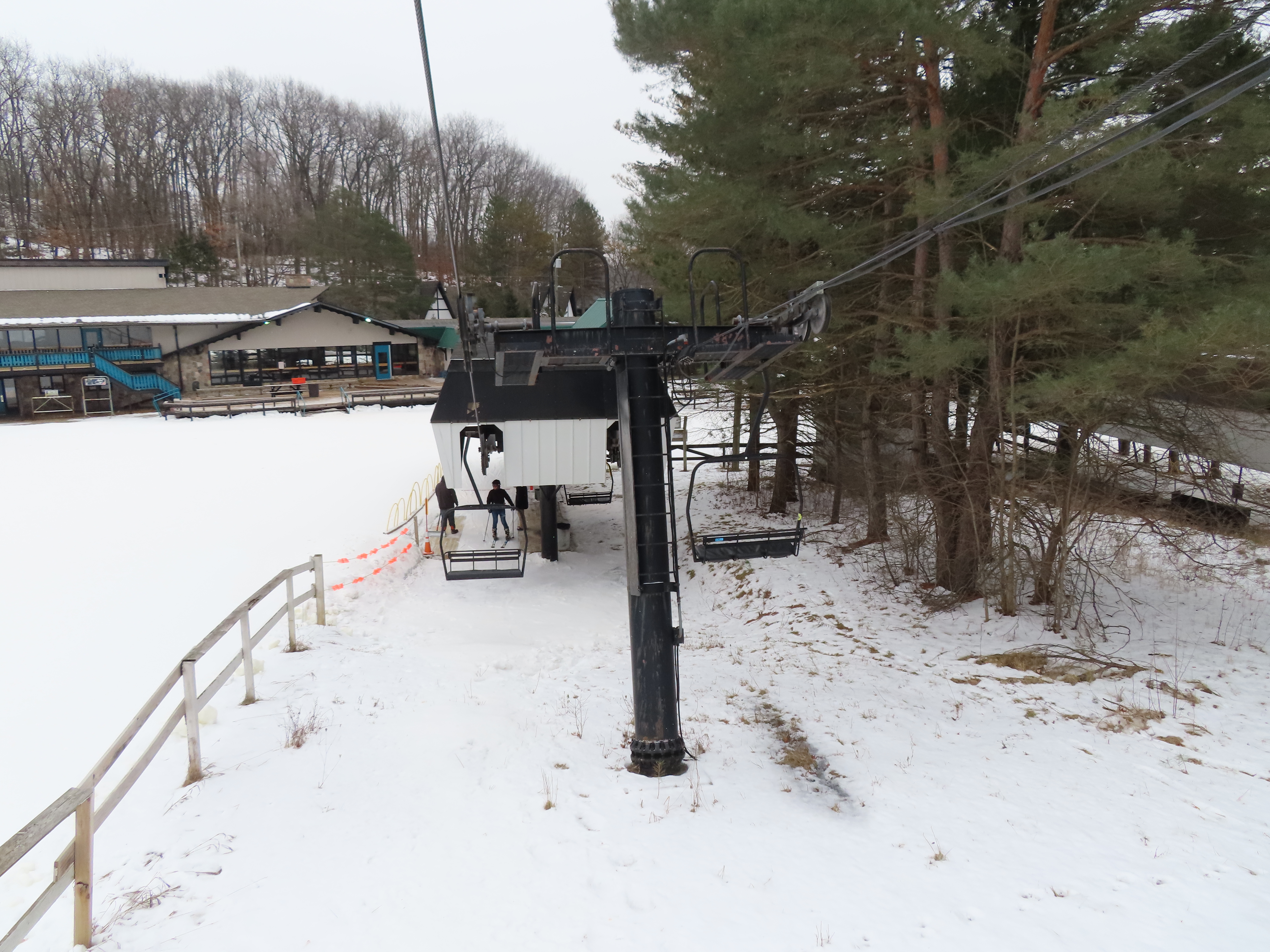 This Riblet triple was built in the 1990s to replace an older double.View down the line.Lower lift line.Bottom terminal with drive and tensioning.Loading area.Leaving the bottom terminal.Riding up the line.Top terminal.