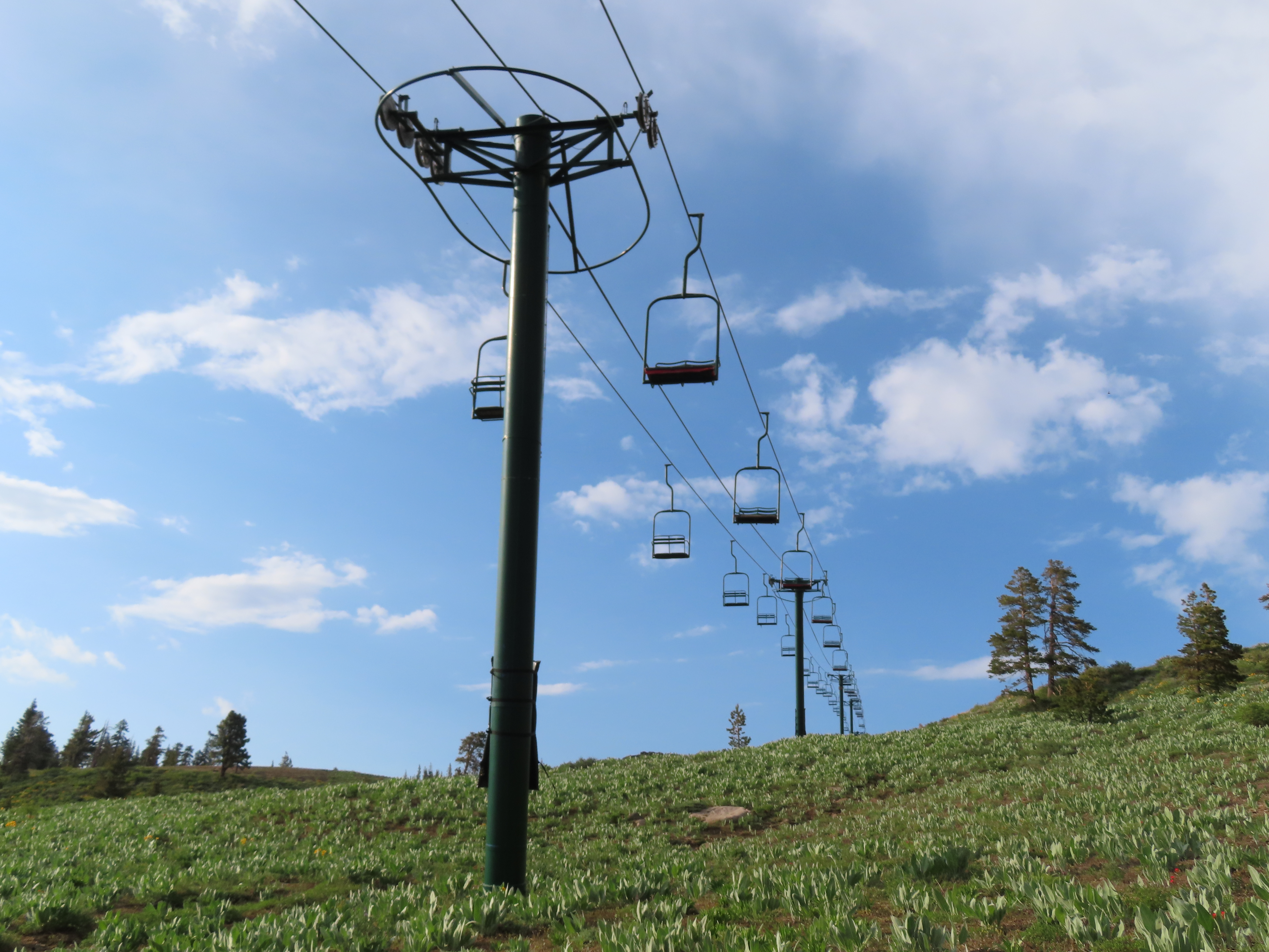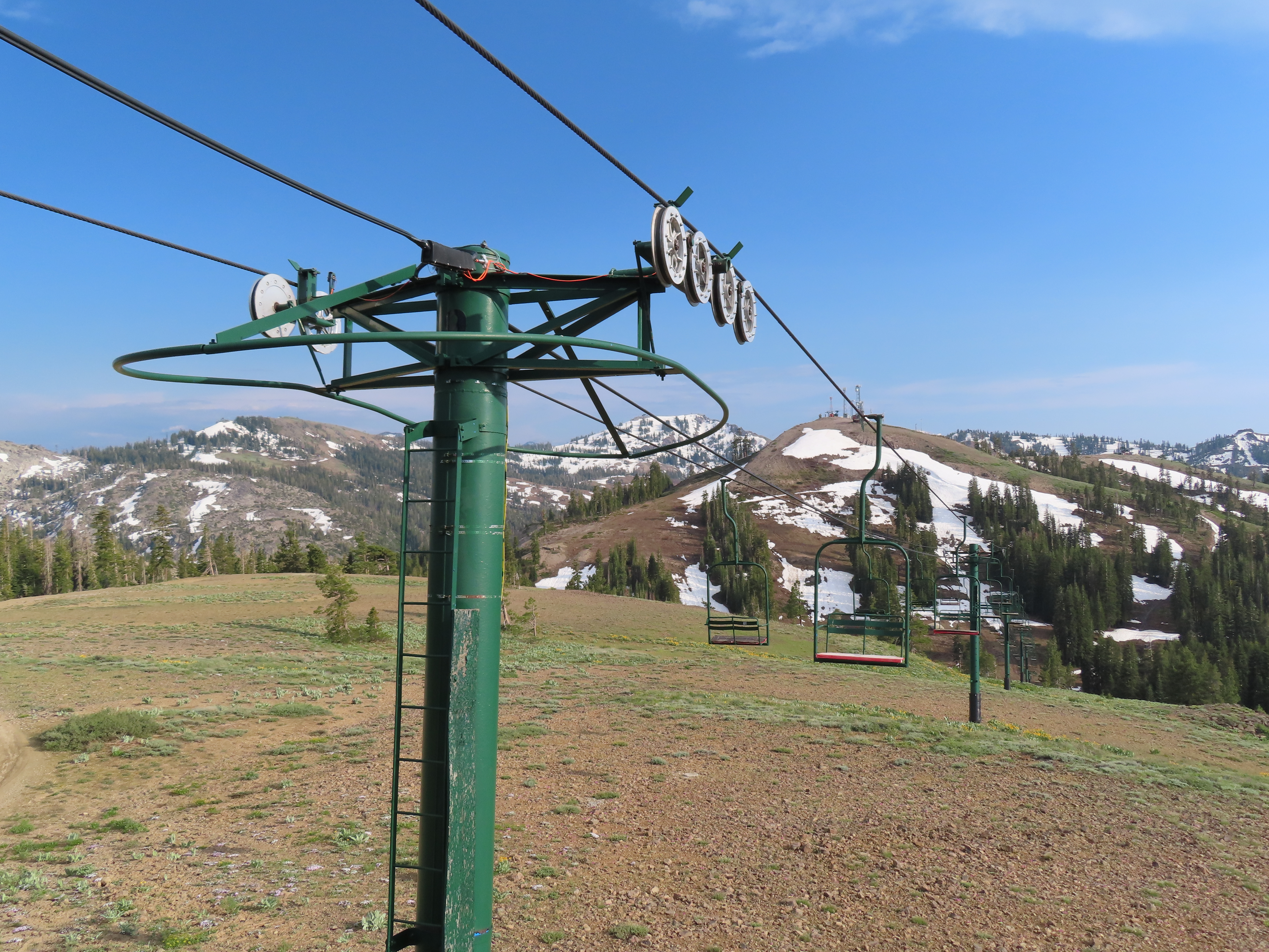 Top drive seen from Boreal.Upper lift line with Northstar in the background.Upper part of the line.Top station.Bottom tension station.This lift rarely operates.Lift overview.Vault drive up top.The top of this lift nearly touches the top of Boreal Mountain, a competing ski area.Top station overview.Another view of the drive station.Lower lift line.Middle section of the line.Riblet tower.