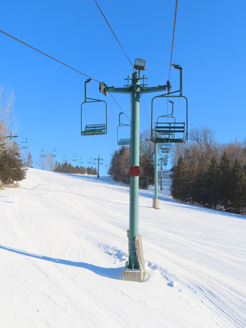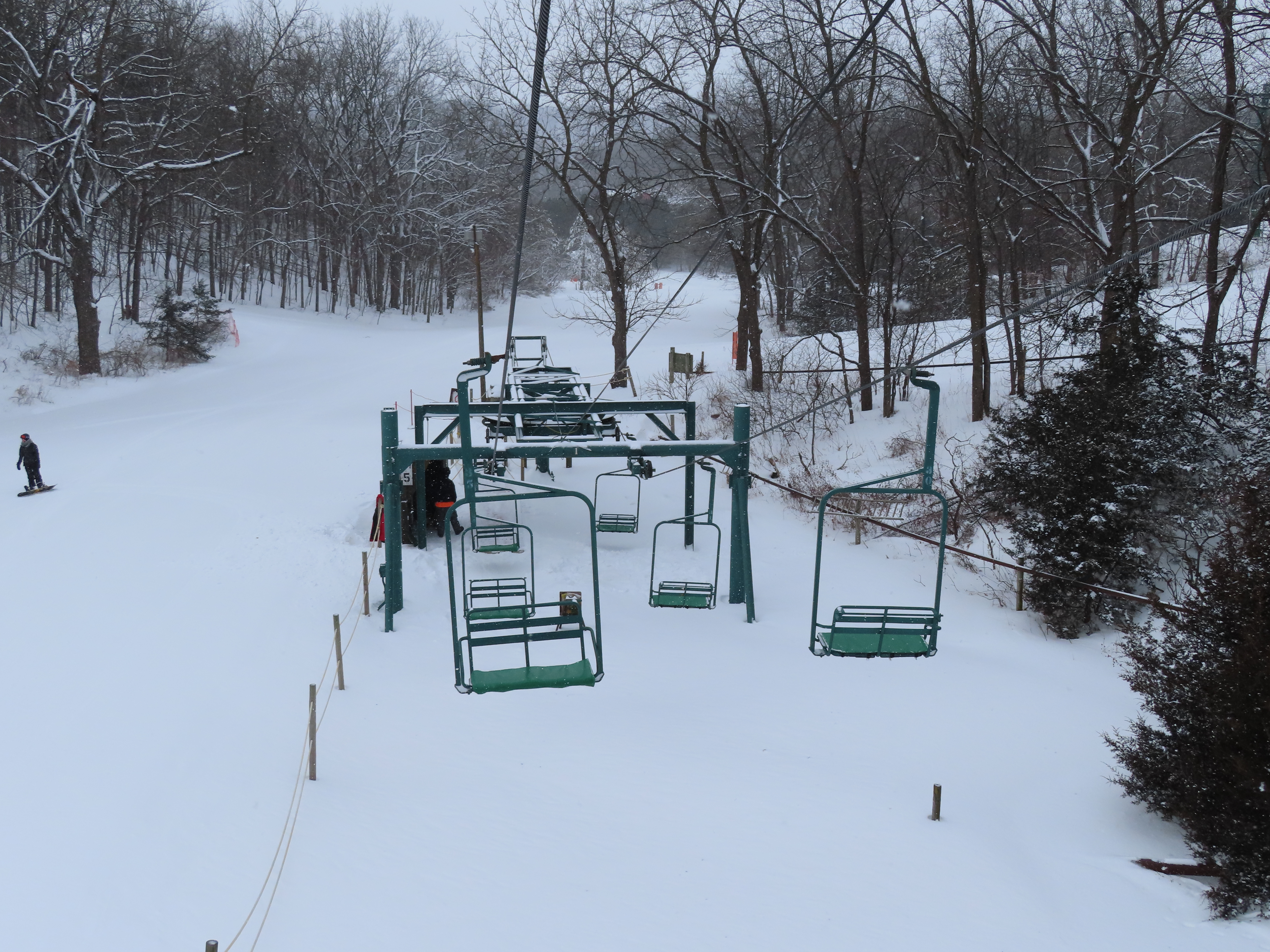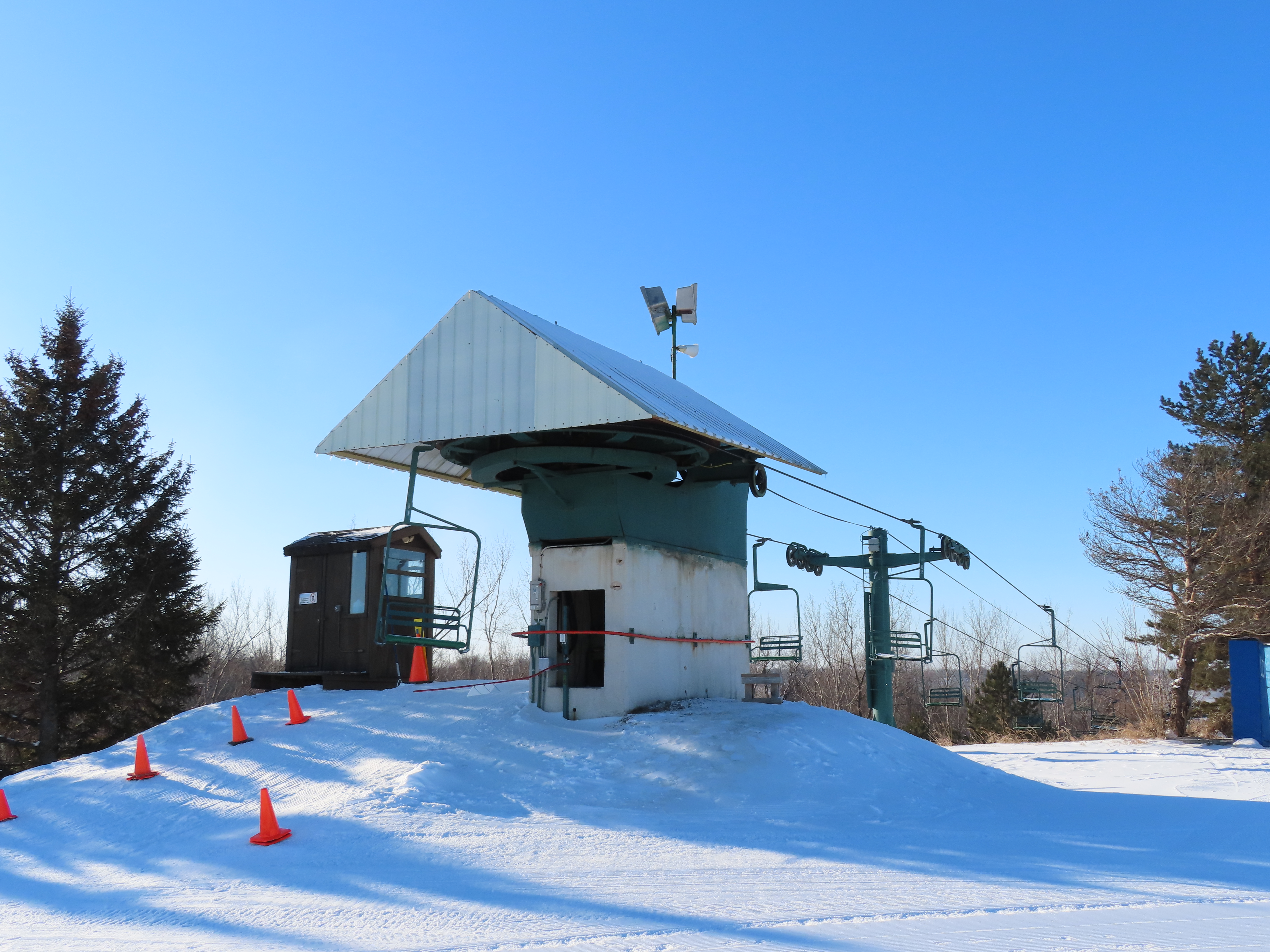This lift services the upper half of the Mt. Kato backside.Drive terminal.Lower part of the lift line.Bottom terminal with a portal tower.Counterweight.This is the only double chair on the backside.Upper lift line.The last tower and top terminal.Lift overview.Leaving the bottom station.