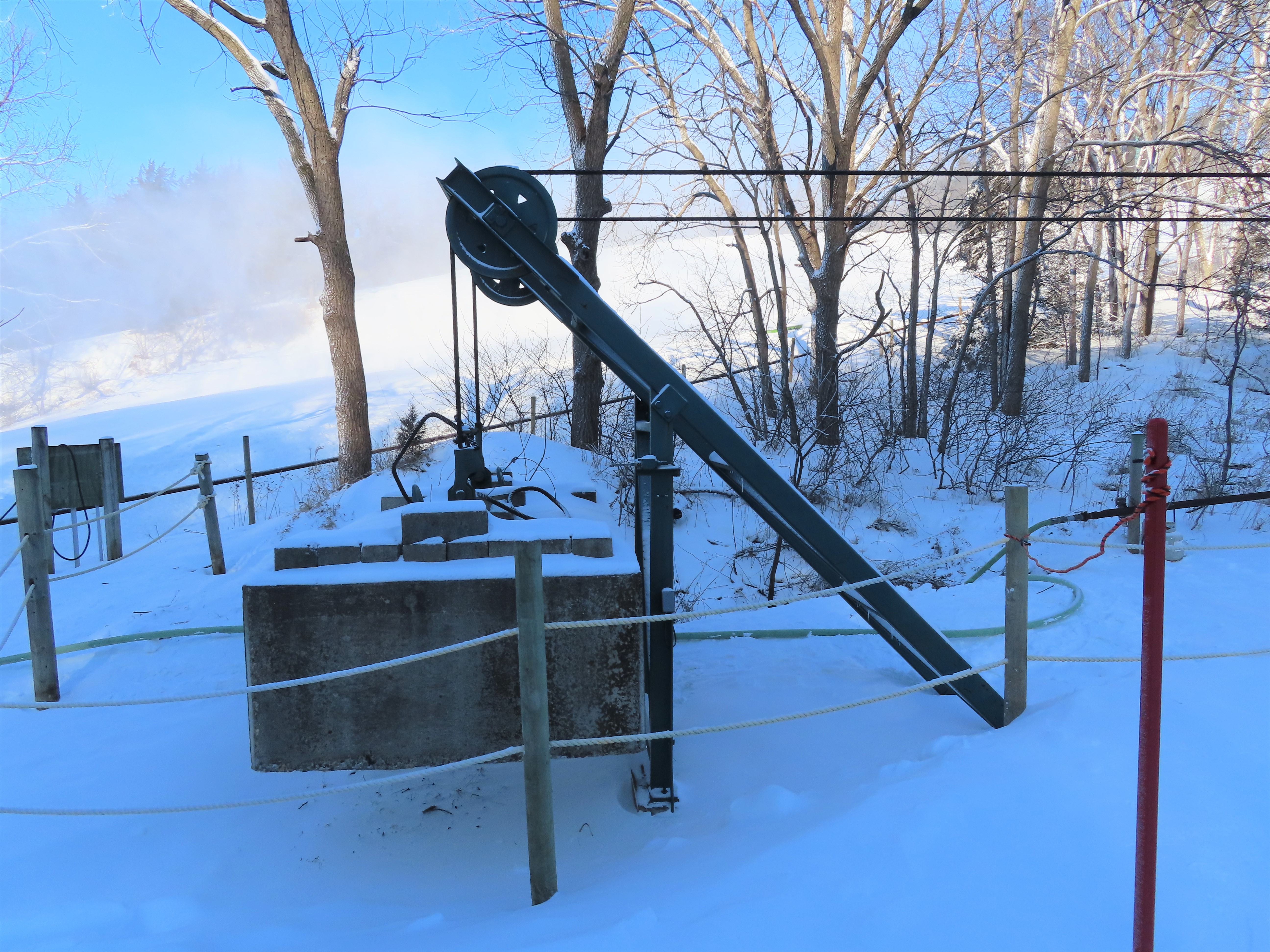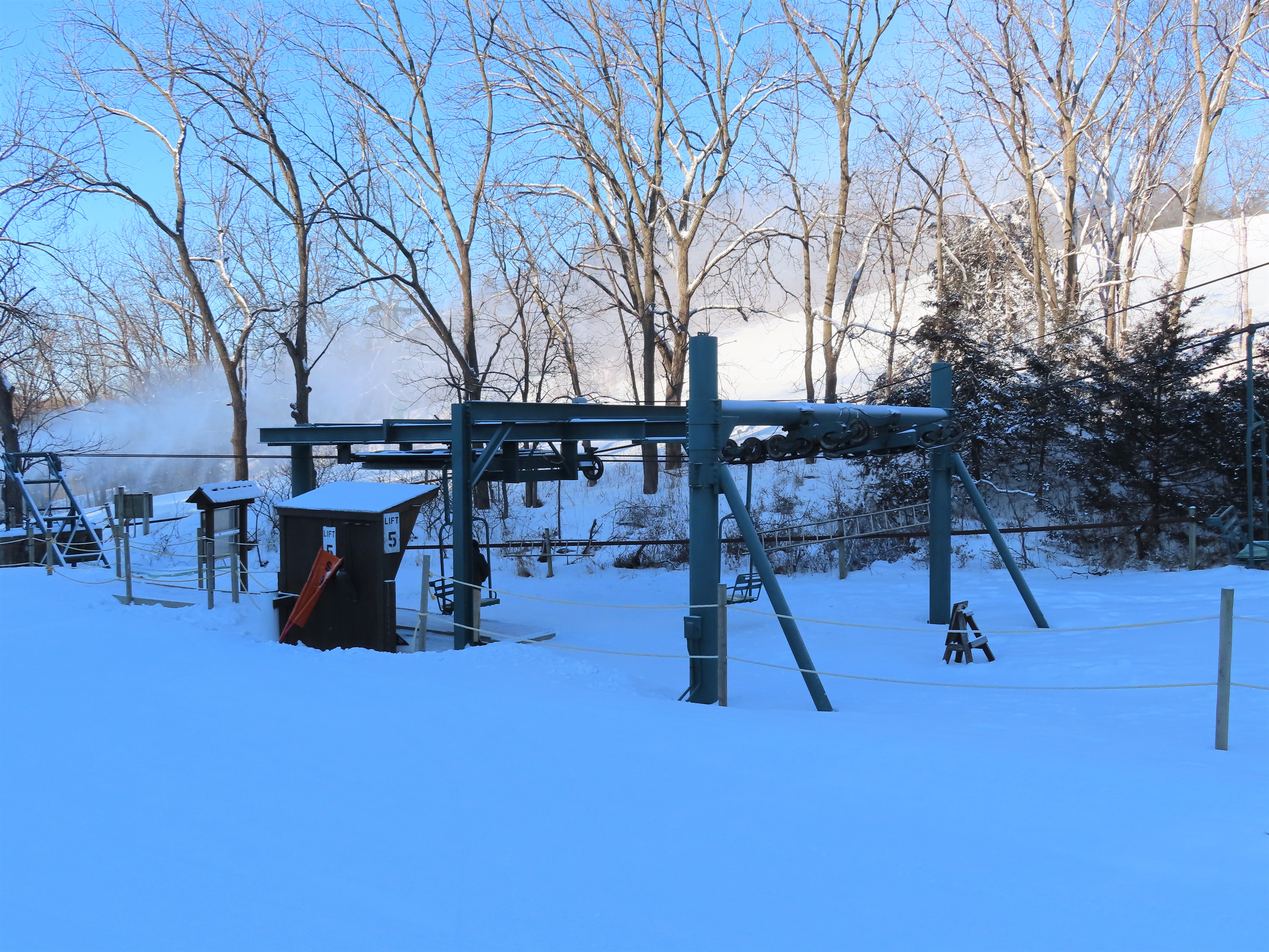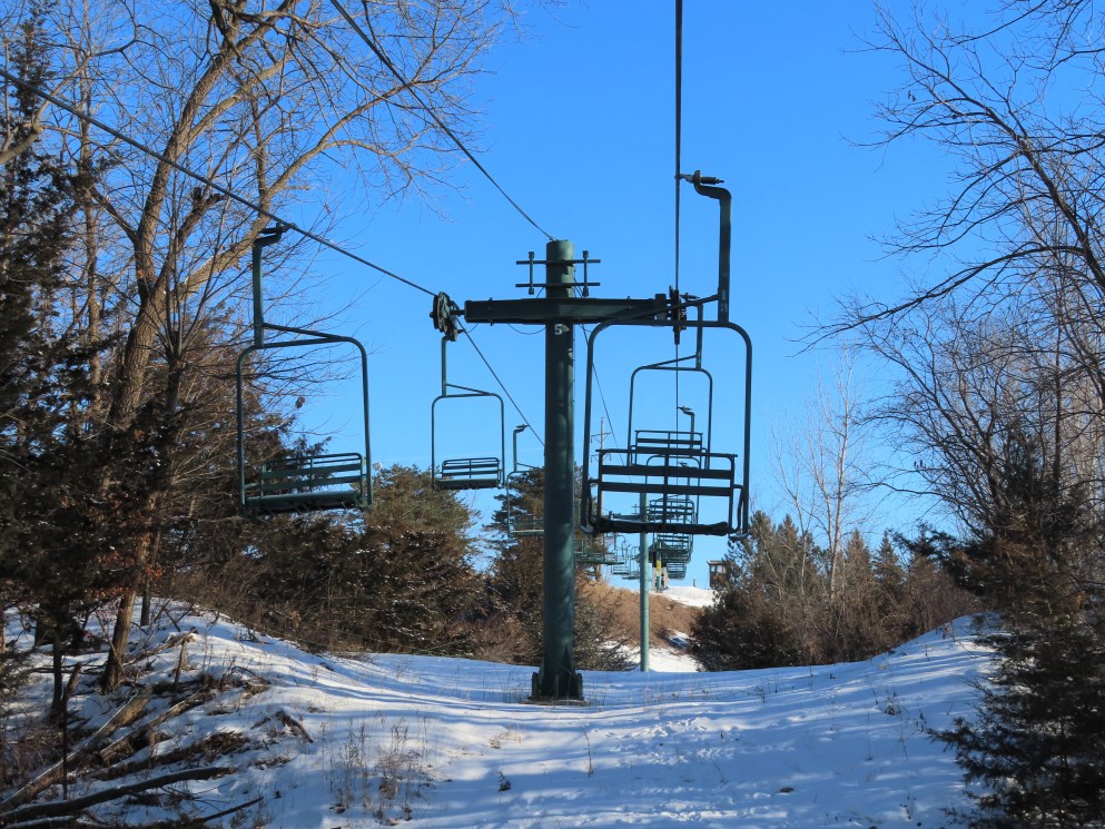This lift services the upper half of the Mt. Kato backside.Drive terminal.Lower part of the lift line.Bottom terminal with a portal tower.Counterweight.This is the only double chair on the backside.Upper lift line.The last tower and top terminal.Lift overview.Leaving the bottom station.