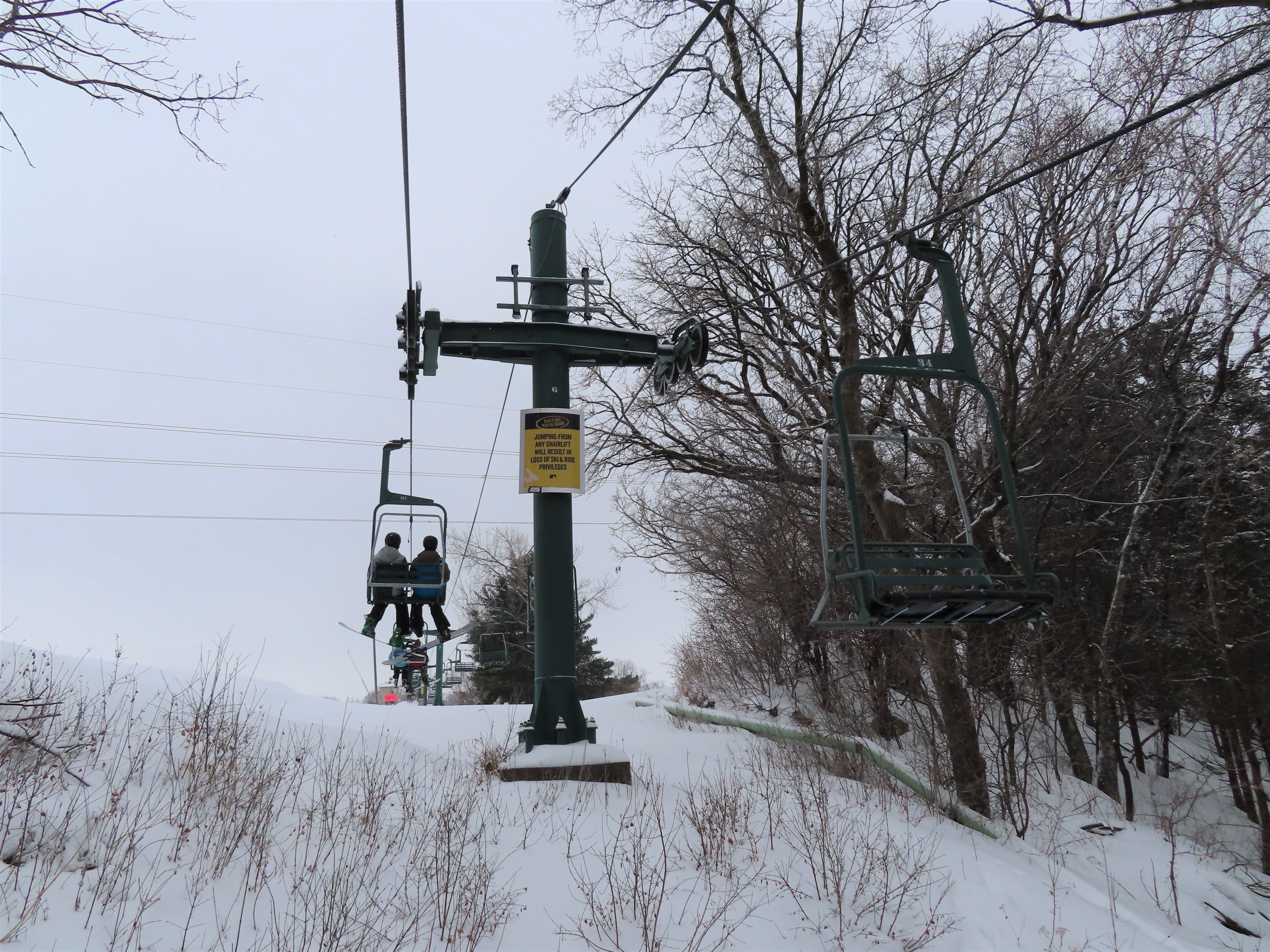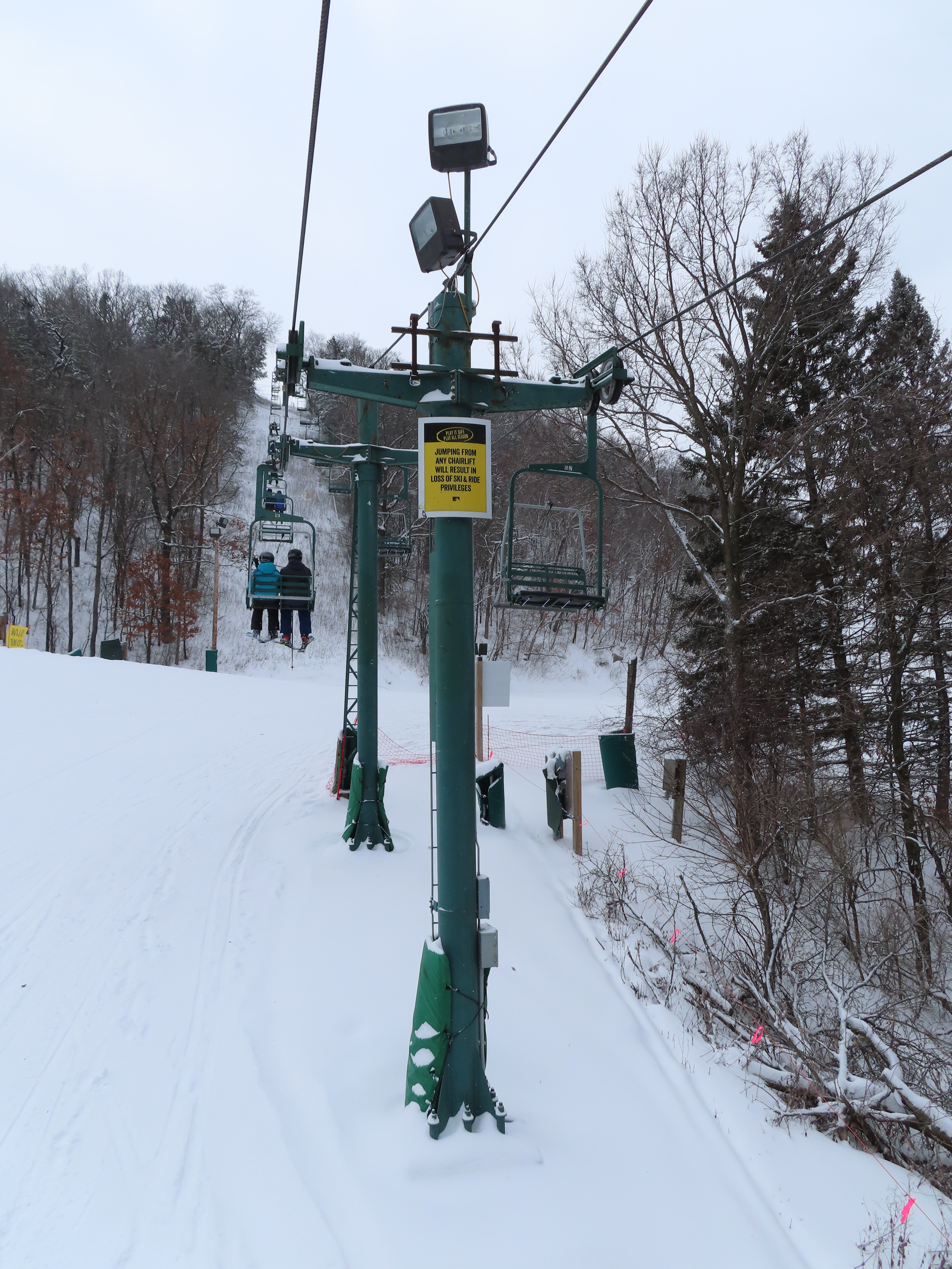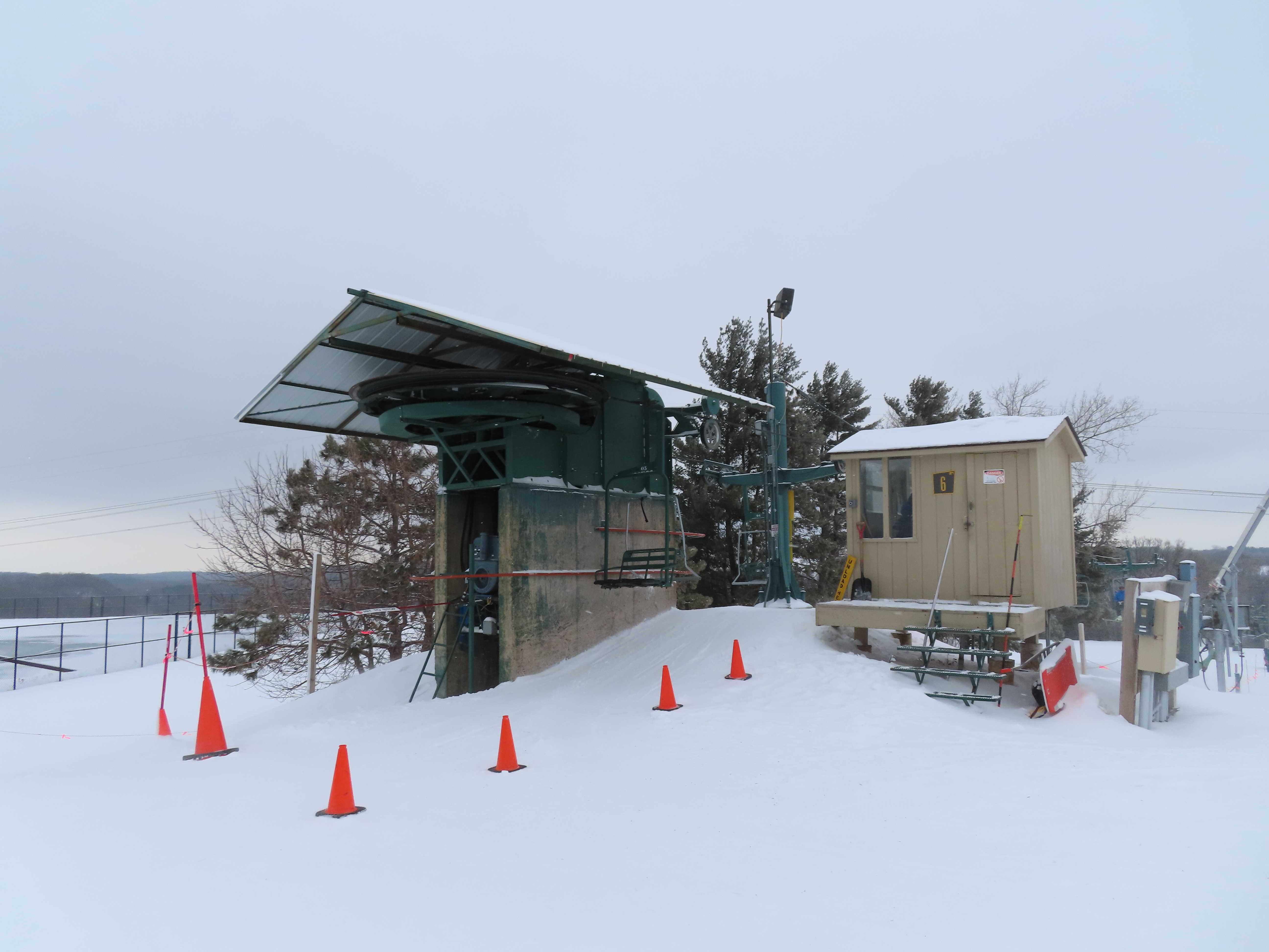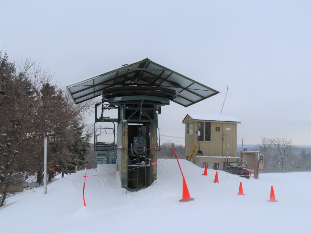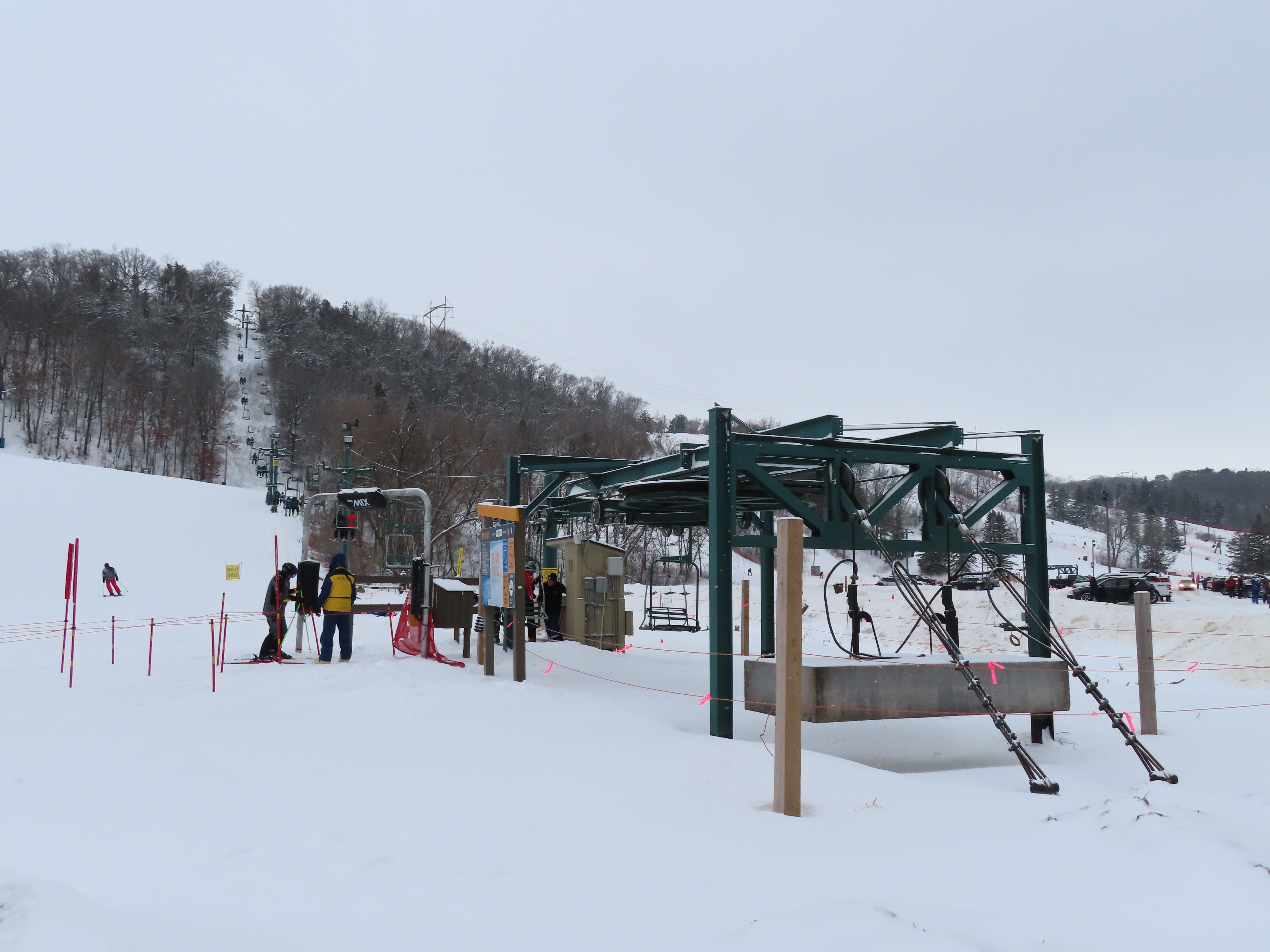 Lower part of the lift line.Bottom tension terminal.Return station.Lift overview.The middle part of the line is steep and unskiable.Breakover tower.Unloading at the top terminal.Drive station.Flat top part of the line.A support-hold down series of towers.