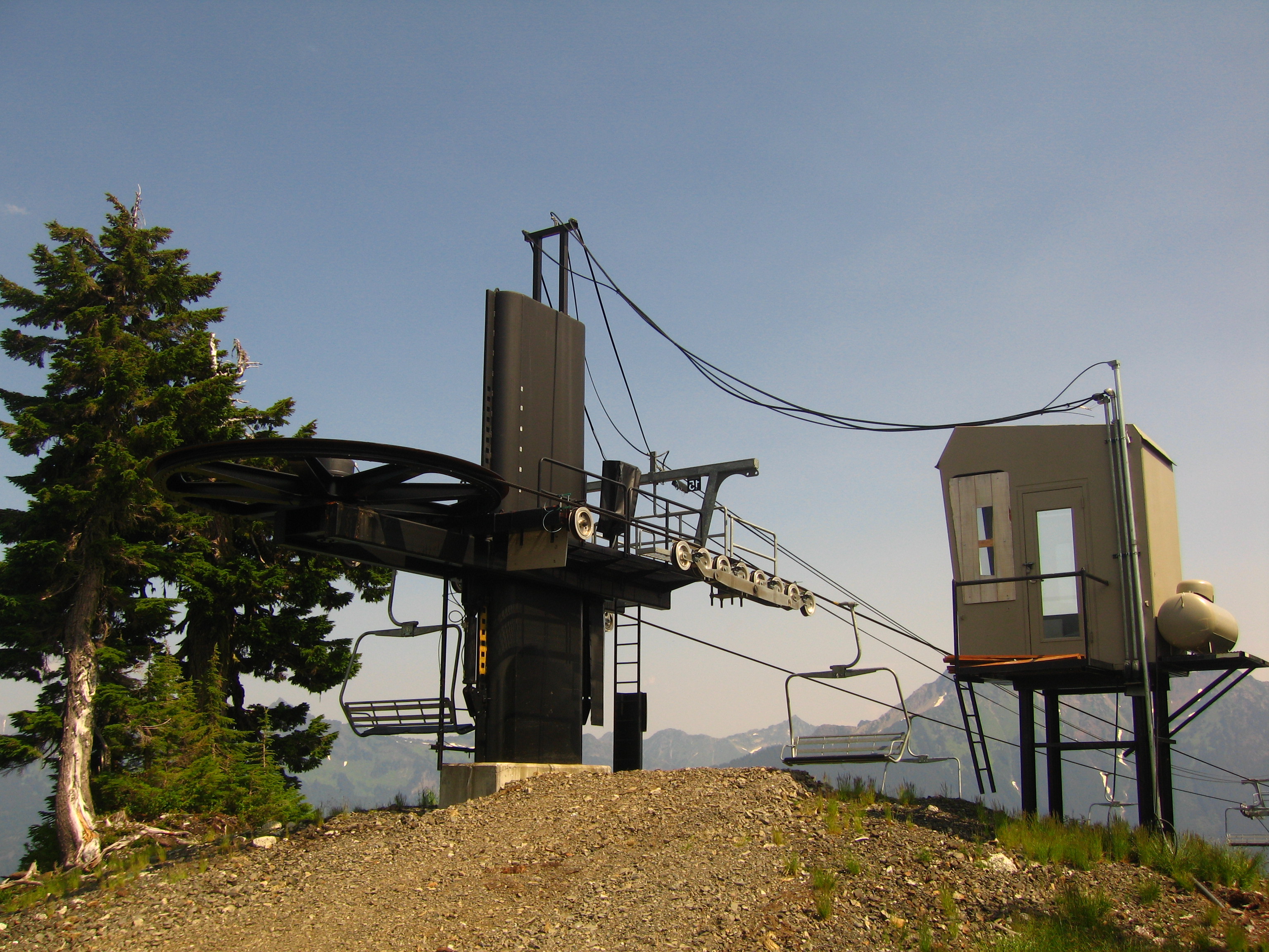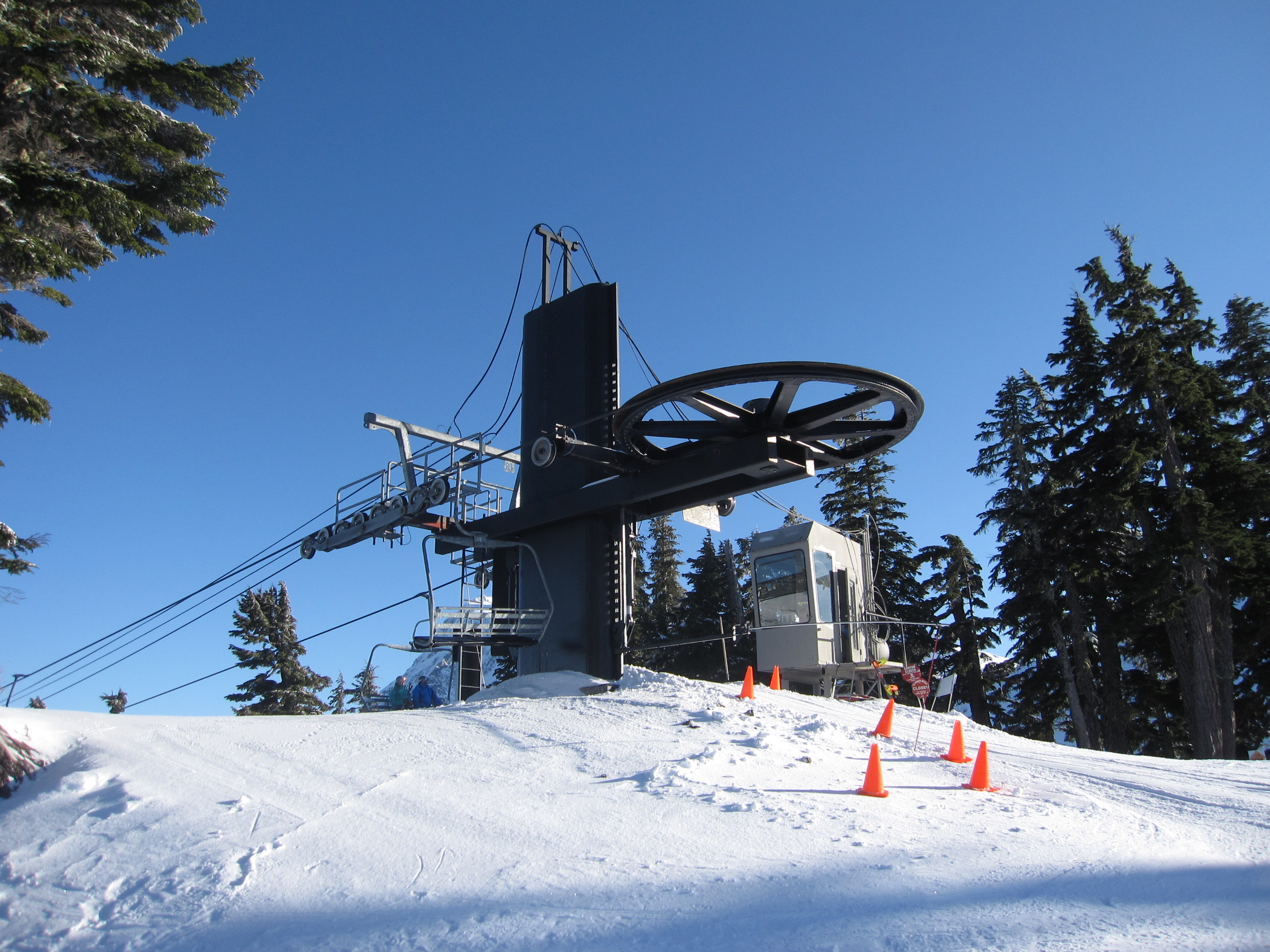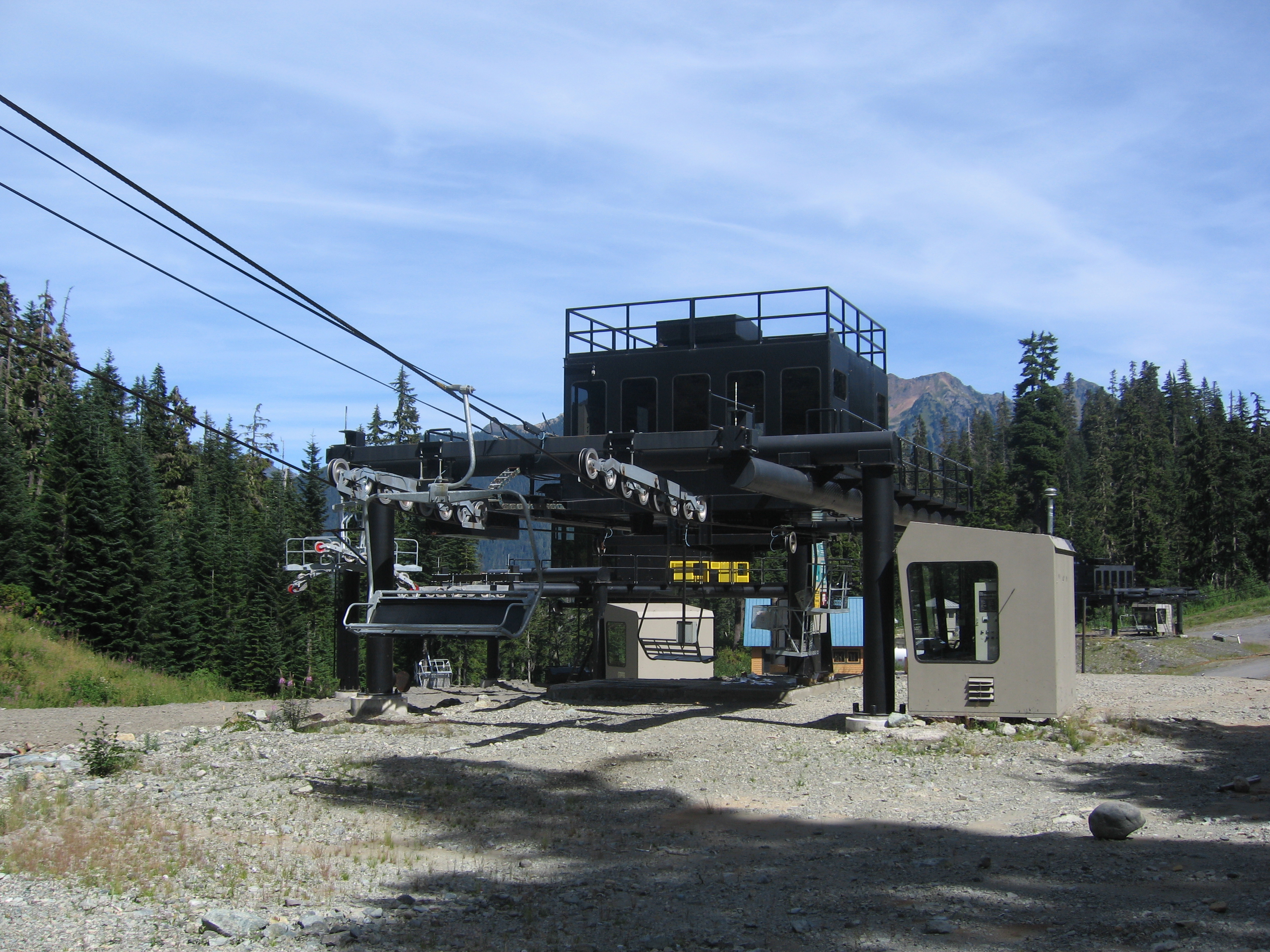 It isn’t a traditional D-CTEC, nor is it Yan (given that Yan went out of business ten or so years before this lift was built). It’s a Garaventa CTEC custom Mt Baker-only terminal built big enough to hold two giant diesel engines. If you check out the chair 8 page, you’ll see the Riblet they modelled after. We called it the Borg. Chairs 3/4 and chair 5 also have one.