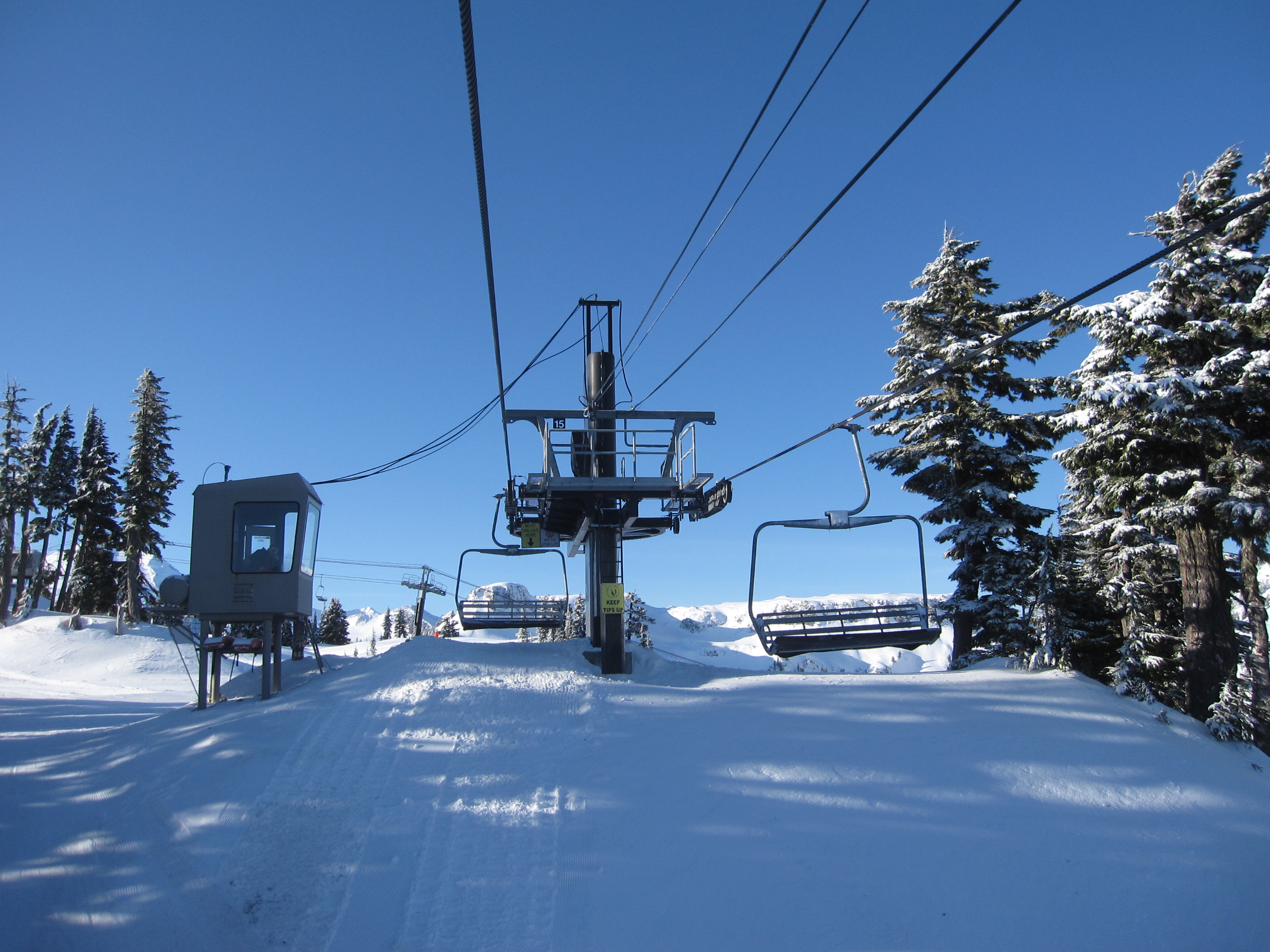 Height-adjustable top station.Looking down to the drive terminal.Nearing the top.Top station.Bottom terminal.Bottom drive station.Summit bullwheel.Looking down Chair 6.Drive terminal in the summer.