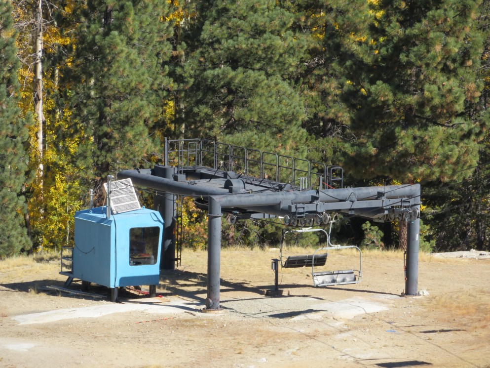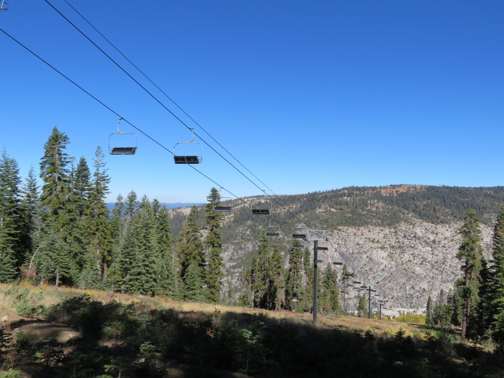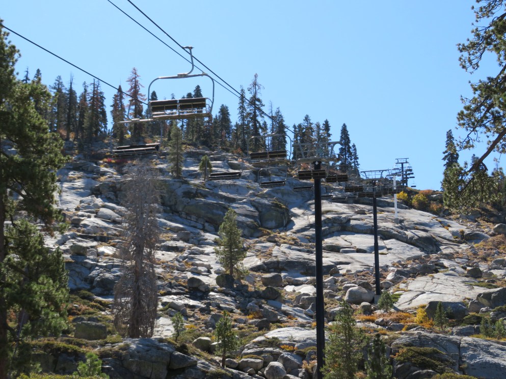 The top part of the lift is in the trees, the lower half in a large granite bowl without trees.