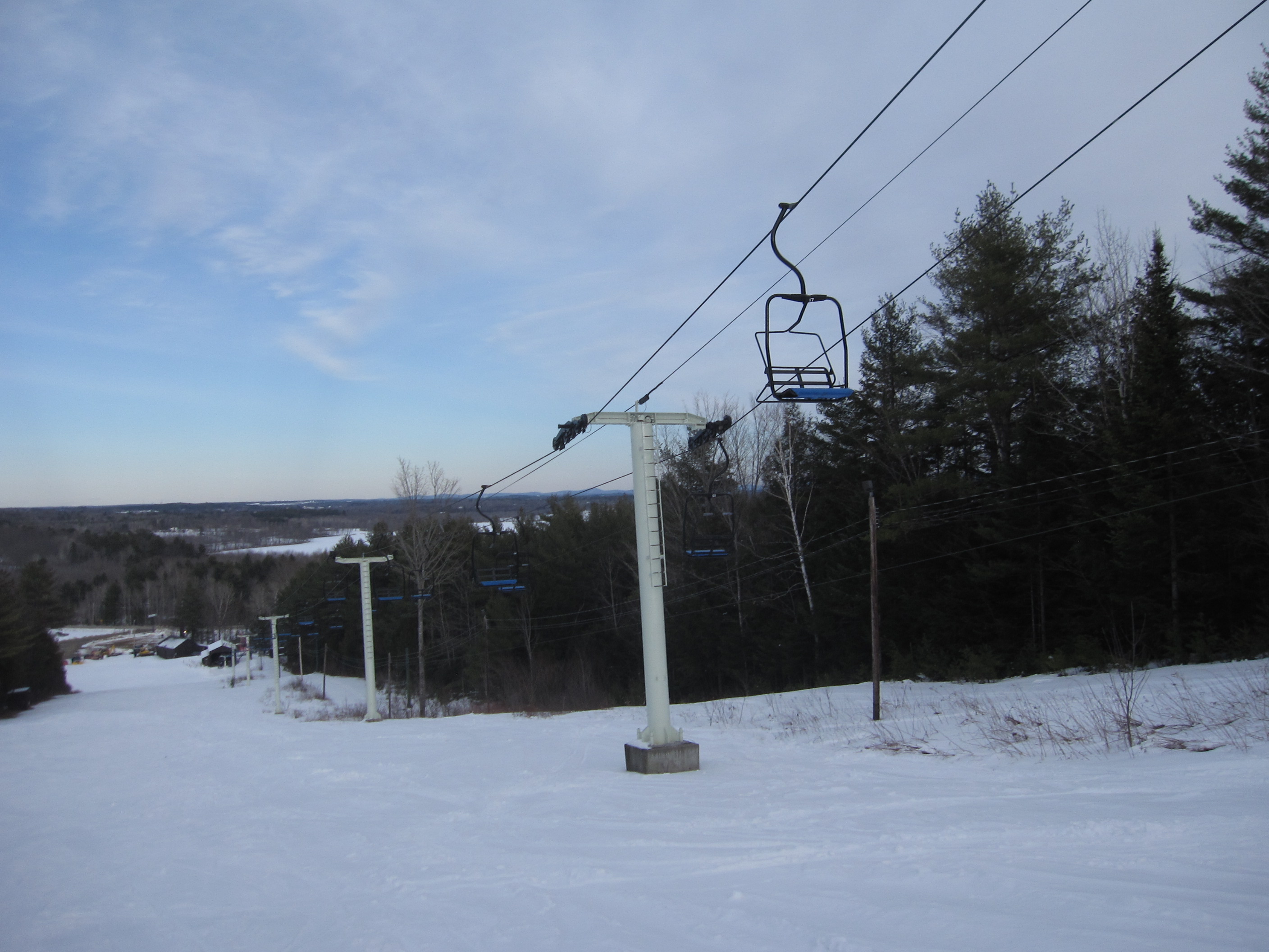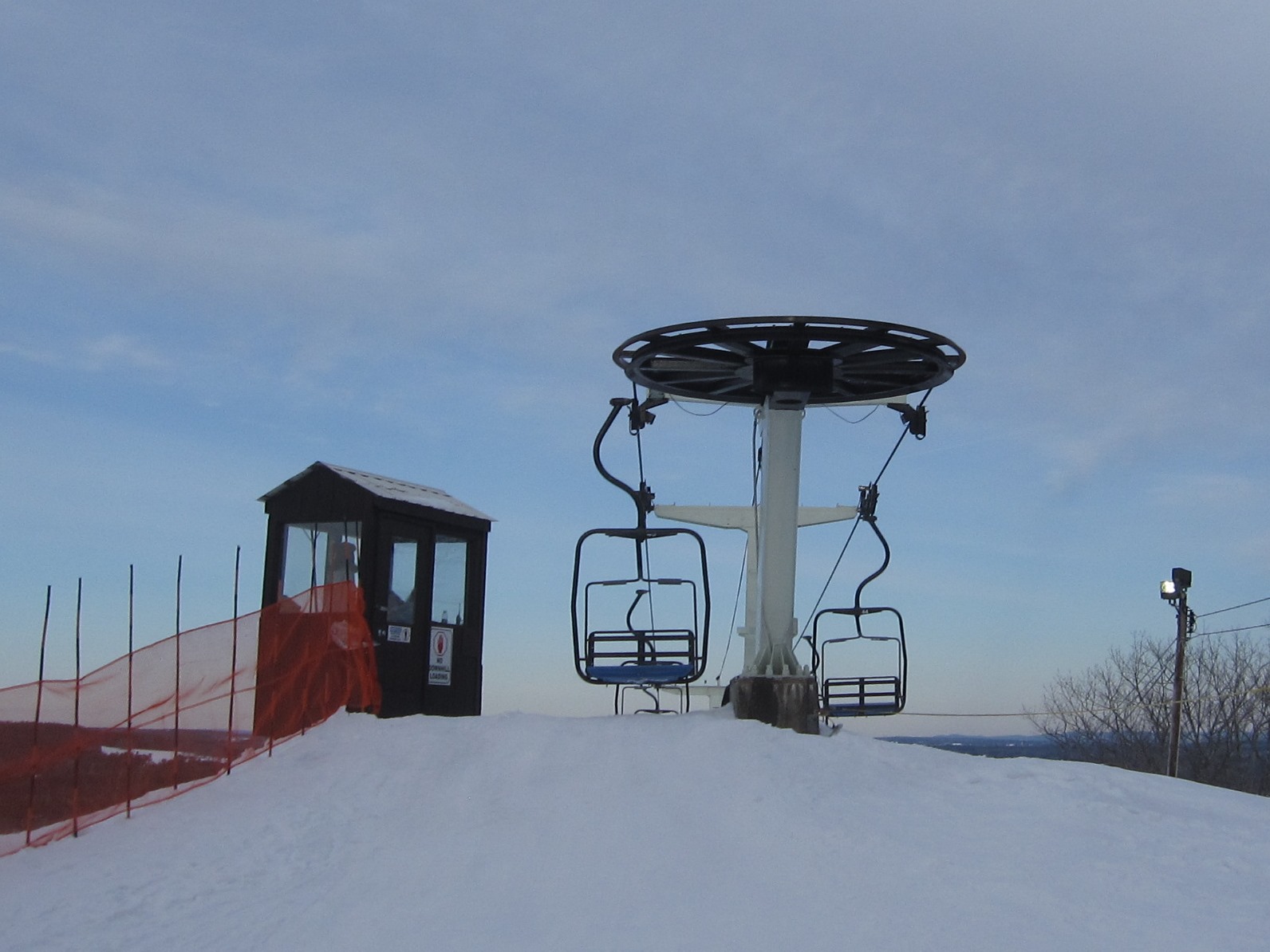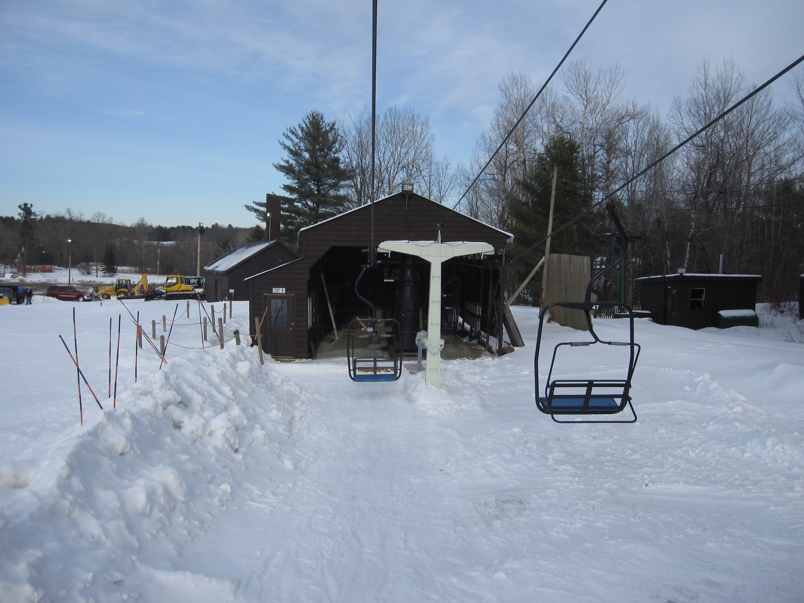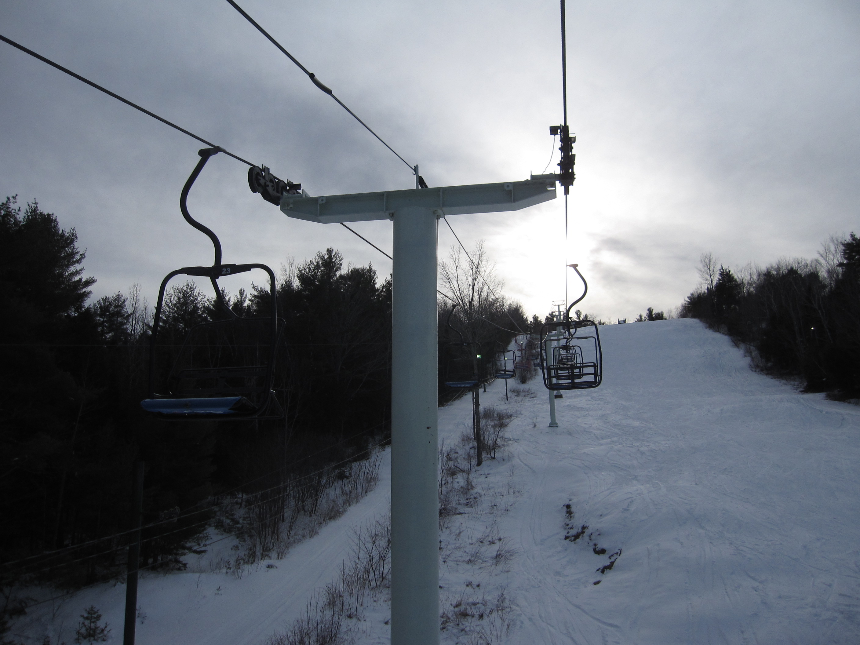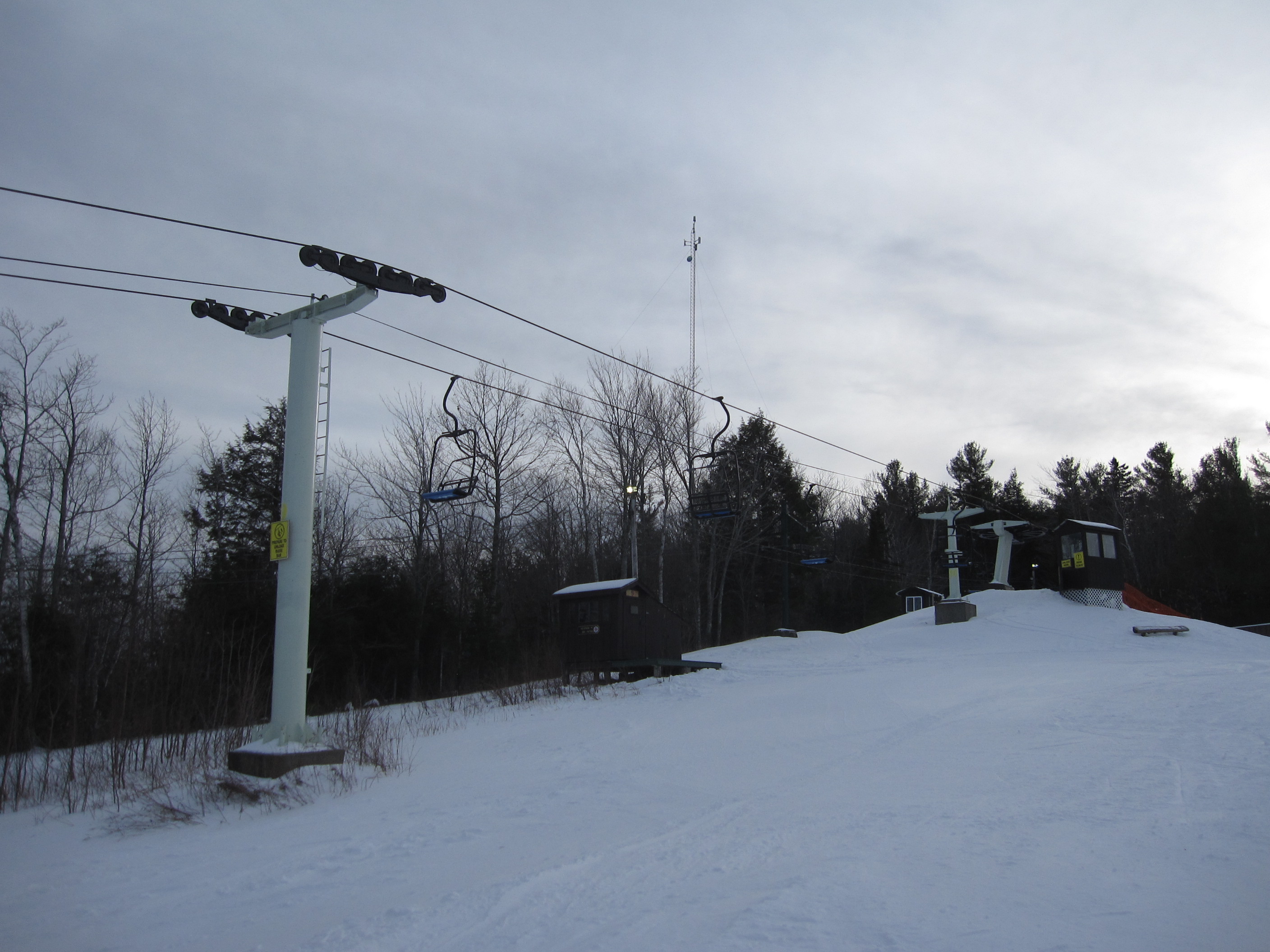 Chairlift – Hermon Mountain, ME Riding up. Last two towers. Lower lift line looking down. The bottom terminal building. Fixed top bullwheel. Share this: Click to email a link to a friend (Opens in new window) Email Click to share on X (Opens in new window) X Click to share on Facebook (Opens in new window) Facebook Like Loading...