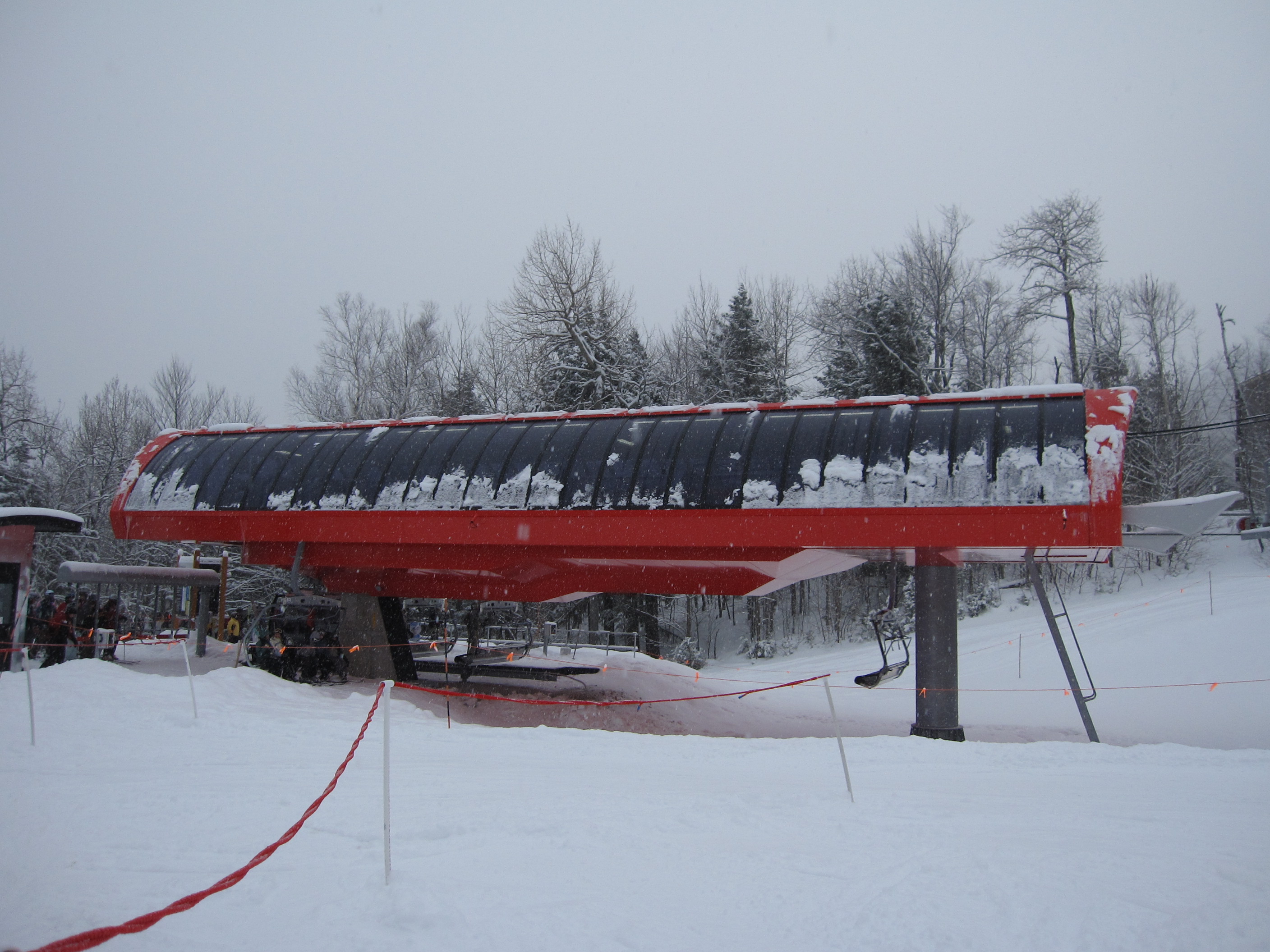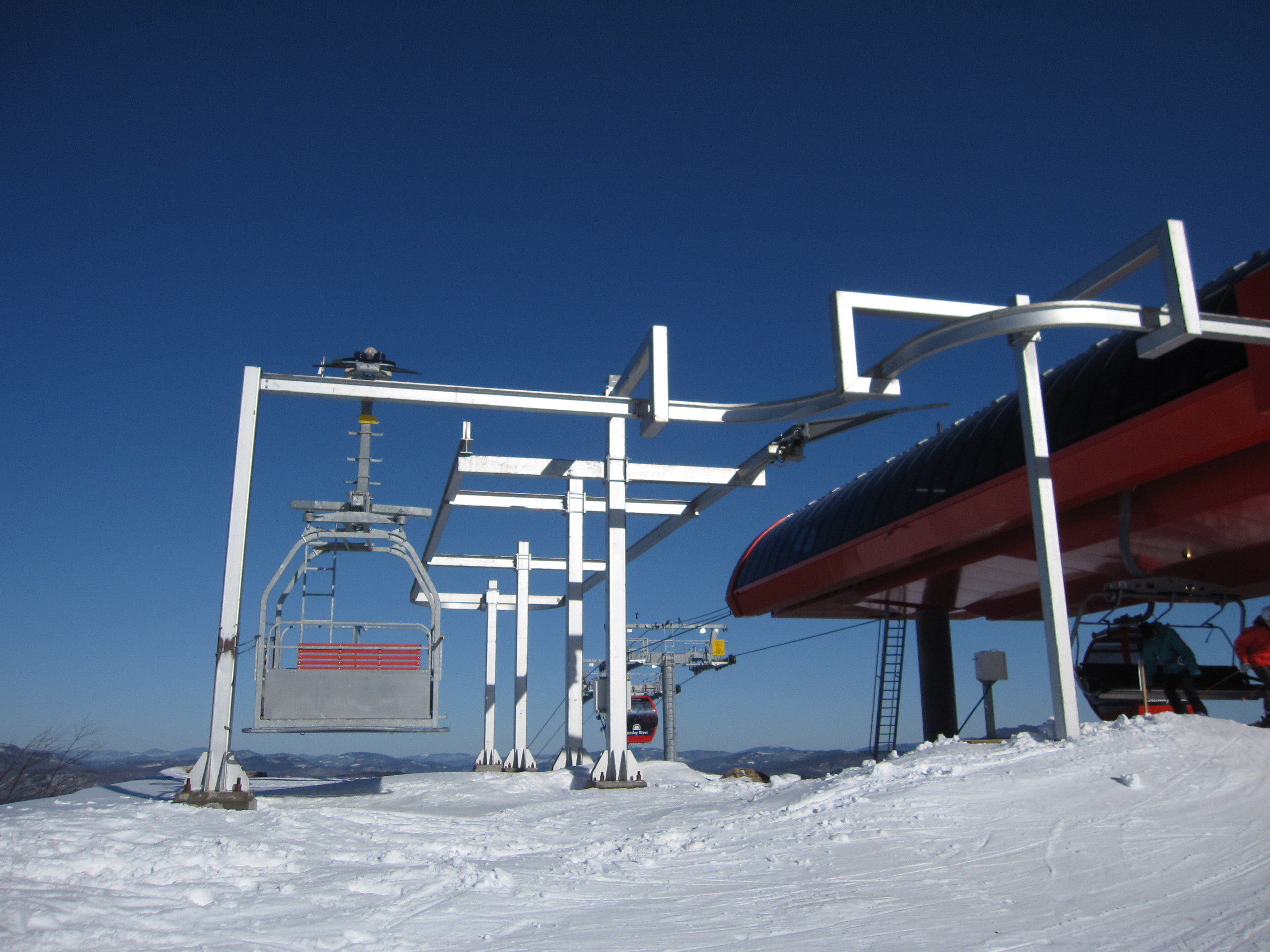 My first over Chondola. Definitely an extremely unique lift. Unfortunately this lift is not reliable on windy days like many of the chairlifts here and it does seem kinda slow for a detachable. Never seen so many chairs and gondolas in a terminal in my life!